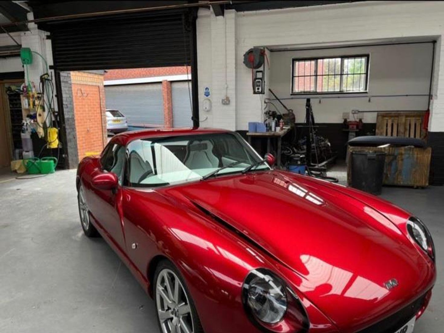 The paint is excellent in a glorious Cherry Pearl, with a rare Steve Edwards roof (can be Targa or taken off completely and fits in boot).