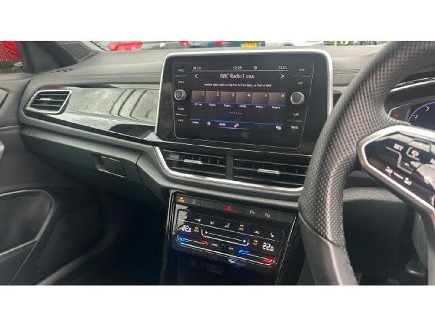 Volkswagen T-Roc 1.5 TSI R-Line 5dr Petrol Hatchback Sporty Looks, Confident Drive, and Everyday Practicality Now available at Vertu Volkswagen Nottingham South, the Volkswagen T-Roc 1.5 TSI R-Line 5dr Petrol Hatchback blends bold design with refined petrol performance and everyday versatility. Powered by a 1.5 TSI petrol engine, this model delivers 150PS of responsive power, making it a great choice for drivers who want both efficiency and driving enjoyment. The R-Line trim gives the T-Roc a sporty edge, with eye-catching styling, unique R-Line detailing, and premium interior finishes. Its 5-door hatchback design offers practicality and comfort, with ample space for passengers and luggage. Inside, the T-Roc features a digital cockpit, touchscreen infotainment system, smartphone connectivity, Bluetooth, and a range of driver assistance technologies to enhance every journey. Tyres will be replaced if under 3mm, and the vehicle comes with a minimum of 9 months MOT. You'll also benefit from no servicing costs for 6 months or 6,000 miles, and two keys are included. As part of the Volkswagen Approved Used programme, this vehicle includes a 12-month Volkswagen warranty, 12 months roadside assistance, and a comprehensive multipoint inspection to ensure it meets the highest standards. Full history and mileage checks provide added reassurance, along with a 30-day or 1,000-mile exchange policy if you're not completely satisfied. You'll also receive free 5-day insurance and have access to flexible finance options to suit your needs. Call our team today to book your test drive and experience the perfect combination of sporty styling, practical features, and smooth petrol performance in the Volkswagen T-Roc 1.5 TSI R-Line 5dr Petrol Hatchback.
