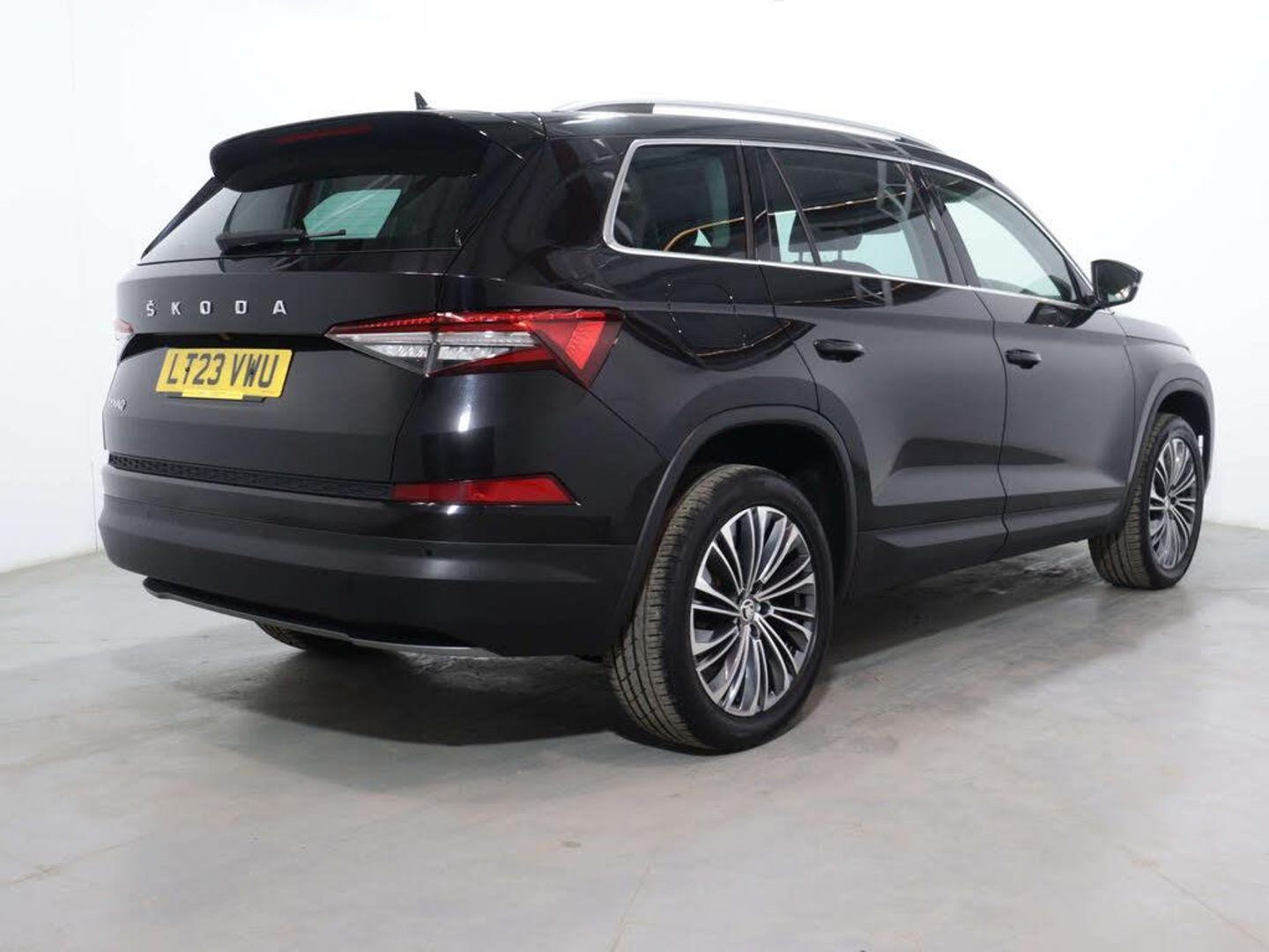 Finished in a sleek Black exterior, the Skoda Kodiaq exudes sophistication and elegance wherever it goes. Whether you're cruising through the city streets or embarking on a weekend adventure, this SUV is sure to turn heads and make a statement.