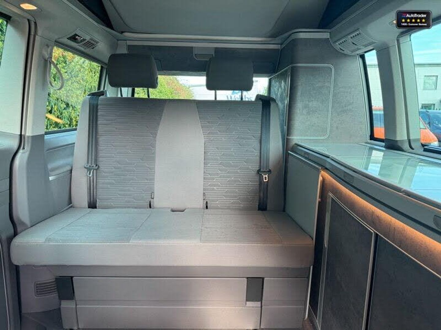 17in Alloy Wheels - Aracaju, 17in Chassis with 17in Disk Brakes in Front and 16in Disc Brakes in Rear, 2 Additional Batteries - Maintenance Free - 1 Additional Battery with Cut-Off Relay, 2 Remote Folding Keys, 2 Velour Floor Mats, 2-Seater Bench-Bed - Moveable and Folding to Build 2 Beds - in 3rd Row, 230V Inlet with Charging Feature for Vehicle Batteries and 230V outlet in the Interior, 2x USB Interfaces - Type C - in Dashboard, 3-Point Seat Belts - Height Adjustable on Outer Seats in Cab - with Electronic Pretensioners, 8 Speakers - 4 Tweeters - 4 Woofers, ABS - Anti-lock Braking System, Additional Exterior Dust Seals, Air Care Climatronic 3-Zone Automatic Climate Control with Allergen Filter - Auxiliary Heater - Air-Conditioned Headliner, Airbags - Side and Front Curtain, Allergen Filter, Anti-Slip Regulation - ASR, Anti-Theft Alarm System with Interior Monitoring in Cab - Backup Horn and Tow-Away Protection, Armrest - Driver and Single Passenger Seat, Auto-Dimming Breakaway Interior Rearview Mirror, Automatic Headlight Activation with Daytime Running Lights - Leaving Home - Manual Coming Home Function, Automatic Headlight Range Control, BAS - Brake Assist System, Bed Extension with Sleeping Mat, Bellow Colour of Pop-Up Roof - Basalt Grey, Black Awning - Housing and Rail, Body-Coloured Exterior Mirror Housings and Door Handles, Bumpers in Body Colour, California Nameplate on the Fender and on the Rear, Camping Table for Inside-Outside - in Sliding Door - and 2 Folding Chairs in Tailgate, Central Locking - Remote Control with SAFELOCK and Interior Release, Climatronic 3-Zone A-C with 2nd Evaporator - Auxiliary Heater - Air Conditioned Headliner and Additional Passenger Control, Comfort Dashboard, Crosswind Assist, Cruise Control - Adaptive with Speed Limiter, Cupboards in Graphite Grey, DAB - Digital Radio Reception, Decorative Inserts - Pewter Wave Grey, Digital Cockpit, Digital Cockpit and Driver Alert System, Driver Alert System, Driver Exterior Door Mirror - Convex, Driver and Front Passenger Airbags with Front Passenger Airbag Deactivation, ESP - Electronic Stability Programme, Electric Windows - Front, Electrohydraulically Operated Pop-up Roof, Electronic Differential Lock - EDL, Exterior Mirrors - Power-Adjustable - Heated and Power-Folding - Folding Possible via Vehicle Key, First Aid Kit and Warning Triangle, Front Assist with Autonomous Emergency Braking - for Adaptive Cruise Control, Front Fog Lights with Cornering Lights, Front Windshield Wipers with Intermittent Operation and Rain Sensor, Glove Compartment with Illumination, Grab Handles on A-Pillars - on Driver and Front Passenger Side, Headlights - LED with Separate LED Daytime Running Lights, Heat Insulating Laminated Glass Windshield, Heat-Insulating Cab Side Windows - Passenger Compartment Side Windows Tinted and with Double Glazing, Heated Driver and Front Passenger Seats, Heated Washer Nozzles in Front and Washer Fluid Level Indicator, Hill Start Assist, ISOFIX and Top Tether Child Seat Anchorage - 2nd to 4th Rows, Illuminated Instruments - Dimmable, Illuminated Steps in Passenger Compartment, Indirect Tyre Pressure Monitoring System, Interior Lighting System Camper with Lighting in Pop-up Roof - Tailgate and in Kitchen Cupboards, Interior Noise Suppression, Lane Change System with Side Assist, Leather-Wrapped Multi-Function Steering Wheel, Loading Edge Protection in Plastic, Locking Wheel Bolts, Lumbar Support for Drivers and Front Passenger Seat - Manually Adjustable, Mounting Rails on the Roof - Preparation for Movable Roof Rack, Navigation System Discover Media including Streaming and Internet, Navigation System Preparation, Operating Voltage 12V including 230V Outlet on Driver Seat, Park Assist and Park Distance Control in Front and Rear and Sensor-Based Side Protection, Passenger Exterior Door Mirror - Convex, Plastic Flooring in Passenger Compartment, Power Operated Child Safety Lock, Programmable Parking Heater - Air with Radio Remote Control and Auxiliary Heater - Coolant, Radiator Grille Painted Black with 5 Chrome Trims - Additional Chrome Trim at Lower Radiator Grille, Rear View Camera System - Static Lines, Rear Window - Insulating Glass with Rear Window Wiper and Washer System - Not Heated, Red LED Rear Combination Lamps, Regional Code ECE for Radio, Registration for up to 4 Seats, Roof Bed - approx 2000mmx1200mm - with Spring Plates and Mattress, Seatbelt Warning Buzzer and Light For Driver, Servotronic Speed-Sensitive Power Steering - Steering Column Adjustable in Height and Reach, Side Assist, Single Tone Horn, Sliding Door on the Right in Load-Passenger Compartment with Power Latching, Sliding Window in Front and Fixed Window in Rear in Load-Passenger Compartment on Driver Side, Sliding Window in Front and Fixed Window in Rear in Load-Passenger Compartment on Passenger Side, Smartphone Interface, Smokers Package, Soft-Folding Grab Handles on Roof Frame, Special Sound Deadening Measures in Cab and Passenger Compartment, Start-Stop System with Regenerative Braking, Steel Spare Wheel with Original Equipment Tyre, Step Illumination with California Lettering, Sun Visors with Mirror - Illuminated - Airbag Label on Front Passenger Sun Visor, Swivel Seat on Drivers Side with Lumbar Support - Not Height Adjustable, Swivel Seat on Passenger Side with Lumbar Support - Not Height Adjustable, Tailgate Latch without Unlocking Function from Inside, Tailgate with Window and Power Latching, Tool Kit and Jack, Two 12V Outlets - Dashboard, Tyres 215-60 R17 C109-107T with Low Rolling Resistance, Velour Non-Woven Floor Covering in Cab, Voice Control, Waeco Compressor Fridge - Approx 42 Litres, Waste Bin for Door Pockets in Cab, Wired and Wireless App Connect, eCall Emergency System