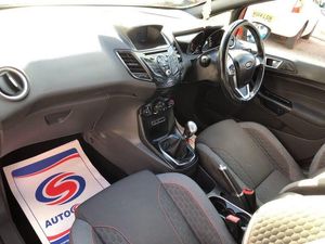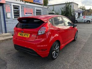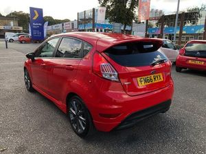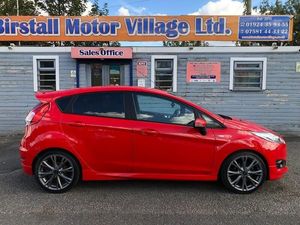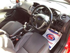 Genuine low mileage example of this stunning Fiesta ST-Line 5 door model in sought after Race Red. Only £20 road tax for the year, low insurance group & excellent fuel economy. Benefits from Satellite navigation system, LED DRL headlights, Bluetooth telephone prep, USB media input, heated front screen, rear privacy glass & 17' Alloy wheels. Ideal small modern reliable hatchback. HPI CLEAR. FULL 12 MONTHS MOT ON PURCHASE. SERVICE HISTORY INC 4 STAMPS. 2 REMOTE KEYS. FULL BOOKPACK. FULL DEALER FACILITIES INC 7 DAYS A WEEK OPENING HOURS. 3 MONTHS NATIONWIDE WARRANTY & 12 MONTHS FREE AA BREAKDOWN COVER INCLUDED. NO HIDDEN COSTS OR ADMIN FEES. VERY TIDY GENUINE LOW MILEAGE EXAMPLE. FIRST TO SEE WILL BUY!!