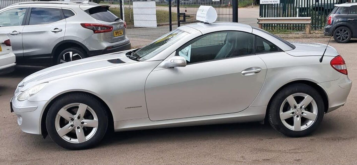 Vehicle Overview:A beautifully kept Mercedes-Benz SLK200 Kompressor finished in silver, offering timeless styling, smooth performance, and classic roadster driving enjoyment. This example has clearly been well looked after, with a full service history, a fresh 12-month MOT with no advisories, and will be supplied with a 3-month warranty for added peace of mind. With only 78,983 miles, it is a very clean car for its age and an excellent opportunity to own a premium convertible at an affordable price.Key Features:1.8 SLK200 Kompressor petrol engineAutomatic transmissionFull service historyFresh 12-month MOT (no advisories)Electric folding hardtop roofAlloy wheelsLeather interior trimAir conditioning and climate controlCruise control and speed limiterFront fog lightsPower steeringElectric windows and mirrorsWhats Included:3-Month Warranty12-Month MOT (no advisories)Full Service HistoryPre-Delivery Inspection (PDI)HPI Clear No accident history or outstanding financePart Exchange WelcomeNationwide Delivery AvailableWhy Buy from RMB & Son Motors?Family-run independent dealership5-star customer service and aftersalesAll vehicles prepared to a high standardWarranty included for peace of mindCompetitive part exchange dealsNationwide delivery availableContact Us:Call/Text: 07485 169088Email: info@rmbmotors.co.ukWebsite: www.rmbmotors.co.ukOverross Industrial Estate, Ross-On-Wye, HR9 7QQ-FULL SERVICE HISTORY LOW MILES