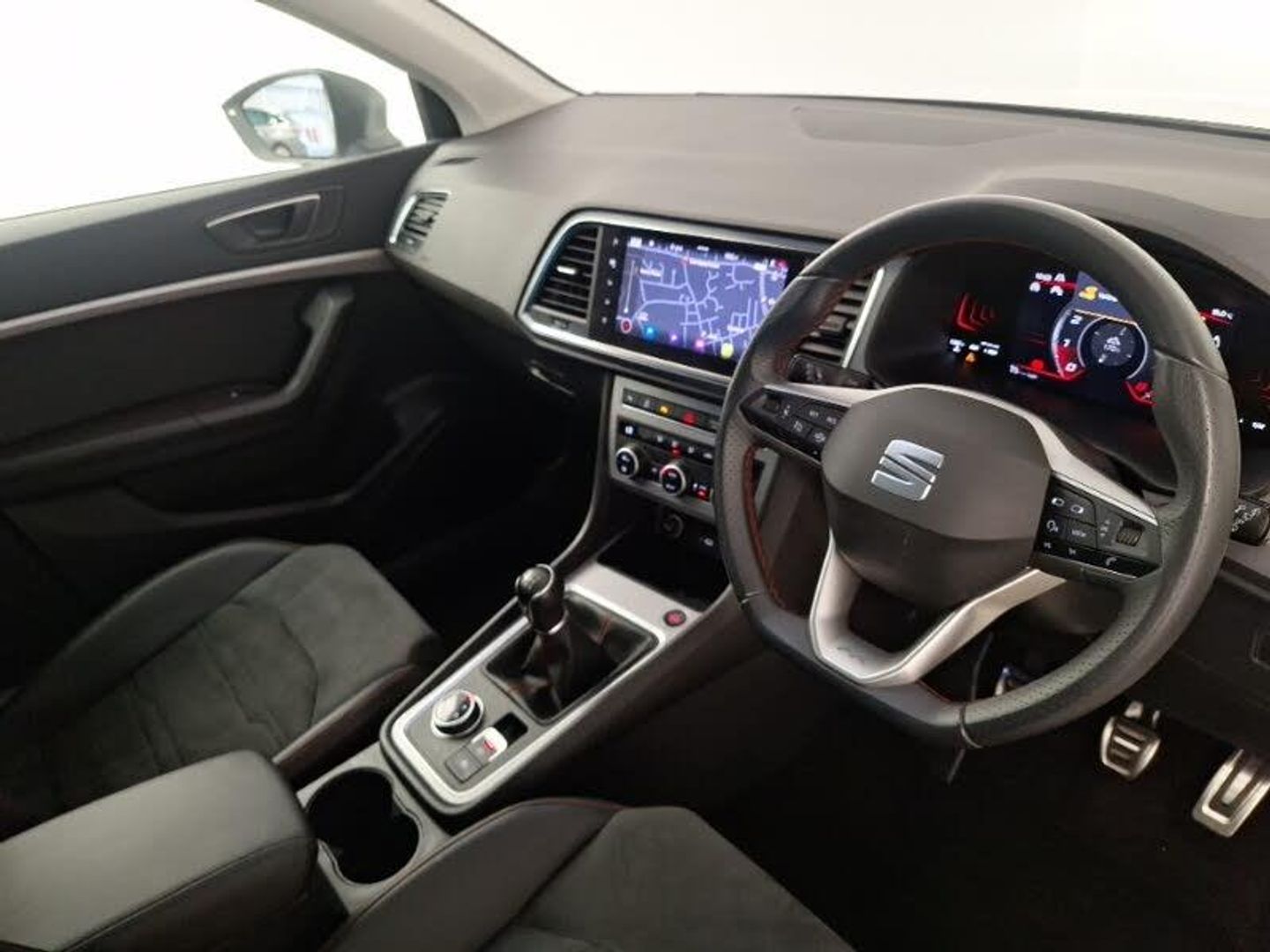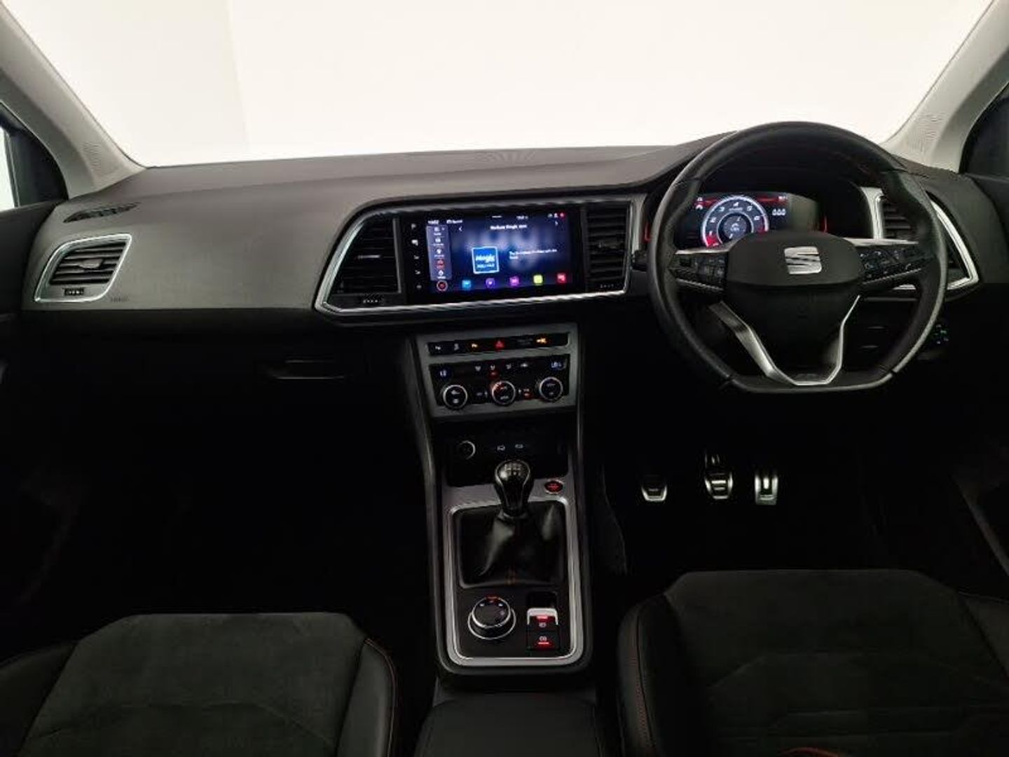 Navigation system pack with DAB - Ateca, Cruise control system with speed limiter, Dual zone climate control, 8" Digital cockpit, SEAT drive profile with driving experience button - Normal, Sport, Eco and Individual mode, steering and throttle response, Self parking functionality (includes front and rear parking sensors), Start/stop system, Wireless full link smartphone integration, Wireless phone charger, Dark tinted rear windows, Daytime running lights, Door mirrors with welcome light silhouette, Full LED headlamps with lens and LED front fog lamps with cornering function, Electric adjustable/heated/folding door mirrors, ISOFIX points in outer rear seats with top tether anchorage points, Interior lighting pack - Ateca, Convenience pack - Ateca, Hill hold control, Manual rear child locks, 18" Brillaint silver alloy wheels