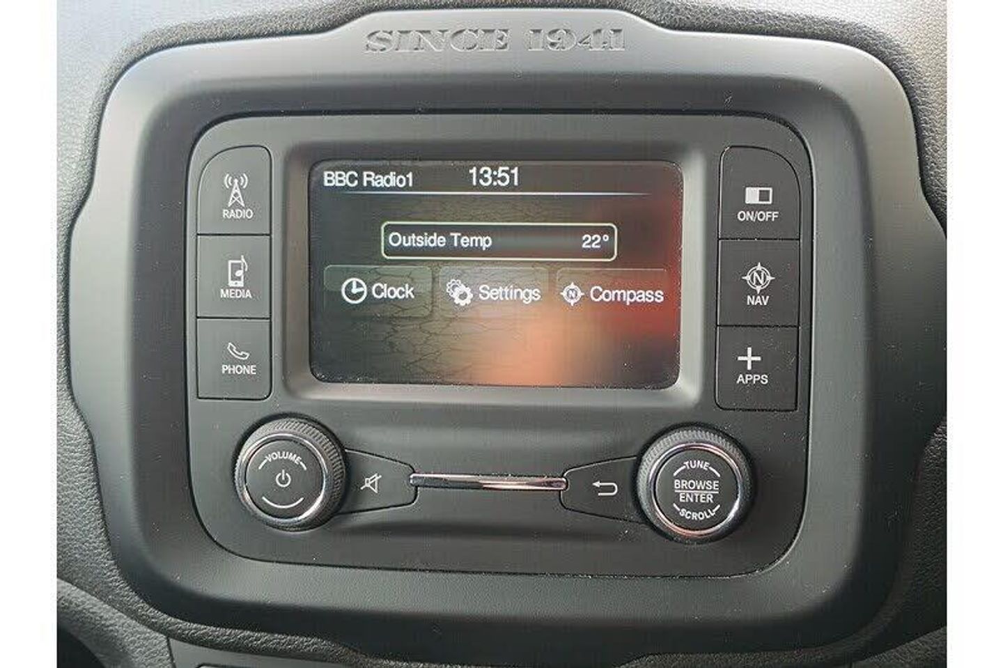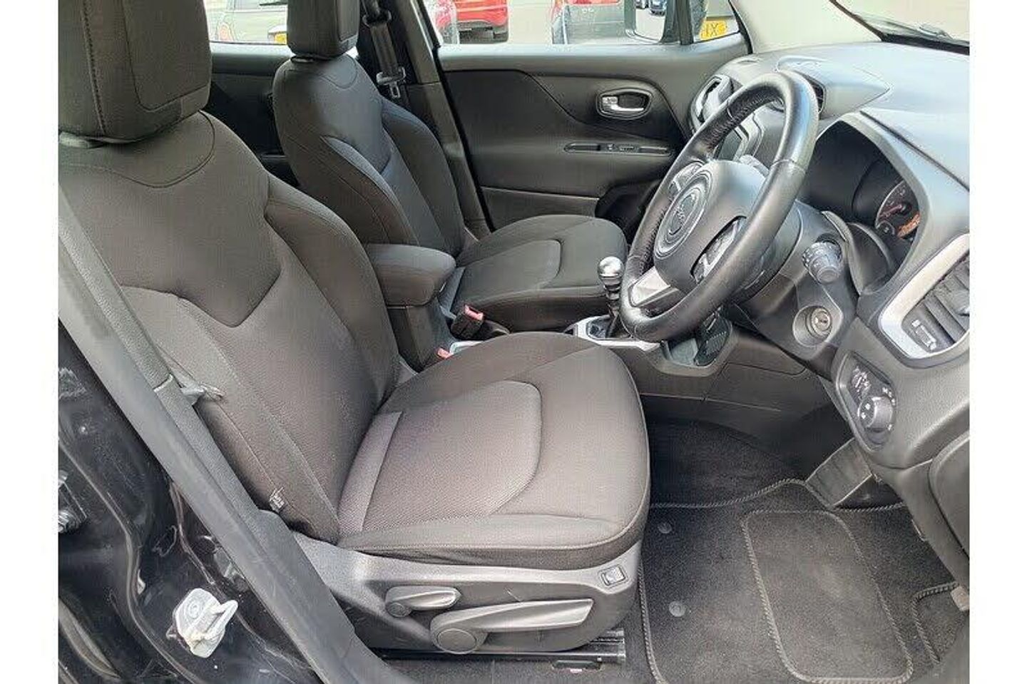 Carbon Black,Cloth - Black with Jeep Logo with Satin Silver Bezel Accents, 12V Power Socket, Aux-in, Instrument Cluster - 3.5in Monochrome TFT Display, Satellite Navigation System, Speakers x6, Touchscreen - 5in, UConnect Bluetooth, Uconnect DAB Radio, Uconnect Live, USB Connectivity, Cruise Control, EcoDrive - Drive Monitoring System, Parking Sensors - Rear, Tyre Pressure Monitoring - Warning Display, 17in Alloy Wheels - Aluminium, Body Coloured Door Handles, Door Mirrors - Body Coloured, Door Mirrors - Electric and Heated, Power Windows - Driver and Passenger Express Up and Down, Power Windows - Rear, Roof Rails - Black, Daytime Running Lights, Front Fog Lights, Air Conditioning, Ambient LED Interior Lighting, Gear Knob - Satin Chrome, Head Restraints - Height Adjustable 3rd Rear, Leather Wrapped Steering Wheel, Pollen Filter, Seats - Drivers 6-Way Adjustment, Seats - Drivers Electric Lumbar Adjustment, Seats - Passenger 4-Way Adjustment, Sliding Front Armrest with Storage, Steering Column - Tilt and Telescopic, Steering Wheel - Mounted Audio Controls, Electric Power Steering, Speed Limiter, ABS - Anti-Lock Brakes, Airbags - Drivers Advanced Multi Stage, Airbags - Front Curtain, Airbags - Passenger Advanced Multi Stage, Airbags - Rear Curtain, Airbags - Seat-Mounted Front Side Thorax, Alarm - Premium, Electric Park Brake, ERM - Electronic Roll Mitigation, ESC - Electronic Stability Control, Hill Start Assist, ISOFIX Child Seat Restraint System, Passenger Airbags Deactivation, Remote Central Locking, Traction Control, Trailer Sway Damping - Control
