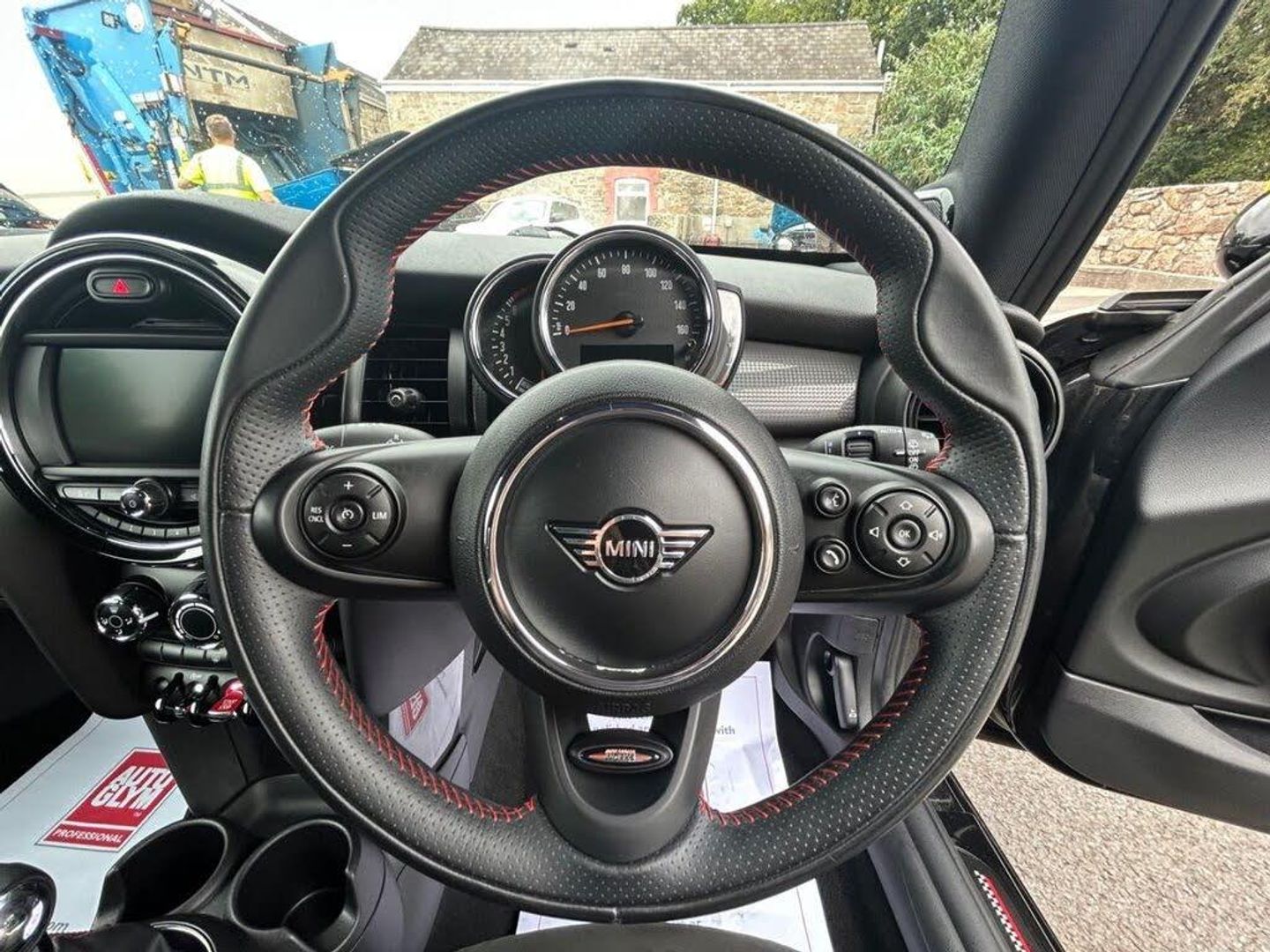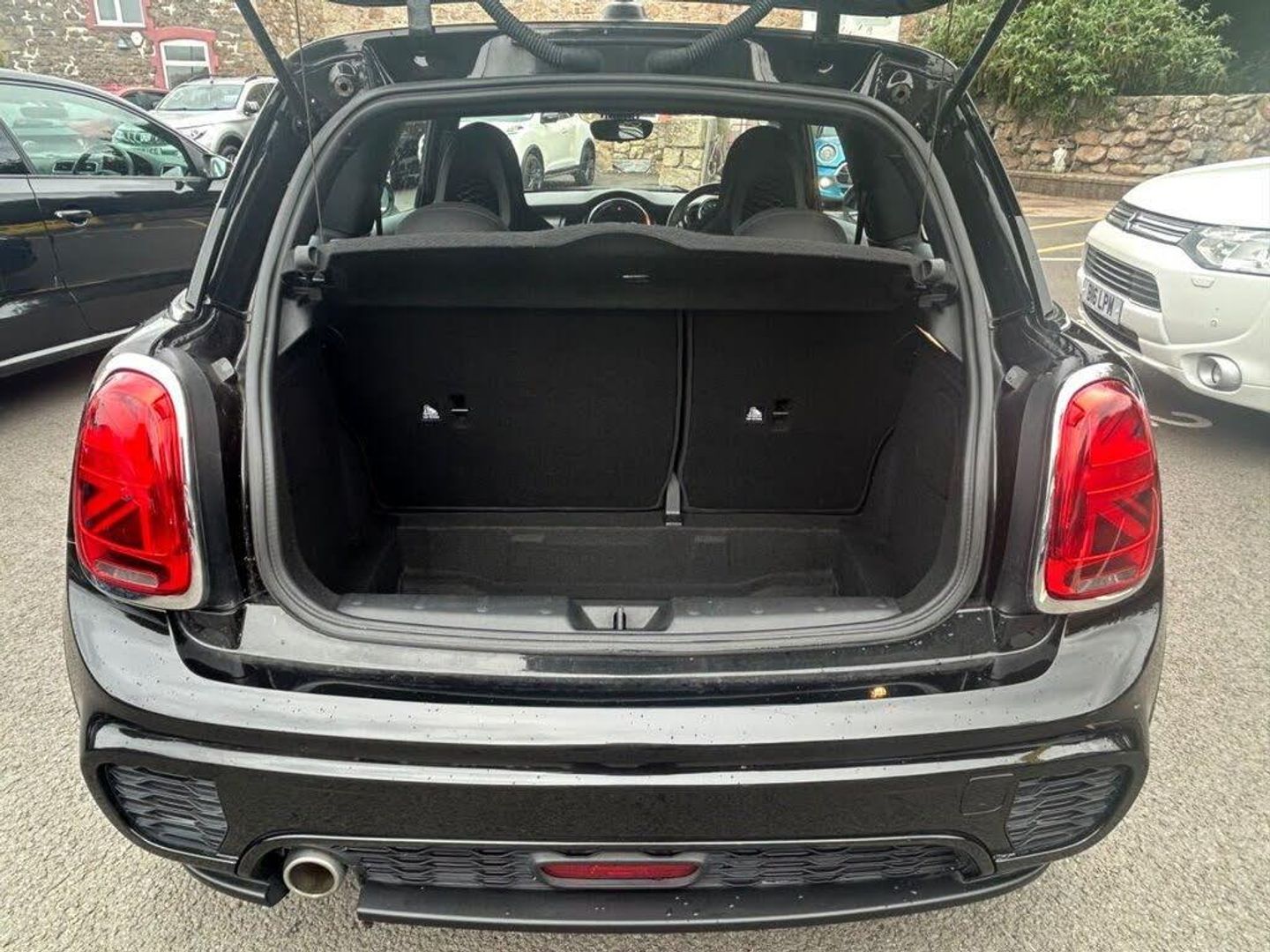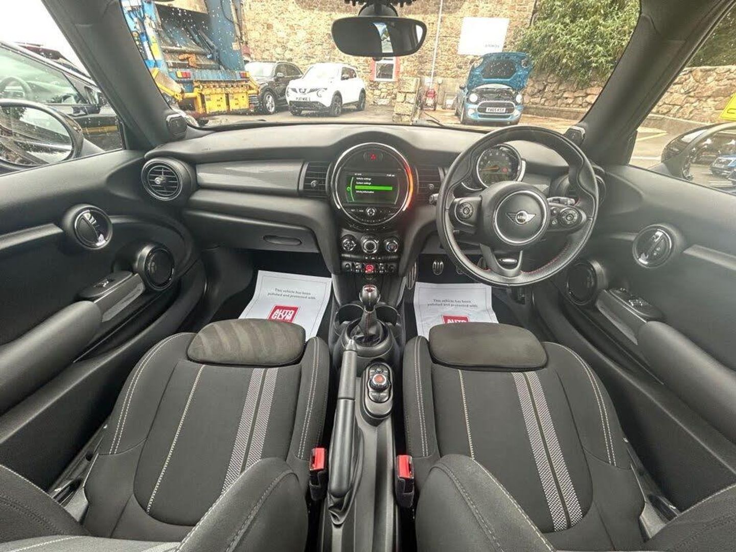 12V Socket in Centre Console, 17in Alloy Wheels - John Cooper Works Track Spoke in Black with Run-Flat Tyres, 3 Point Seatbelts on all Seats, 4 Lashing Eyes in Luggage Compartment, 4 Speakers - in Front Door Trims and Underneath Front Seats, 6.5in Screen with LED Ring, Air Conditioning - Manual, Airbags, Alarm System, Anti-Lock Braking System - ABS, Automatic Headlight Activation Switch, Bluetooth for Compatible Mobile Phone - with Audio Streaming, Carbon Black Colour Line - Knee Roll and Door Armrests, Chrome Highlights, Cruise Control with Brake Function, Cup Holders, Dinamica-Cloth - Carbon Black, Door Storage Compartments, Dynamic Brake Lights, Dynamic Stability Control - DSC, Electric Windows - Front, Electro-Mechanical Steering with Speed Dependant Steering Assistance, Electronic Vehicle Immobiliser, Exhaust Tailpipe - Left with Chrome Finisher, FM Tuner and DAB Digital Radio, Foldable Rear Seats 60-40, Front and Rear ISOFIX - including Front Passenger Airbag Deactivation, Fuel Filler Cap in Body Colour, Gear-Change Indicator Display, Glove Compartment, Harman Kardon Hi-Fi System, Headliner - Anthracite, Heated Rear Window, Heated Windscreen Washer Jets, Instrument Cluster, Interior Lighting, Interior Surface - Hazy Grey, John Cooper Works Aerodynamic Kit, John Cooper Works Leather Steering Wheel, John Cooper Works Roof Spoiler, John Cooper Works Sport Seats, Leatherette Gearshift Lever and Handbrake Gaiters, LED Headlights with Closed Ring as Daytime Driving Lights, LED Reading Lights - Vanity Mirror Lights - Front Footwell Lights - Spotlights on Front Seats, Mechanical Seat Adjustment, Midnight Black, MINI E-Call, MINI Logo Projection on Floor from Drivers Exterior Mirror, MINI TeleServices, Model Logo Cooper on Right of Tailgate, Multifunction Controls for Steering Wheel, On-Board Computer, Performance Control, Radiator Grille - Chrome Border with Black High-Gloss Slats, Rain Sensor Window Wipers, Rear Fog Light, Rear LED Lights with Union Jack Design, Rear Window Wiper, Roof and Mirror Caps - Body-Colour, Side Scuttle Panels with Integrated Indicators, Single Tone Fanfare Horn, Start-Stop Toggle including Keyless Go, Steering Column Height and Length Adjustment, Sun Visor with Vanity Mirrors, Sun-Heat Protection Glass, Tool Kit in Luggage Compartment, Tyre Pressure Monitoring System, White Indicator Lenses
