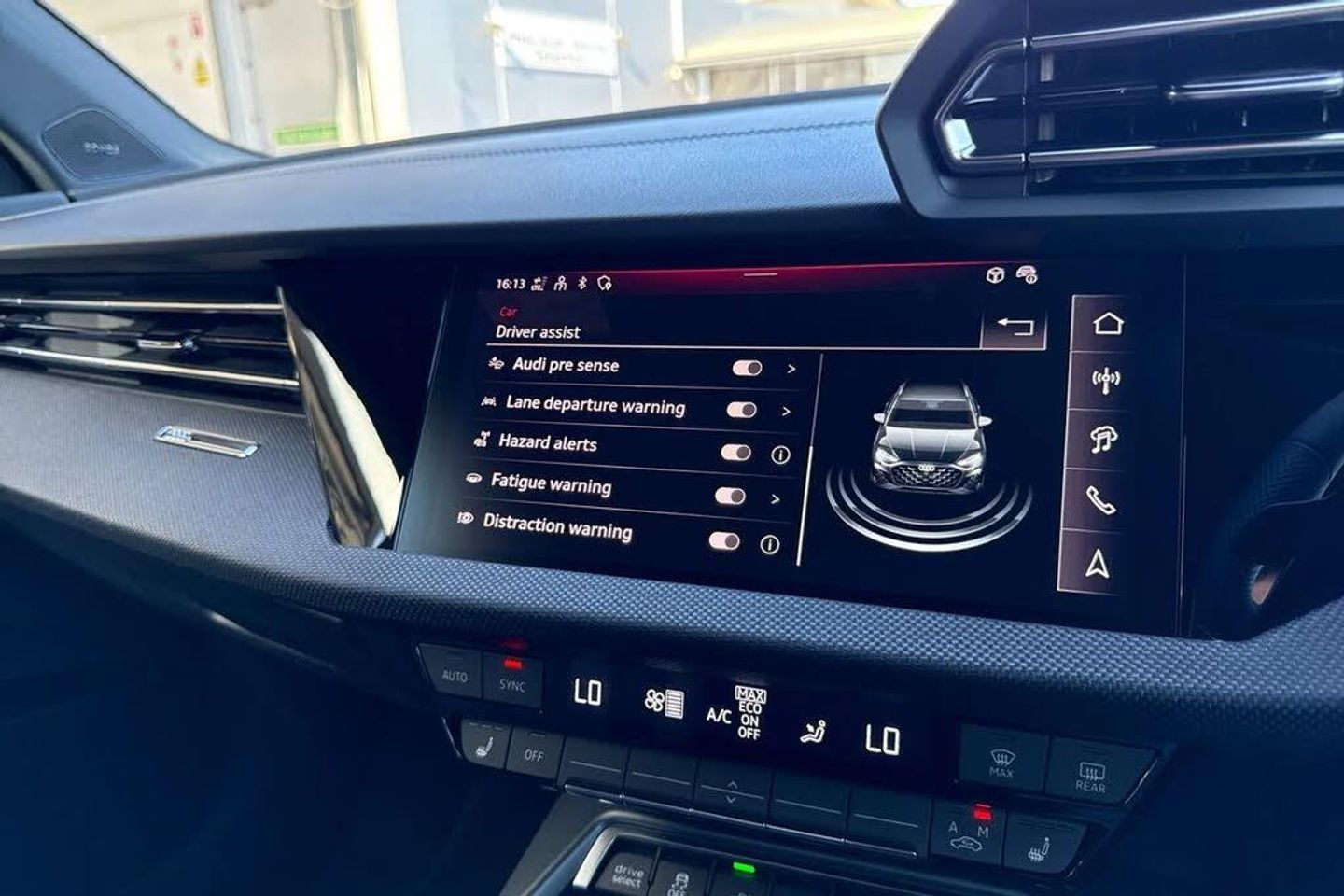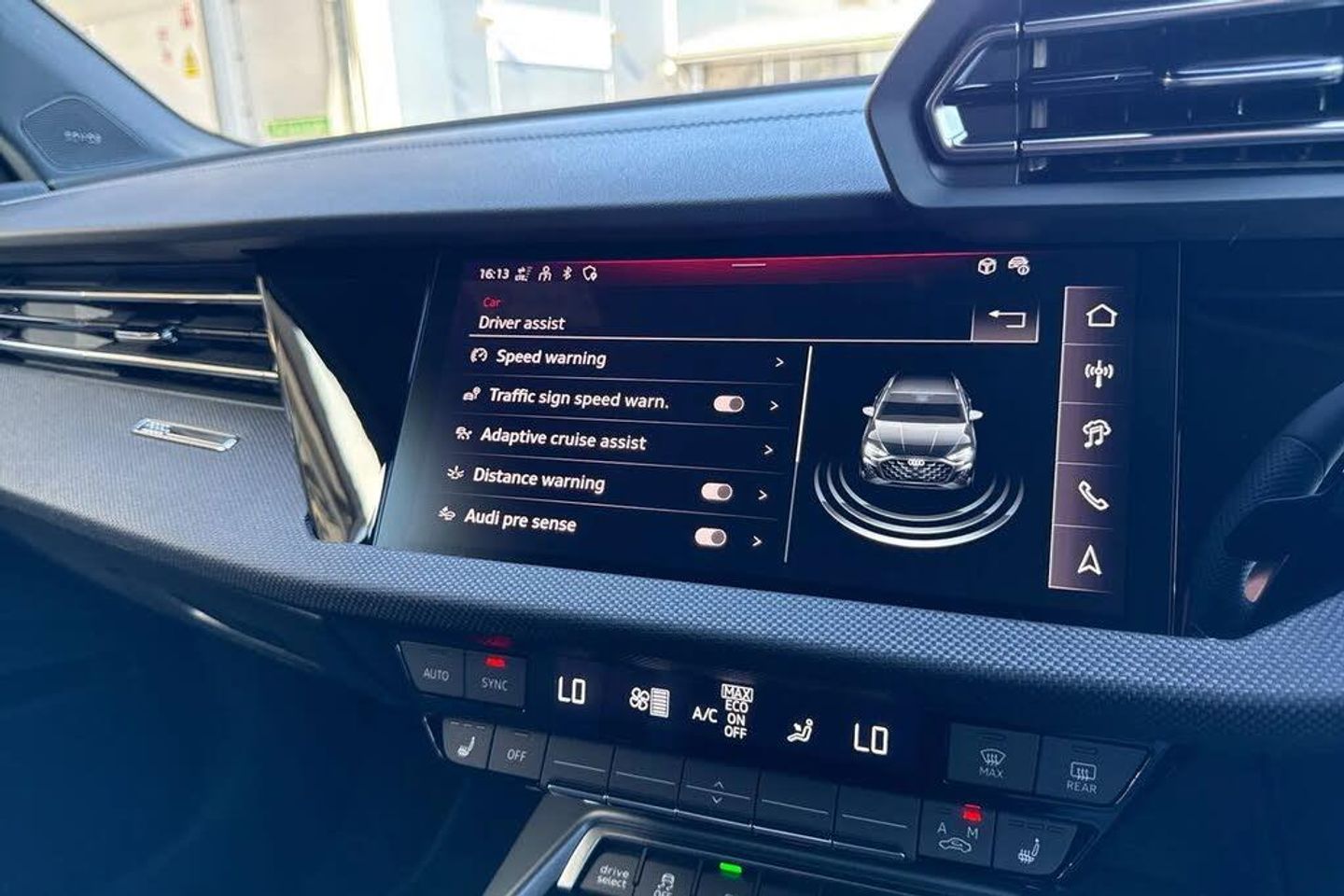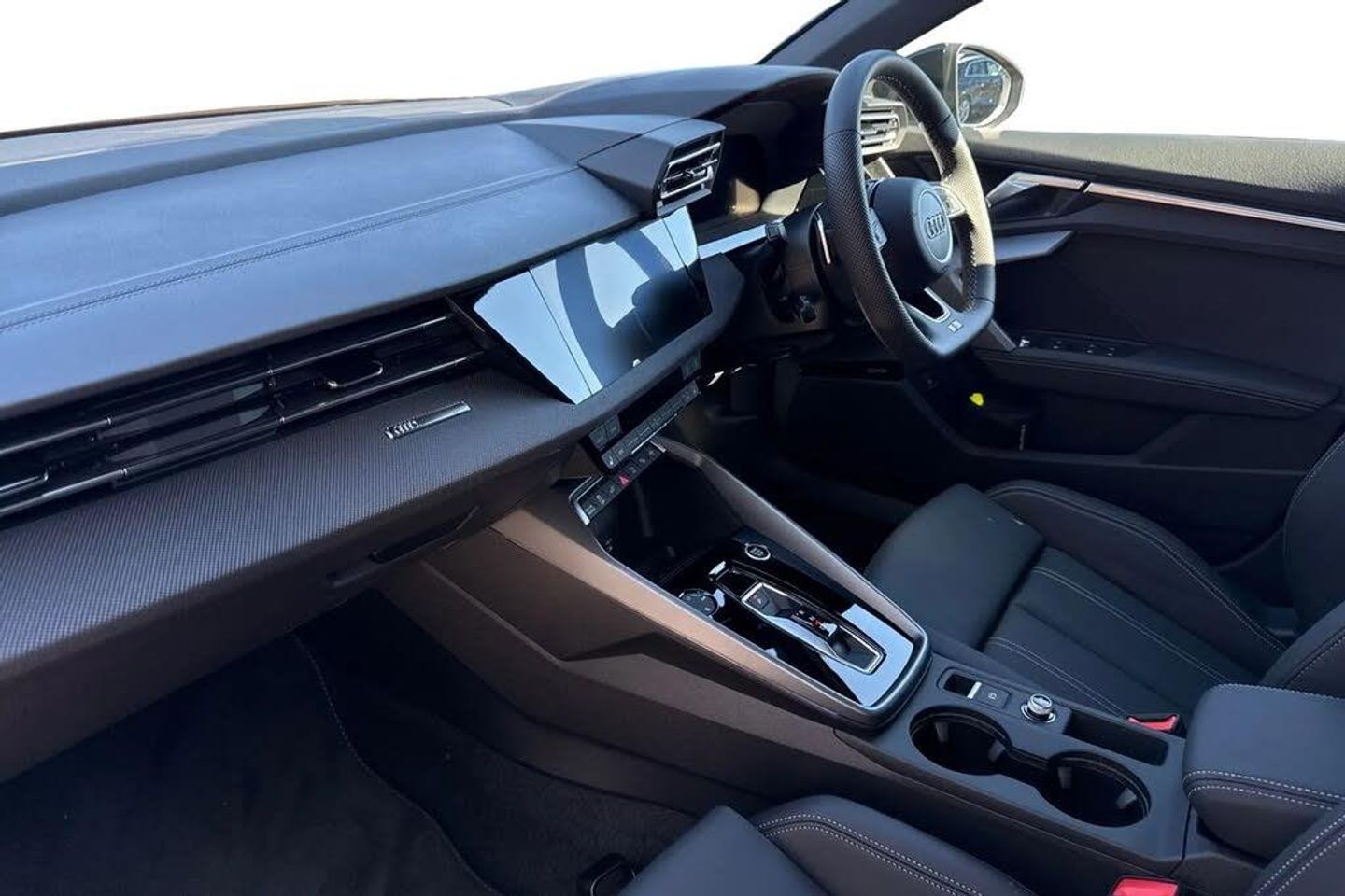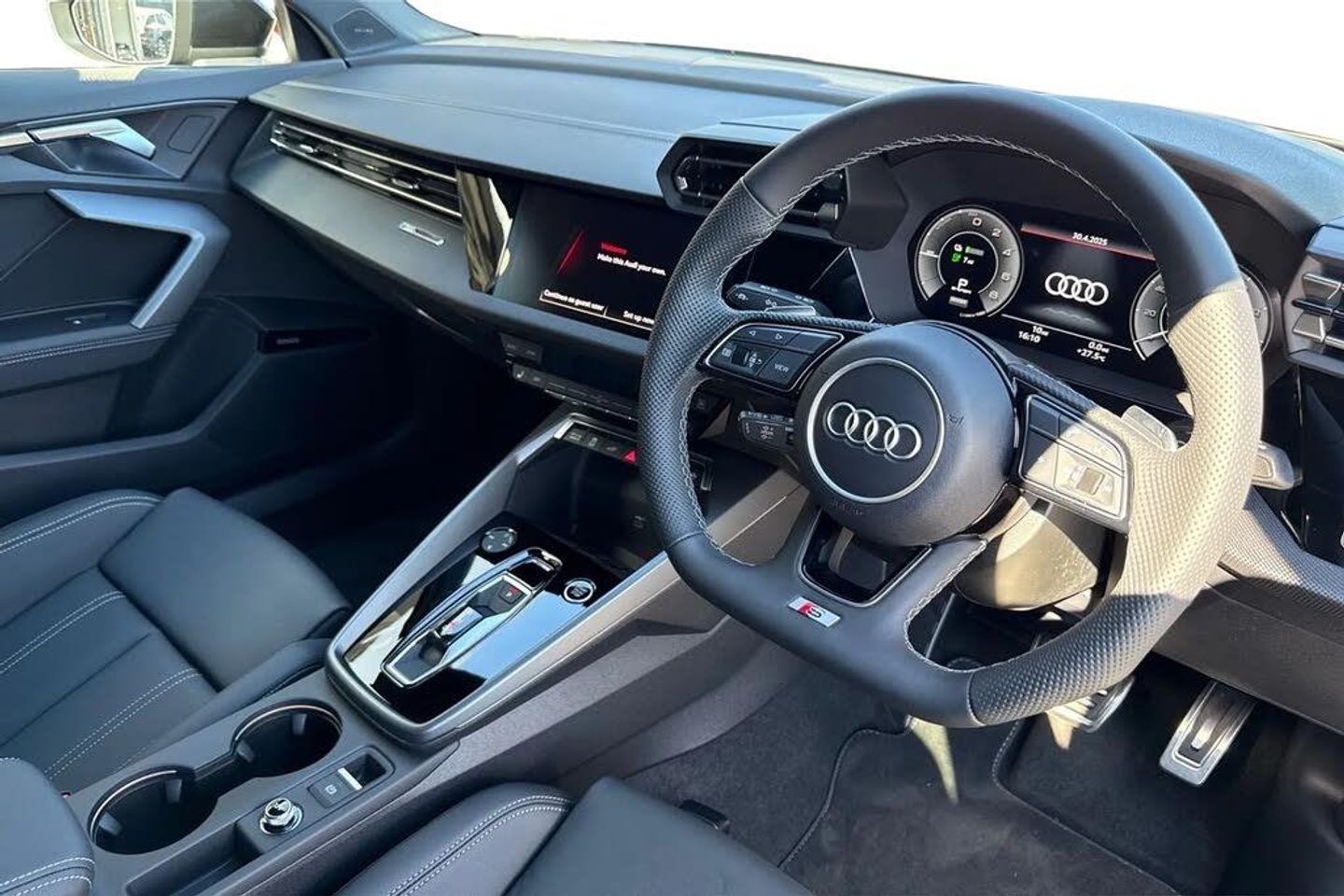 Rear view camera system,Head-up display,18" x 8.0J '5-Y-twin-spoke style' black metallic alloy wheels with 225/40 R18 tyres,Technology Pack,Equipment package for Great Britain,Internal control code,Audi beam - Audi rings,Windshield with heat-insulating glass,Black appearance package plus,Inlays in black woven fabric,Adaptive cruise control,SONOS 3D Premium Sound System,MMI experience pro,Assistance package 2 (only for Audi and commercial vehicles),Equipment options subset for Great Britain,Technology Pack,Twin Leather - Front Sport Seats with S Embossed Logo - Black