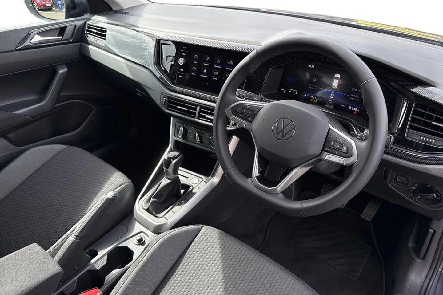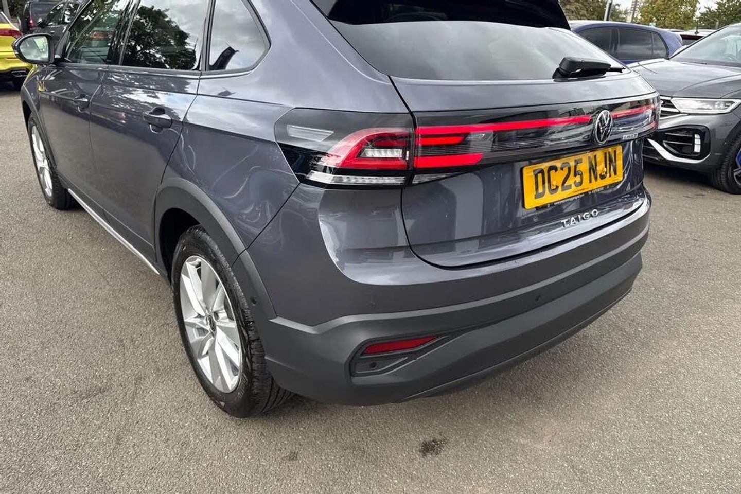 Metallic paint,Metallic - Smokey grey,Slash/ Austin cloth - Black,17" Clayton alloy wheels + anti theft wheel bolts,Electric windows,Heat insulating glass windscreen,Rear wash/wipe with intermittent wipe setting,Side windows in heat-insulating glass,from B-pillar and rear window dark tinted,Body coloured bumpers,Body coloured exterior mirror housings and door handles,External USB type C socket and charging sockets,Rear side wing doors,Ambient lighting with logo projection,LED rear combination lamp,LED third brake light,Rear fog light on one side,reversing light on both sides,Electronic stability control,Front and rear disc brakes,Hill start assist,Adaptive cruise control,Advanced driver attention and drowsiness monitor,Dynamic road sign display,Power Steering,Rear view camera,Aspherical driver's exterior mirror,Left convex exterior mirror,Power folding adjustable/heated exterior mirrors and front passenger exterior mirror lowering function,2 x 3-point seatbelts/outer rear seats with ECE label,3-point seat belts in front with pretensioner and height adjustment,3-point seatbelt for centre rear seat,Driver and front passenger airbag with front passenger airbag deactivation,Driver and front passenger safety-optimised head restraints,Extended and predictive pedestrian/ cyclist protection,Front curtain and side airbags with center airbag,Manual rear child locks,Single tone horn,Tyre pressure loss indicator,Black carpets,'Slash/ Austin' Cloth upholstery,12V socket in centre console,Ceramique headliner,Door and side trim panels in titan black,Front centre armrest,Handbrake lever handle in leather,Height and reach adjustable steering wheel,Leather trimmed gear knob,Leather wrapped multifunction steering wheel with paddle shift,Luggage compartment floor,Seat covers in titanium black,Storage compartment under front seats,Titanium black instrument panel,2 front reading lights,Luggage compartment light,Sun visors with illuminated vanity mirrors,Wireless Charging including Bluetooth,Digital radio reception (DAB+),WeConnect plus,8" Digital cockpit basic display,e-Call (emergency call),Travel assist including emergency assist,Washer fluid level indicator,Start-stop system with battery regeneration (recuperation - energy recovery during braking),Black (slush) Dashboard,Lava stone black gloss/matt decorative inserts in dash and front door panels,3 rear head restraints,3 seat bench in 2nd row,Child seat anchor for child seat system i-Size,2x top tether and child seat anchor in front on front passenger side,Driver and front passenger seat height adjustment,Lumbar support for driver's and front passengers seat,Single front passenger seat,Split folding backrest with centre armrest and unsplit rear seat bench,Chrome Package - Taigo,Drivers assistance package - Taigo,Light and sight pack - Taigo,Anti-theft alarm system with interior monitoring,backup horn,and towing protection,Keyless locking and starting system keyless access with safelock,Low rolling resistance tyres