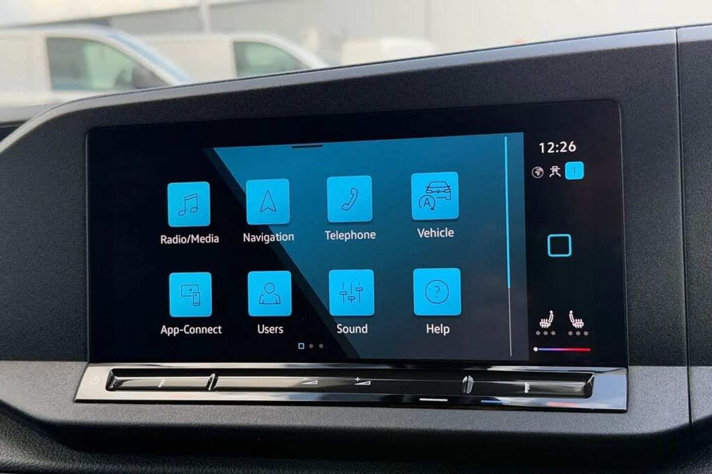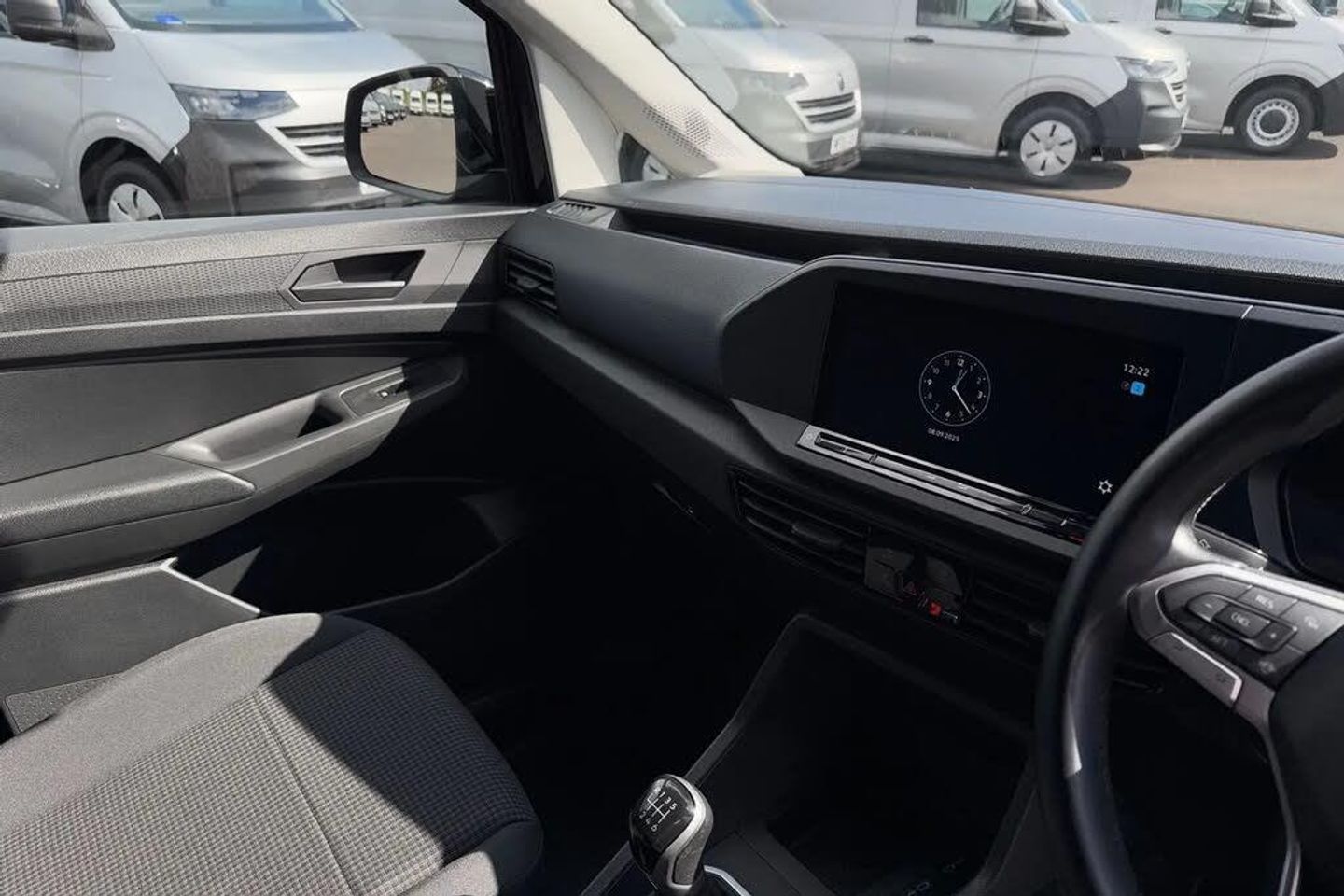 Black roof rails,Electric front windows,Heated windscreen,Windscreen wiper with variable intermittent delay and wash-wipe system,Body coloured bumpers,Roof rail preparation,Automatic hazard light activation under emergency braking,LED rear combination lights,LED rear tail lights,Anti locking braking system (ABS),Automatic post collision braking system,Autonomous Emergency Braking Front Assist with Pedestrian Monitoring,Electric parking brake with auto hold function,Electronic brake force distribution (EBD),Electronic stabilisation programme (ESP),Emergency brake assist,Engine drag torque control (MSR),Hill hold assist,Traction control system (TCS),Black painted exterior mirror housings,body-colored door handles and Silver sliding door rail,3-point seat belts in front,with pretensioner and height adjustment,Driver and front passenger airbag with front passenger airbag deactivation,Emergency call control unit with eCall,DAB Radio,Navigation system "Discover Media" with 25.4-cm (10-inch) colour touch screen incl. Streaming & Internet,4 speakers,We Connect Plus Preparation,Driver alert system includes drowsiness detection,Start-stop system with regenerative braking,Multi-function Display,Seatbelt warning indicator,Service indicator,Decorative beige birch vein inserts,ergoComfort seats for driver,Manual height adjustment for front seats and seat cushion inclination and depth adjustment on drivers seat,Power-adjustable lumbar support for drivers seat,Electronically controlled heating system,Dimming breakaway interior rear-view mirror,Lockable glove compartment door with light,Multi function leather steering wheel,Reach and rake adjustable steering column,Storage compartments under driver and front passenger seats,Sun visors with mirror,airbag label on front passenger sun visor,Interior light in headlining,Electronic differential lock (EDL),Six lashing points for securing loads,Anti-theft alarm system,interior monitoring,backup horn,and towing protection,Electronic engine immobiliser,Remote central locking with deadlocks,interior locking,Wheel bolts with anti-theft protection (unlockable)