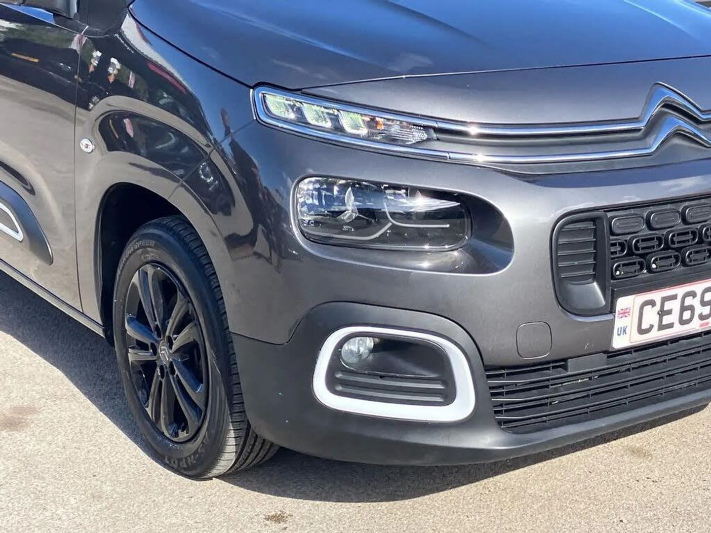 8" touch screen,Bluetooth telephone facility,Citroen connect box emergency assist system,CONNECT Navigation,Mirror screen with mirror link, apple carplay and android auto,Multi function trip computer,Start/stop system,Diesel particulate filter,6 speakers radio with mp3 compatible,DAB Digital radio,USB socket,Voice recognition for radio, navigation and telephony features,Airbump,Automatic hazard light activation upon heavy brake application,Automatic triggered rear windscreen wiper in reverse gear,Body colour door handles,Body colour door mirrors,Body coloured front bumper,Chrome chevrons front grille,Electric front windows,Electric heated door mirrors,Electric rear windows,Front fog lights with cornering function,Front windscreen wiper with multi speed setting,Halogen headlights,Headlights left on audible warning,Heated rear windscreen,LED daytime running lights,Twin sliding side doors,Two tier light signature,White fog light surrounds and airbump coloured surround on first capsule,1/3 to 2/3 split folding rear seats,12V socket,2 height parcel shelf,Air conditioning,Driver and passenger dashboard mounted cup holders,Electric power steering with reach and rake adjustable steering column,Fixing rings 4 in load compartment,Foldable passenger seat with under seat storage and elbow rest,Front interior light with 2 reading spotlights and rear interior light with timer,Full width front overhead storage shelf,Gear shift indicator,Height adjustable driver seat with adjustable lumbar support under seat storage and elbow rest,Leather steering wheel,Mica cloth upholstery,Nemo grained interior ambiance,Top box glove compartment,Tray tables at the back of the front seats,Visibility pack - Berlingo,3x Isofix child seat fittings in the second row,3x3 point rear seatbelts,Adaptive driver and front passenger airbags with passenger airbag deactivation function,Anti-locking braking system with electronic braking distribution and emergency braking assistance,Child locks on rear doors,Driver and front passenger side airbags,Electronic parking brake,Electronic stability program with hill start assist,Front and rear curtain airbags,Front and rear seats seatbelt unfastened on the move audible and visual alert,Front optimised safety headrests and 3 x rear retractable headrests with height adjustable,Front three point retractable seatbelts with force limiters,Front/rear disc brakes,Tyre pressure sensor,Automatic door locking when moving off,Deadlocks,Electronic code immobiliser,Remote central locking,16" Full black starlit Alloy Wheel,Steel spare wheel