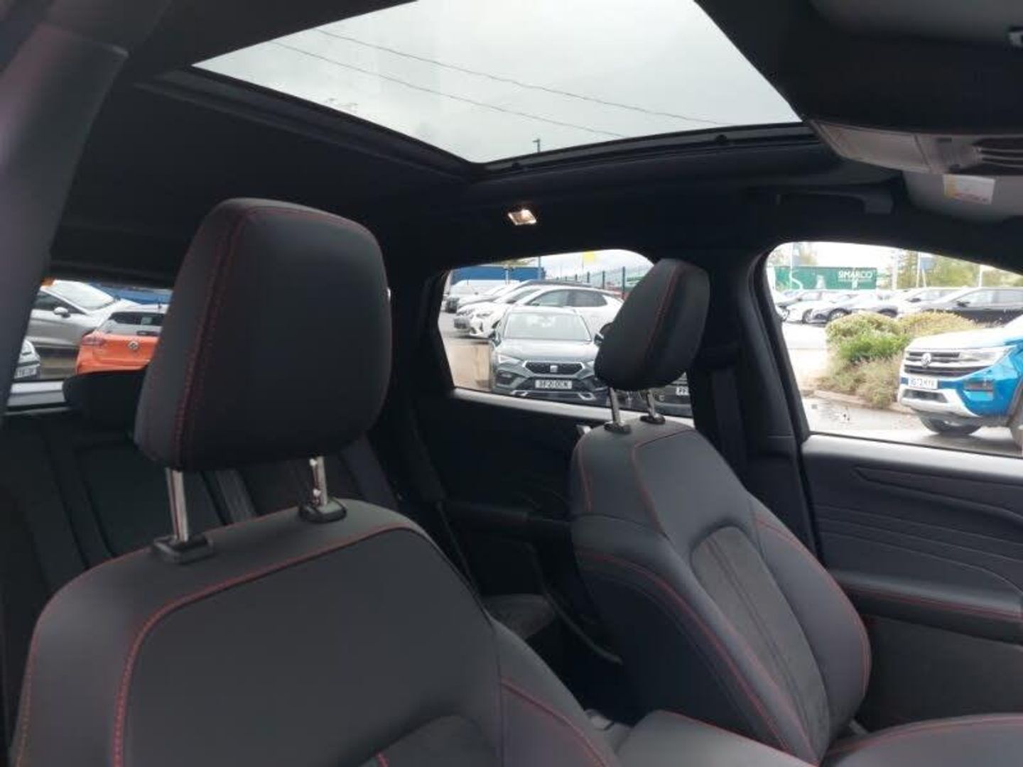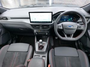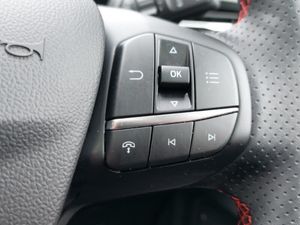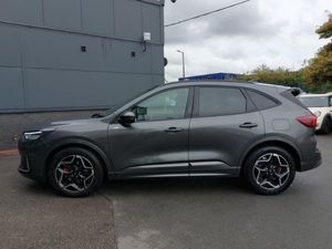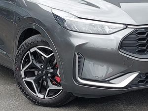 Winter pack - Kuga, B&O premium audio system with 10 speakers, subwoofer and 2 USB ports, 360 degree camera, Ford SYNC 4 Navigation with 13" touchscreen, DAB radio, emergency assistance, Andriod Auto/Apple CarPlay, 5G modem & Ford Pass connect, Ford easy fuel, Ford MyKey Gen 2 safety system, Service interval indicator, Selectable drive modes, Power assist steering, Lane keeping aid with lane departure warning, Hands free power tailgate, Front and rear parking sensors, e-Call (emergency call), 12.3" digital colour instrument cluster, Twist beam rear suspension, Sports suspension, Third brake light, ST-Line body styling kit, Rear wiper, Rear side wing doors, Rear privacy glass, Rain sensing wipers, Quickclear heated windscreen, Power opening panoramic roof, Power front/rear windows with global close, Power heated folding door mirrors with puddle lights, memory function and camera, Pop out door edge protectors, LED rear lights, LED daytime running lights, Large rear spoiler, Front LED fog lamps, Body colour bumpers, Black roof rails, Auto headlamps with high and low beam, Sports seats, Single front passenger seat, Rear centre head restraint, Partial premium touch sensico upholstery, Front and rear head restraints, Electronic automatic temperature control (EATC), 2nd row sliding seats, 12 way ergonomic power adjust passenger seat (AGR certified), 12 way ergonomic power adjust driver's seat with memory (AGR certified), Driver assistance pack with intelligent adaptive cruise control - Kuga, Tyre pressure monitoring system, Red brake calipers, Rear seat Occupancy alert, Pre collision assist with autonomous emergency braking, Manual child proof rear door locks, Evasive steering assist, Electronic stability control (ESC) and ABS, Dynamic brake support, Drivers knee airbag, Airbags - front driver/passenger, front and rear curtain, 3x3 point rear seatbelts, Thatcham category 1 alarm, Remote powered central double locking doors, Locking wheel nuts, Keyless entry and Ford power start button (Keyless start), Engine immobiliser