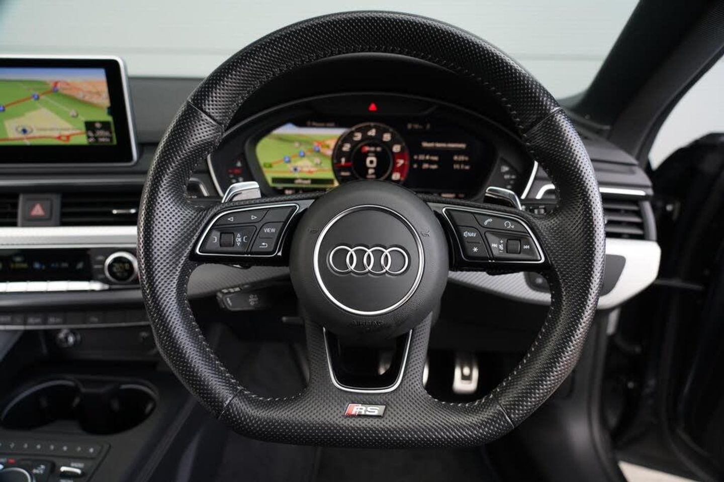 6-Airbag System, ABS - Anti-Lock Braking System, Anti-Theft Alarm, Audi Connect Infotainment Services - 36 Month Trial, Audi Connect Safety and Service, Audi Side Assist, Audi Smartphone Interface, Audi Sound System, Audi Virtual Cockpit, Auto-Dimming Rear-View Mirror, Cloth Headlining in Black, DAB Digital Radio Reception, Deluxe 3-Zone Electronic Climate Control, Door Mirrors - Electrically Folding - Adjustable and Heated with Integrated LED Side Indicators and Kerb-view Function for Passenger Side, Door Mirrors - Matt Aluminium Look Housings, Door Sill Trims - Illuminated with RS5 Logo, Electric Windows - Front, Electrically Adjustable Front Seats, Electromechanical Power Steering, First Aid Kit and Warning Triangle, Flat-Bottomed High Multi-function 3-Spoke Leather Sport Steering Wheel with RS Badging, Front Centre Armrest, Front and Rear Floor Mats, Heated Front Seats, High-Beam Assist, Hill Hold Assist, Inlays - Aluminium Race, LED Headlights with LED Rear Lights and Dynamic Rear Indicators, LED Interior Light Package, Leather Door Armrests and Knee Pad, Lumbar Support - Pneumatically Adjustable with Massage Function, MMI Navigation Plus including MMI Touch, Multi Collision Brake Assist, Pedals and Footrest - Stainless Steel, Pop-Up Bonnet for Pedestrian Protection, Pre-Sense City, RS Audi Drive Select, RS Body Styling, RS Exhaust System, RS Sports Suspension, RS-Specific Gear Lever Knob in Perforated Leather with Contrast Stitching, Remote Control Key with RS Emblem, Seat Belt Monitoring, Space Saver Spare Wheel, Split-Folding 2-Seater Rear Seat Bench in 3 Parts - 40-20-40 with Rear Centre Armrest, Tool Kit and Car Jack, Windscreen with Acoustic Glazing, quattro with Sports Differential, 20in Alloy Wheels - 5-Arm-trapezoid Design Forged in Anthracite Black - Diamond Cut Finish, RS Sports Exhaust System, Black Styling Package, Privacy Glass