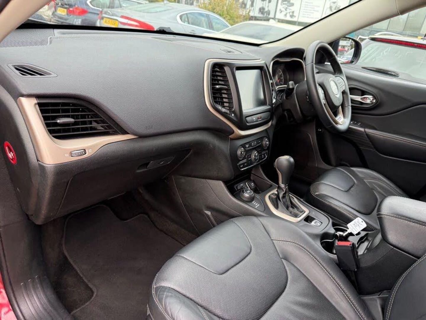12V Power Socket, 12V Power Socket - Luggage Compartment, 18in Alloy Wheels - Polished Aluminium, 9 Amplified Speakers with Subwoofer, ABS - Anti-Lock Brakes, Air Conditioning - Dual Zone with Automatic Temperature Control, Airbags - Drivers, Airbags - Drivers Knee, Airbags - Front and Rear Side Curtain, Airbags - Passenger, Alarm - Thatcham Category 1, Ambient LED Interior Lighting, Armrest, Armrest - Rear with Cupholders, Audio Jack Input, Auto Dimming Rear View Mirror, Body Coloured Shark Fin Antenna, CD Player - Remote Single Disc in Centre Armrest, Child Seat Upper Tether Anchorages, Chrome Grille, Comfort and Convenience Pack, Conventional Differential Rear Axle, Cruise Control, Cupholders - Rear, DAB - Digital Audio Broadcasting, Daytime Running Lights - LED, Deep Tint Sunscreen Glass, Door Mirrors - Power Folding - Heated with Auto Folding Function and Puddle Light, EARS - Emergency Accident Response System, ERM - Electronic Roll Mitigation, ESC - Electronic Stability Control, Electric Park Brake, Electric Windows - Front One Touch, Electronic Convenience Group, Electronic Vehicle Information Centre, Exhaust Tailpipes - Chrome Dual, Floor Mats - Front and Rear, Front Fog Lights with Cornering Lights, Gear Knob - Leather Wrapped, Headlights - Automatic On, Headlights - Bi-Xenon, Headlights - Black Bezels, Headlights - Washers, Heated Front Seats, Hill Start Assist, Humidity Sensor, Instrument Cluster - 7in TFT Colour Display, Interior Accents - Premium, Jeep Active Drive, Jeep Rack Off Road Kit - inc. Gloves and Tow Straps, Keyless Enter-N-Go, Leather Wrapped Steering Wheel, Luggage Compartment - Cover, Luggage Compartment - Management System, Luggage Compartment - Storage Net, Luggage Compartment - Tie Down Loops, Map-Dome Reading Lights, Park Assist Pack, ParkSense Front Park Assist System, ParkSense Rear Park Assist System, ParkView Rear Back Up Camera, Power Locking Fuel Cap Door, Power Steering - Electro-Hydraulic, Power Tailgate, Rain Sensitive Windscreen Wipers, Rear 60-40 Split Folding, Rear Lights - LED, Remote Central Locking, Remote SD Card Slot, Roof Rails - Chrome, Seats - Drivers 4-Way Electric Lumbar Adjustment, Seats - Drivers 8-Way Electric Adjustment, Seats - Front Passenger Fold Flat, Seats - Passenger 6-Way Adjustment, Selec-Terrain System, Steering Column - Electronic Shaft Lock, Steering Column - Tilt and Telescopic, Steering Wheel - Mounted Audio Controls, Sun Visors with Illuminated Vanity Mirrors, Traction Control, Trailer Sway Damping - Control, Tyre Pressure Monitoring - Warning Display, Tyre Service Kit, UConnect 8.4in SmartTouch Navigation System, UConnect 8.4in SmartTouch System, UConnect Bluetooth, UConnect Phone with Voice Command, USB Connectivity, Nappa Leather - Morocco Black, Deep Cherry Red