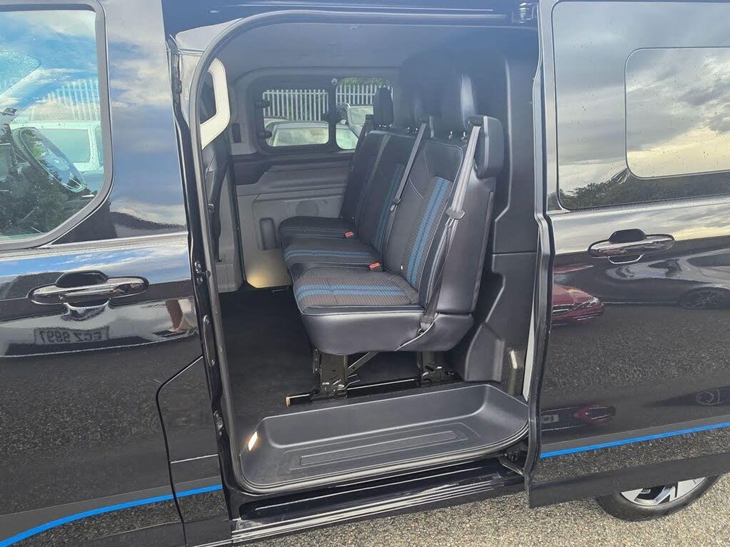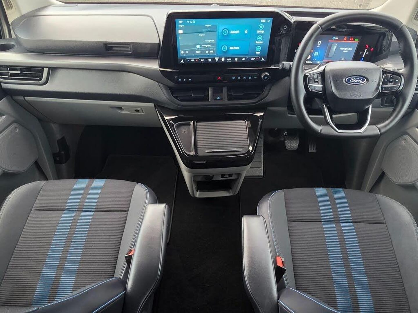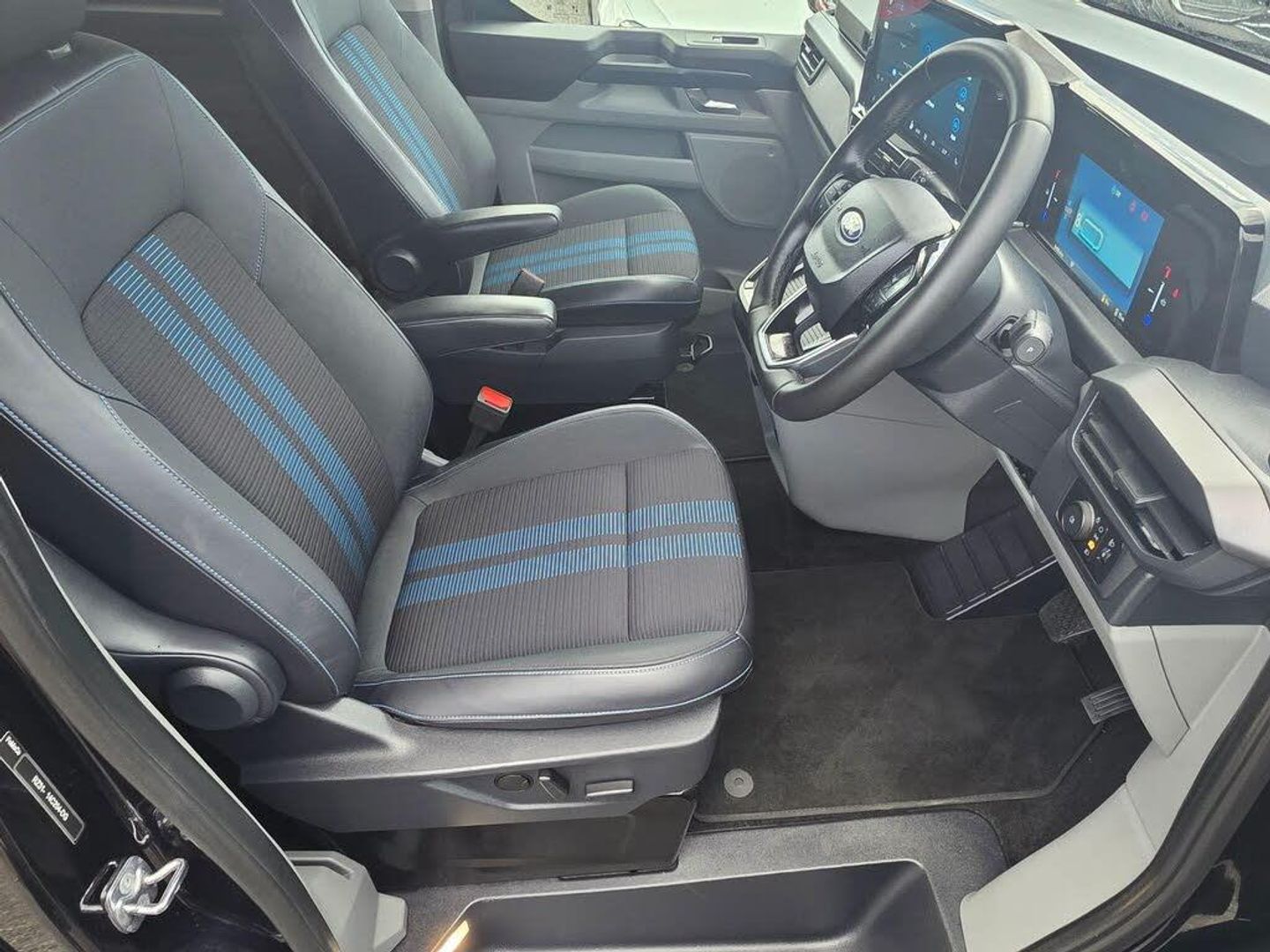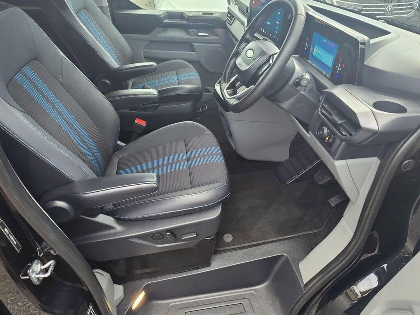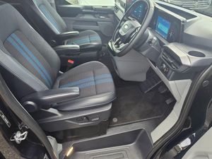 11kW Three Phase Onboard AC Charger, 13in Touchscreen, 17in Alloy Wheels - Sport Directional-Spoke in Matte Black, 2 Remote Keys, 3 Phase Charge Cord, 3 Seat Rear Seats with Underseat Stowage, 5G Embedded Modem, ABS - Anti-lock Braking System, AECS NO SMS - Roll Detect 2G, Alcohol Interlock, Automatic Headlights with Rain Sensing Wipers, Body Colour Rear Bumper, Body Coloured Exterior Mirror Finish, Bodyside Mouldings - Body Colour, Bottle Holder - Twin 2 litre Bottle Capacity - Facia-Mounted, Bumper - Body Colour Front Bumper, Coast-to-Coast Light Bar, Comfort Plus Single Passenger Seat Pack, Courtesy Light, Daytime Running Lamps, Door Handles - Body Colour, Doors - Dual Side Load, Drivers Airbag, Dual Power Mirrors - Auto-Power Fold and Heated, Dual Zone Automatic Air Conditioning, EBA - Emergency Brake Assist, EBD - Electronic Brakeforce Distribution, ESC - Electronic Stability Programme, Electric Brake Boost, Electric Windows - Power Front with Driver-Passenger One-Touch, Emergency Brake Light Flashing, Engine Immobiliser, Fixed DSS LED Headlamps with Auto High Headlamps, Front Seat Belts with Pre-Tensioners, Front Windshield Defroster - Quick Clear, HLA - Hill Launch Assist, Half Height Polypro Interior Trim Panels, Headliner - Extended - Moulded, Heat Pump, Hill Start Assist, Hinged Rear Cargo Door, Inclination Anti-Theft Sensor, Interior Grab Handle with Drivers Sunglasses Holder, Interior LED Lights, Keyless Entry, LAC - Load Adaptive Control, LED Taillamps, Large Console, Load Compartment - Tie Down Loops x4, Lockable Glovebox, Locking Wheel Nuts, Mechanical Parking Brake, Moulded Load Floor Liner, Passenger Airbag, Polymer Moulded Bulkhead, Power Assisted Steering, Power Cinch Latch, Power Door Deadlocks - Double Locking, Privacy Glass, RSC - Roll Stability Control, Rear Reading Lights, Rear Seat Belts, Rear Seats - ISOFIX Fittings, Rear USB Port, Reversing Camera Pack - DAT Pack 2, SYNC 4, Seat Belts - 3-Point Diagonal Inertia Reel - All Seats, Side Windows - Second Row - Flip Open, Signature BEV Grille, Speed Limiter-Engine Governor - 93mph - 150kph, Sports Styling Kit, Standard Unlocking, Steering Column - Rake and Reach Adjustment, Steering Wheel - Leather-Trimmed, Storage - Drivers Side Storage Compartment on Facia Top, Storage - Front Door Map Pockets, Storage - Underseat Stowage Compartment, Super Bright Load Compartment Lights, Temporary Spare Wheel, Thatcham Category 1 Alarm, Tool Kit, Traction Control - TC, Trailer Sway Control, Trip Computer, Tyre Pressure Monitoring System - TPMS, Tyre Repair Kit, Vapour Injected Heater, Washer Tank Level Warn Lamp, eTransit Puddle Lamps, Navigation Plus Pack, Doors - Power Dual Side Load Doors, 19in Alloy Wheels - Sport Directional-Spoke Machined in Black, All Weather Tyres, 3 Phase Charge Cord XL, H8 Dual AGM Battery, Rear Power Point Plug, Cloth - Ripple Style with Digital Aqua Accents