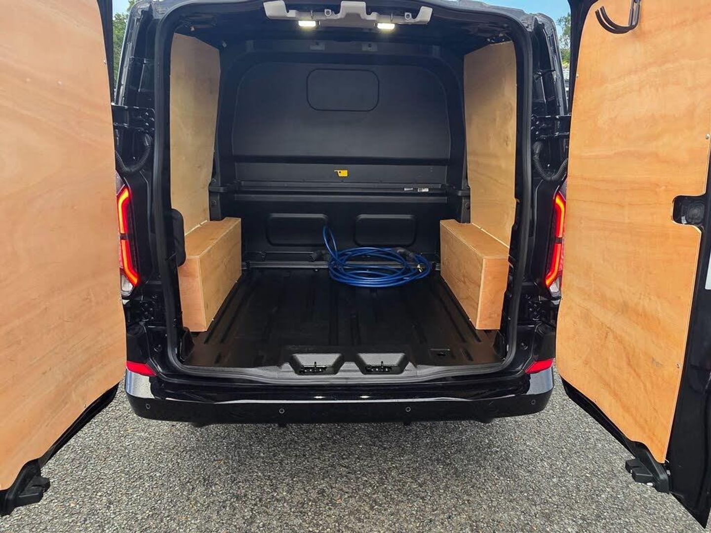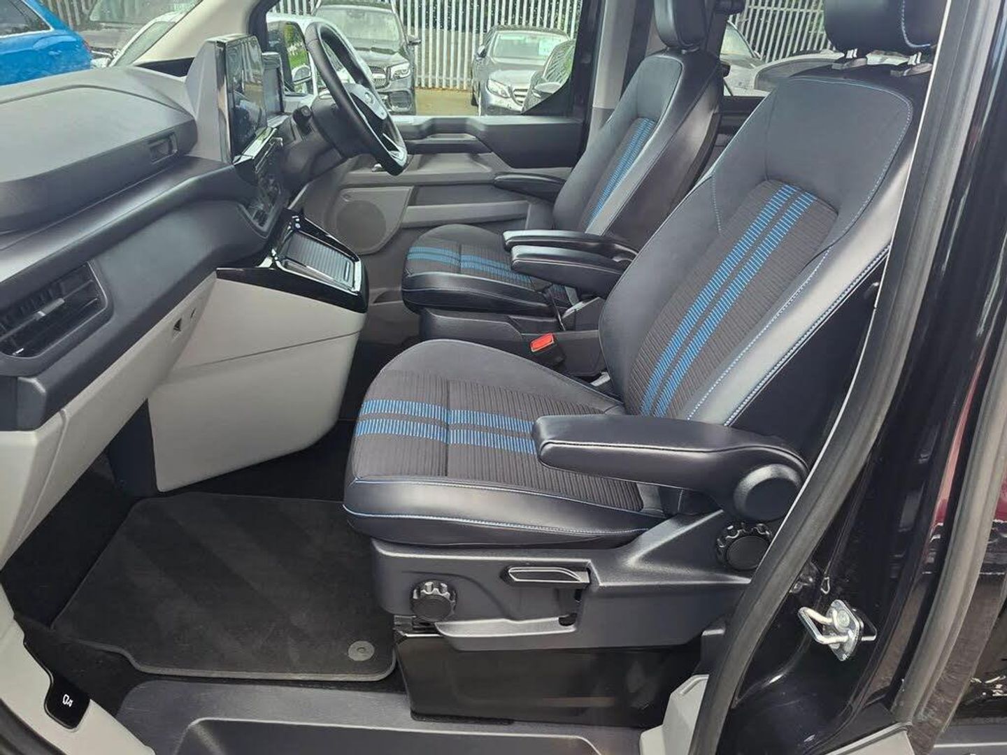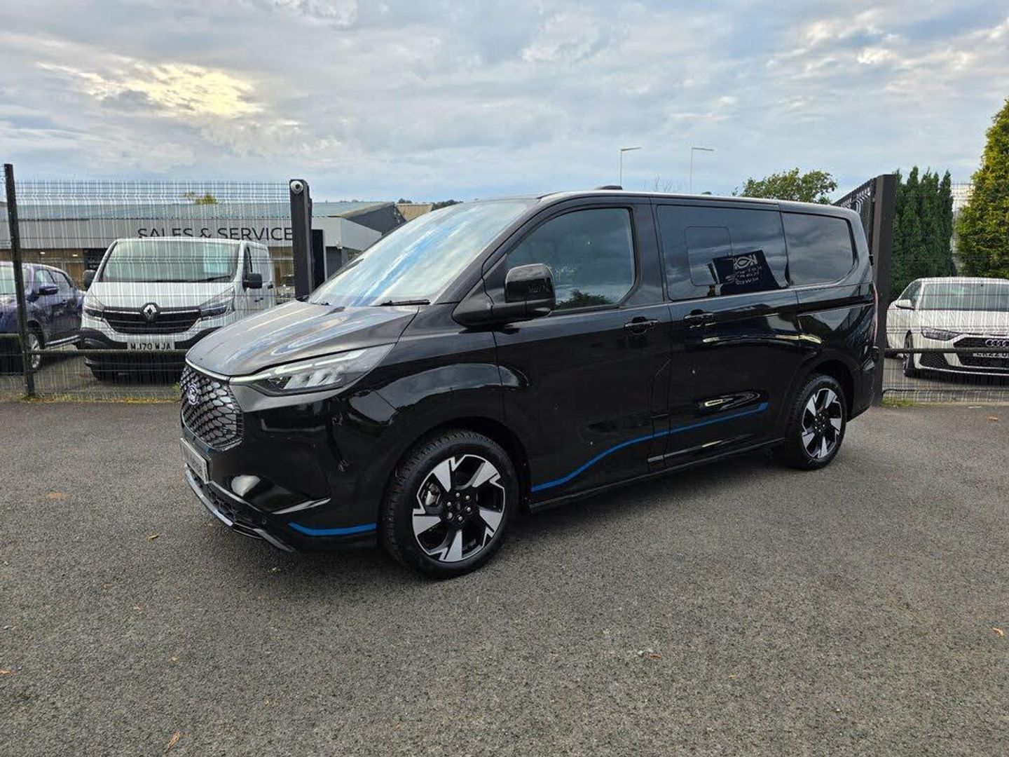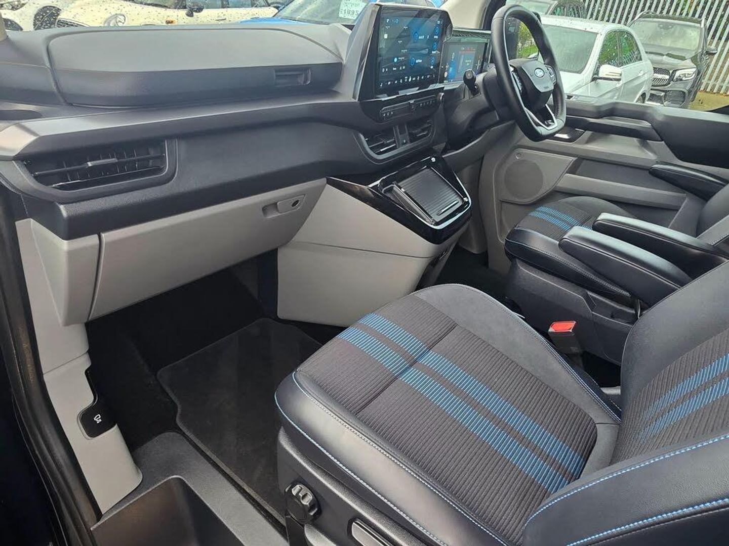 11kW Three Phase Onboard AC Charger, 13in Touchscreen, 17in Alloy Wheels - Sport Directional-Spoke in Matte Black, 2 Remote Keys, 3 Phase Charge Cord, 3 Seat Rear Seats with Underseat Stowage, 5G Embedded Modem, ABS - Anti-lock Braking System, AECS NO SMS - Roll Detect 2G, Alcohol Interlock, Automatic Headlights with Rain Sensing Wipers, Body Colour Rear Bumper, Body Coloured Exterior Mirror Finish, Bodyside Mouldings - Body Colour, Bottle Holder - Twin 2 litre Bottle Capacity - Facia-Mounted, Bumper - Body Colour Front Bumper, Coast-to-Coast Light Bar, Comfort Plus Single Passenger Seat Pack, Courtesy Light, Daytime Running Lamps, Door Handles - Body Colour, Doors - Dual Side Load, Drivers Airbag, Dual Power Mirrors - Auto-Power Fold and Heated, Dual Zone Automatic Air Conditioning, EBA - Emergency Brake Assist, EBD - Electronic Brakeforce Distribution, ESC - Electronic Stability Programme, Electric Brake Boost, Electric Windows - Power Front with Driver-Passenger One-Touch, Emergency Brake Light Flashing, Engine Immobiliser, Fixed DSS LED Headlamps with Auto High Headlamps, Front Seat Belts with Pre-Tensioners, Front Windshield Defroster - Quick Clear, HLA - Hill Launch Assist, Half Height Polypro Interior Trim Panels, Headliner - Extended - Moulded, Heat Pump, Hill Start Assist, Hinged Rear Cargo Door, Inclination Anti-Theft Sensor, Interior Grab Handle with Drivers Sunglasses Holder, Interior LED Lights, Keyless Entry, LAC - Load Adaptive Control, LED Taillamps, Large Console, Load Compartment - Tie Down Loops x4, Lockable Glovebox, Locking Wheel Nuts, Mechanical Parking Brake, Moulded Load Floor Liner, Passenger Airbag, Polymer Moulded Bulkhead, Power Assisted Steering, Power Cinch Latch, Power Door Deadlocks - Double Locking, Privacy Glass, RSC - Roll Stability Control, Rear Reading Lights, Rear Seat Belts, Rear Seats - ISOFIX Fittings, Rear USB Port, Reversing Camera Pack - DAT Pack 2, SYNC 4, Seat Belts - 3-Point Diagonal Inertia Reel - All Seats, Side Windows - Second Row - Flip Open, Signature BEV Grille, Speed Limiter-Engine Governor - 93mph - 150kph, Sports Styling Kit, Standard Unlocking, Steering Column - Rake and Reach Adjustment, Steering Wheel - Leather-Trimmed, Storage - Drivers Side Storage Compartment on Facia Top, Storage - Front Door Map Pockets, Storage - Underseat Stowage Compartment, Super Bright Load Compartment Lights, Temporary Spare Wheel, Thatcham Category 1 Alarm, Tool Kit, Traction Control - TC, Trailer Sway Control, Trip Computer, Tyre Pressure Monitoring System - TPMS, Tyre Repair Kit, Vapour Injected Heater, Washer Tank Level Warn Lamp, eTransit Puddle Lamps, Navigation Plus Pack, Doors - Power Dual Side Load Doors, 19in Alloy Wheels - Sport Directional-Spoke Machined in Black, All Weather Tyres, 3 Phase Charge Cord XL, H8 Dual AGM Battery, Rear Power Point Plug, Cloth - Ripple Style with Digital Aqua Accents