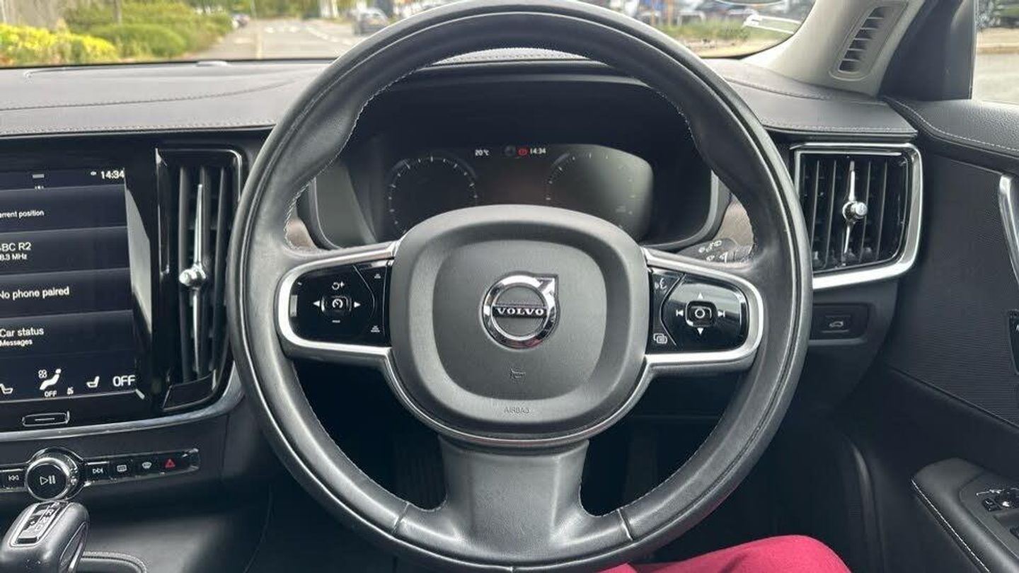 Power Passenger Seat, Dark Tinted Windows - Rear Side Windows and Cargo Area, Front Park Assist, Front Park Assist, Smartphone Integration includes Apple CarPlay and Android Auto with 2 x USB, Dark Tinted Windows - Rear Side Windows and Cargo Area, Power Passenger Seat, 19in Alloy Wheels - 5 Double Spoke - Diamond Cut - Matt Black, Heated Front Windscreen - Removes Head-Up Display, Pine Grey Metallic Paint, Charcoal Leather, 19 6 Double Spoke (Diamond Cut/Matt Black) with 235/50 Tyres, Dark Tinted Windows, Keyless Drive, Apple CarPlay, Pilot Assist, Reserve online for £100, Personalised walkaround video available on request, 24 Month Volvo Selekt Warranty (Additional 12 months to standard offering) and 2 services for just £199 with 10.9% APR representative PCP finance available when funded through Volvo Cars Financial Services (terms and conditions apply), Call Leicester on 01162758800, Iluminated Gear Knob, Adaptive Cruise Control with Distance Alert & Queue Assist, Pilot Assist (up to 80mph), Drive Mode Settings, Hill Start Assist, Adjustable Steering Force, Hill Descent Control, Touring Chassis, LED Headlights with Active High Beam, Autofolding Heated Power Door Mirrors, Colour Coordinated Door Mirrors, Rain Sensor - Automatic Windscreen Wiper Activation, Power Operated Tailgate, Roof Rails - Integrated. Silver, Standard mesh front, High Gloss Black Window Trim Surround, Charcoal Lower Sill Mouldings, Colour Coordinated Door Handles, Black wheel arch, Dual Integrated Exhuast Pipes, Rear Park Assist, 18 5 Double Spoke Alloy Wheels with 235/55 Tyres, Lockable Wheel Nuts, Tyre Pressure Monitoring System, Tempa Spare Wheel and Jack, 2-Zone Electronic Climate Control, CleanZone Air Quality System and Pollen Filter, 8 Active TFT Crystal Driver's Information Display, Center Console Cupholders and Storage, Illuminated Vanity Mirrors with Ticket Holder, 12v Socket (Front and Rear Tunnel Console and Cargo Area), Automatic Load Cover, Grocery Bag Holder, Bright Metal Luggage Compartment Threshold, 12v Socket (Front and Rear Tunnel Console and Rear Passenger Compartment), Cargo Divider, A-Pillar Parking Ticket Holder, Front Tunnel Net Pocket, Power Height Adjustable Driver Seat with Multi-directional Lumbar Support, Power Height Adjustable Passenger Seat with Lumbar Support, Heated Front Seats, Power Folding Rear Seat Backrest From Tailgate Opening, Power Folding Rear Headrests, Black Walnut Trim, Floor Mats, Dual Stage Driver and Passenger Airbags, Knee Airbag (Driver's Side), SIPS (Side Impact Protection System), IC (Inflatable Curtains), WHIPS (Whiplash Protection System), Seat Belt Pre-tensioners (Front and Rear), Passenger Airbag Cut Off Switch, ISOFIX Attachment (Rear Seats), Emergency Brake Assist, High Positioned Rear Brake Lights, Anti-theft Alarm including Immobiliser. Volume Sensor and Level Sensor, Interior motion sensor for Alarm, Inclination sensor for Alarm, Lockable Glovebox, Key Integrated Remote Control Central Locking inc Fuel Flap with Deadlocking System & Auto Open/Close Power Windows (and Sunroof if ordered), Private Locking for Glovebox & Tailgate, Central lock switch with diode in front doors, Autodimming Rear View Mirror, First Aid Kit, Warning Triangle, City Safety (includes Pedestrian & Cyclist Detection & Front Collision Warning with Full Auto Brake), Sensus Connect with High Performance Sound with 10 Speakers/330W Output, Steering Wheel Remote Infotainment Controls, 1 x USB, Bluetooth Handsfree System, Sensus Navigation, Map region for Europe, Road Sign Information Display, DAB (Digital Audio Broadcasting) Radio, Voice Activated Control for Key Functions