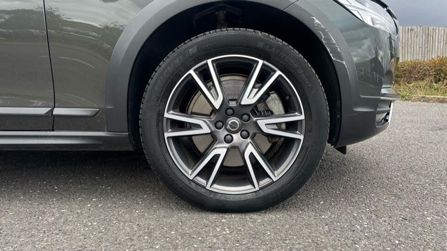 Pine Grey, Charcoal Leather, Power Passenger Seat, Front LED Foglights with Cornering Function, 12.3' Active TFT Crystal Driver's Information Display, Power Driver Seat with Memory, Heated Washer Nozzles, Headlight Cleaning System, 19' 6 Double Spoke (Diamond Cut/Matt Black) with 235/50 Tyres, Integrated Sun Curtains - Rear Doors, Volvo On Call with App, Active Bending Headlights with Adaptive Shadow Technology, Heated Steering Wheel, Heated Front Windscreen, Interior Lighting Pack, Power Cushion Extensions and Power Front Seat Side Support (includes Memory for Passenger Seat), Tailored Instrument Panel and Door Tops, Dark Tinted Windows - Rear Side Windows and Cargo Area, Keyless Drive (includes Keyless Entry and Keyless Start) with Remote Tag plus Handsfree Tailgate Opening/Closing, Smartphone Integration (includes Apple CarPlay and Android Auto) with 2 x USB, Front Park Assist, Iluminated Gear Knob, Adaptive Cruise Control with Distance Alert & Queue Assist, Pilot Assist (up to 80mph), Drive Mode Settings, Hill Start Assist, Adjustable Steering Force, Hill Descent Control, Touring Chassis, LED Headlights with Active High Beam, Autofolding Heated Power Door Mirrors, Colour Coordinated Door Mirrors, Rain Sensor - Automatic Windscreen Wiper Activation, Power Operated Tailgate, Roof Rails - Integrated. Silver, Standard mesh front, High Gloss Black Window Trim Surround, Charcoal Lower Sill Mouldings, Colour Coordinated Door Handles, Black wheel arch, Dual Integrated Exhuast Pip