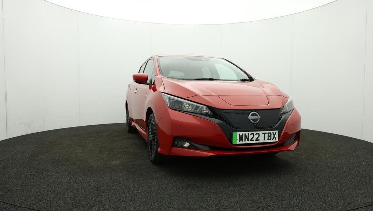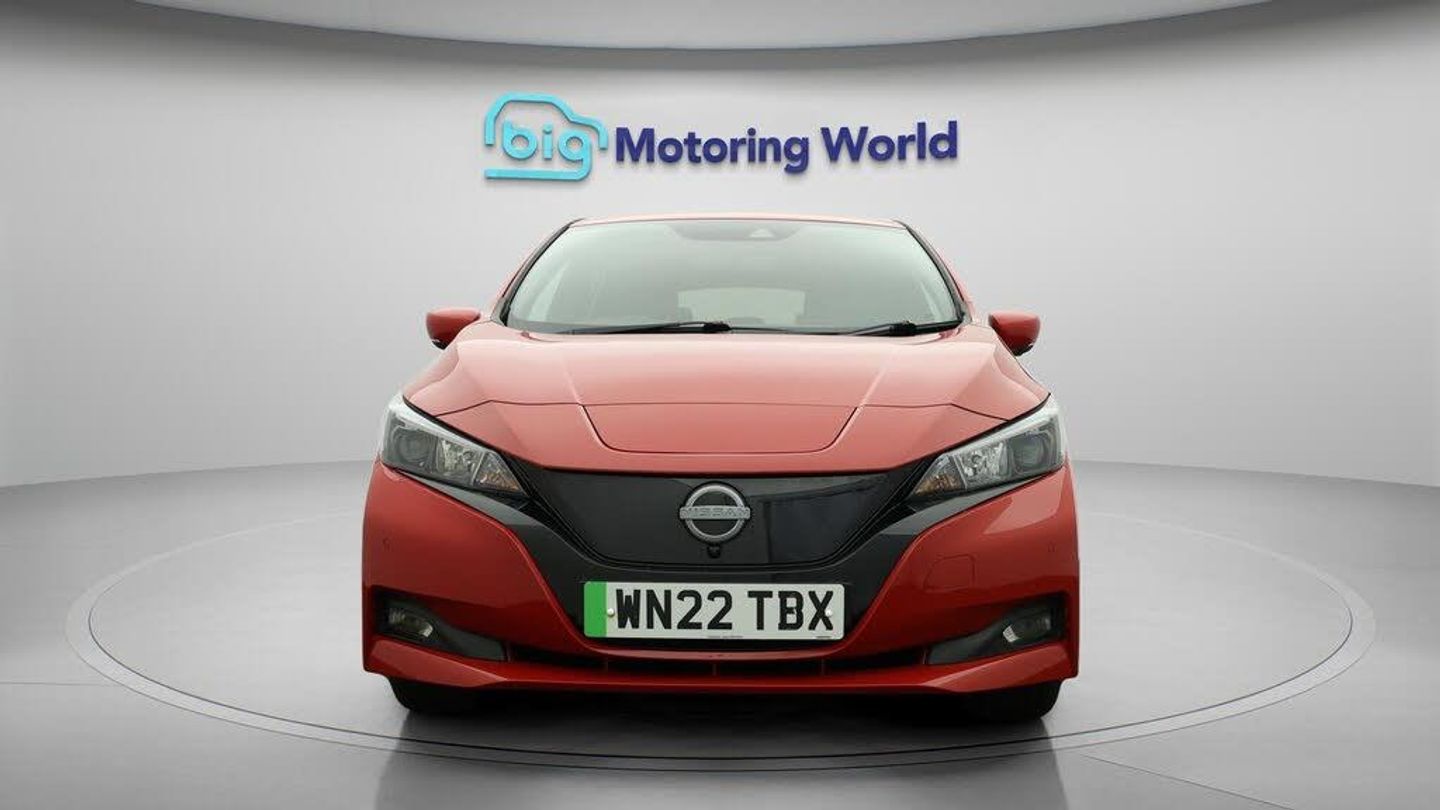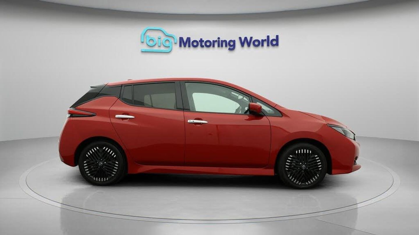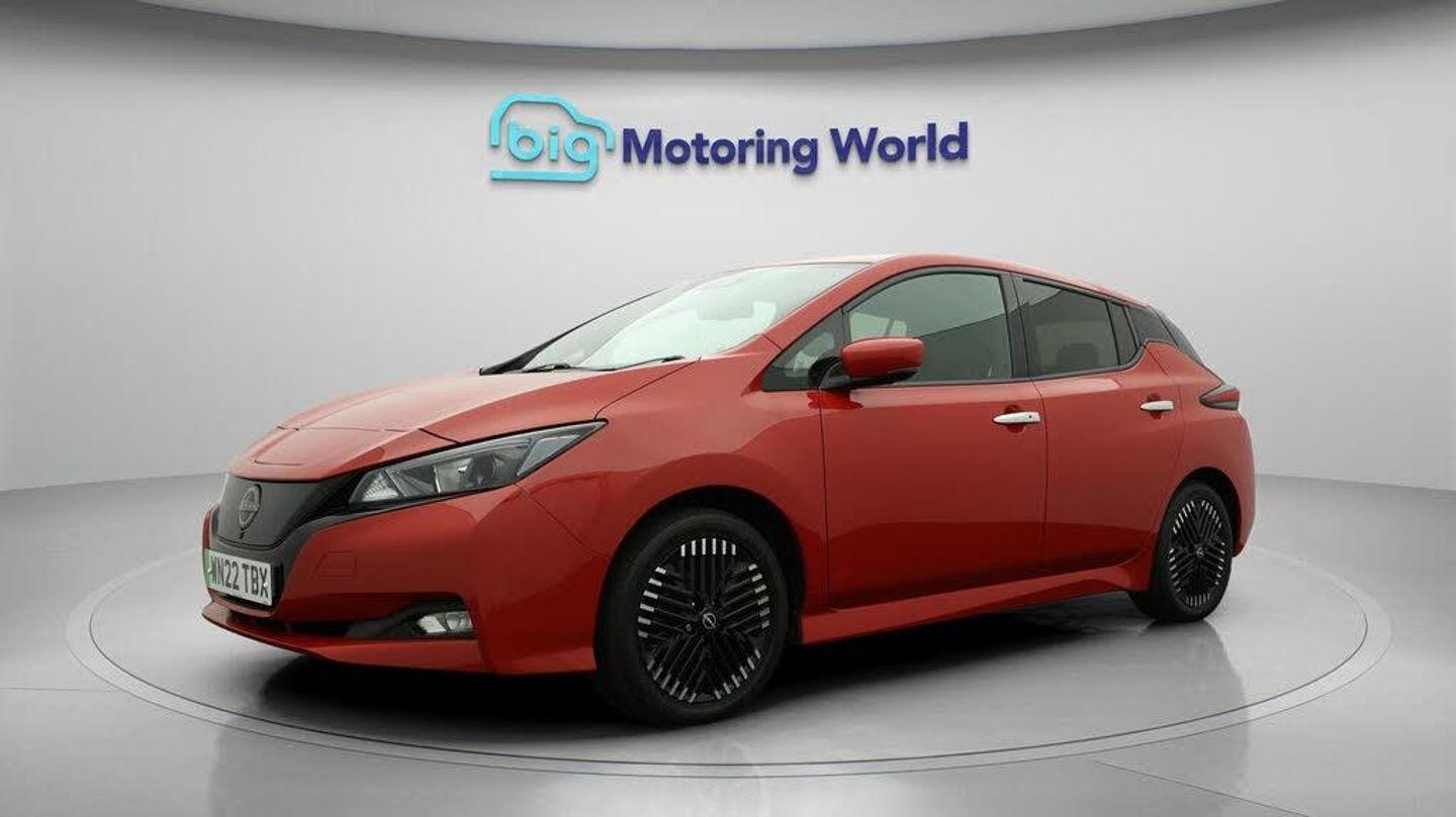 FREE £750 towards your finance-Our Nissan Leaf is finished in Red. Specification includes a range of fantastic features including FREE £750 towards your finance Deposit, 17'' Alloy Wheels, Part Leather Seats, Adaptive Cruise Control, Apple CarPlay, Android Auto, Satellite Navigation, Privacy Glass, Heated Seats, Rear View Camera Specification information is supplied by CAPHPI and may vary to the actual car. This data does not form any part of a buying contact. Please check specification prior to purchase in-store. The MOT is valid until May 2026, visit bigmotoringworld.co.uk for more photos, a 360 tour, service history and a free HPI report.Were BIG on peace of mind and this Red Nissan Leaf has completed our comprehensive 200 point inspection and passed all checks. Its ready for you to drive away with immediate collection in-store. We include a 90-day warranty as standard plus an option to extend for up to 3 years.Reserve this car exclusively for you, safely and securely at bigmotoringworld.co.uk, with a fully refundable £99 deposit. Test drive before you buy, with no commitment, no hassle and a completely haggle free experience. Still searching and want to see thousands more cars? We are BIG on choice with over 8000 cars to choose from.Visit our award winning web site bigmotoringworld.co.uk.Were Big Motoring World and were BIG on what matters to you.