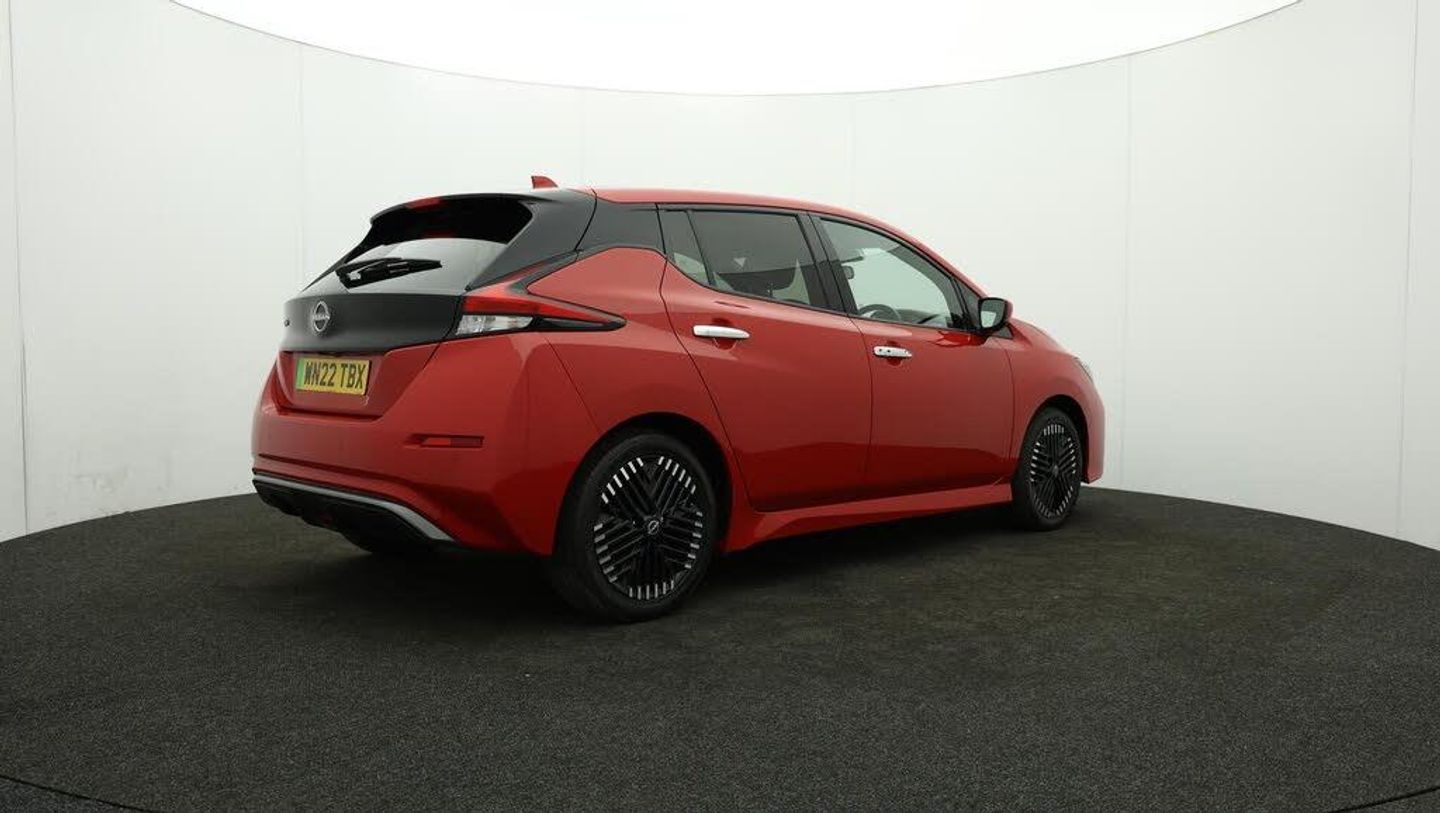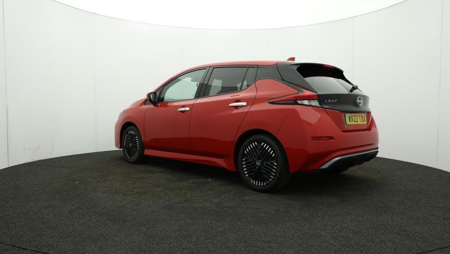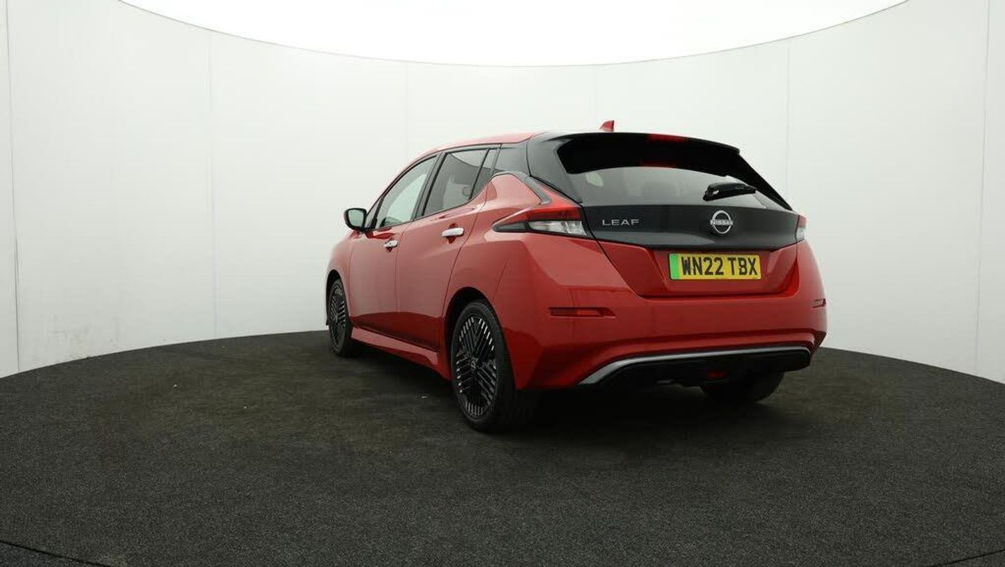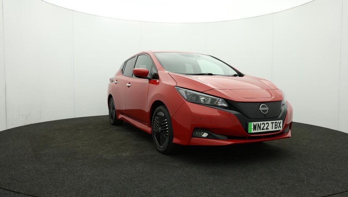 FREE £750 towards your finance-Our Nissan Leaf is finished in Red. Specification includes a range of fantastic features including FREE £750 towards your finance Deposit, 17'' Alloy Wheels, Part Leather Seats, Adaptive Cruise Control, Apple CarPlay, Android Auto, Satellite Navigation, Privacy Glass, Heated Seats, Rear View Camera Specification information is supplied by CAPHPI and may vary to the actual car. This data does not form any part of a buying contact. Please check specification prior to purchase in-store. The MOT is valid until May 2026, visit bigmotoringworld.co.uk for more photos, a 360 tour, service history and a free HPI report.Were BIG on peace of mind and this Red Nissan Leaf has completed our comprehensive 200 point inspection and passed all checks. Its ready for you to drive away with immediate collection in-store. We include a 90-day warranty as standard plus an option to extend for up to 3 years.Reserve this car exclusively for you, safely and securely at bigmotoringworld.co.uk, with a fully refundable £99 deposit. Test drive before you buy, with no commitment, no hassle and a completely haggle free experience. Still searching and want to see thousands more cars? We are BIG on choice with over 8000 cars to choose from.Visit our award winning web site bigmotoringworld.co.uk.Were Big Motoring World and were BIG on what matters to you.