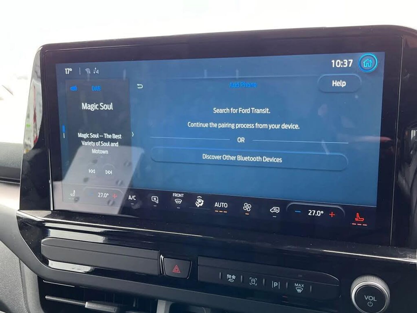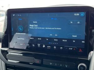 13" Touchscreen,5G embedded modem,AECS NO SMS/Roll Detect 2G,Close Assist,PAS,Tyre pressure monitor,SYNC 4 - Android Auto/Apple Car Play,advance speech recognition,over the air update capability,Automatic headlights,Body coloured door mirrors,Body coloured front bumper,Body coloured rear bumpers,Daytime running lights,Electric front windows with one touch facility for driver and front passenger,Fixed DSS LED headlamps with auto high headlamp,Hood Accent Stripes,LED tail lamps,Low roof line,Power cinch latch,Quickclear front window defroster,Rear cargo hinged door,Rear spoiler,Trailer sway control,6 Load compartment tie down loops,Courtesy light,Dual zone automatic air conditioning,Interior grab handle with driver's sunglasses holder,LED lights,Locking glove box lid,Rear seat climate control,Sensico gearshift knob,Super bright load compartment lights,Passenger airbag,2 remote keys,Alcohol Interlock wiring preparation pack,Keyless entry and start,Locking wheel lug nut,Standard unlocking,Thatcham category 1 alarm,20L AdBlue tank,ABS,Diesel particulate filter,ESP,Hill launch assist,Traction control,16" Steel spare wheel,Full wheelcovers,Cloth - Ripple Style with Digital Aqua Accents,Grey Matter