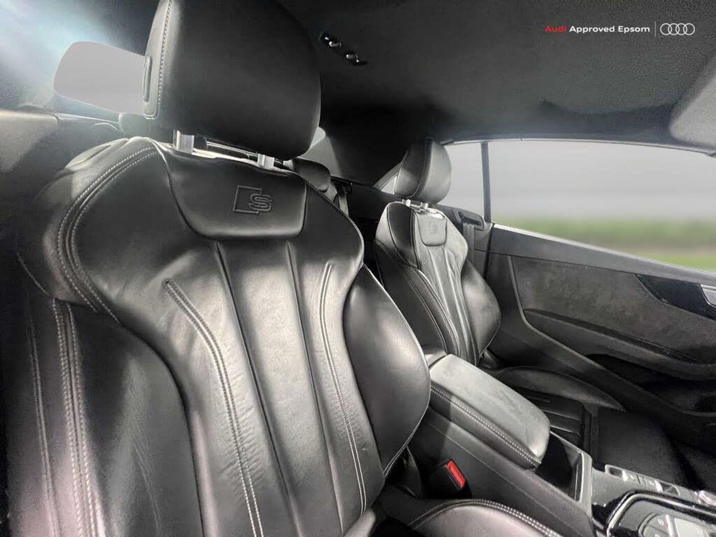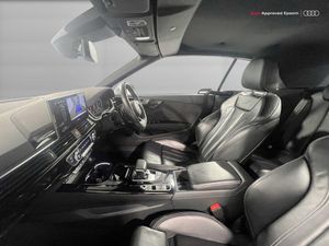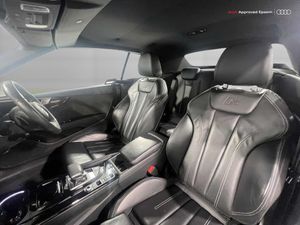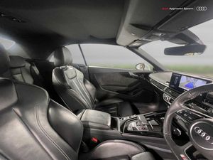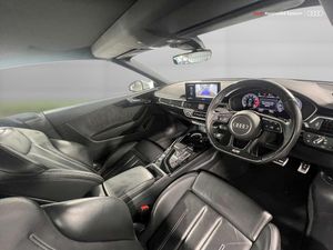 Audi connect safety and service (e-call), Audi drive select (Auto, Comfort, Dynamic, Efficiency and Individual), Audi parking system plus with front and rear sensors, Audi phone box with wireless charging, Audi smartphone interface, Audi virtual cockpit - 12.3" full colour digital instrument cluster,vehicle/engine speed,Radio/media information+Driver assistance systems, Automatic start-stop system with coasting functionality and efficiency programme, Bluetooth interface, Electric boot lid release, Electro-mechanical power steering, Email, calendar and text messages displayed via MMI, MMI nav+ with MMI touch - 10.1" high resolution MMI display, touch sensitive, 3D map, route/country info, dynamic route guide, personal route assist, Rear view camera, Service interval indicator, Voice control system, Sports suspension lowered by 23mm, 8 passive loudspeakers, CD player, DAB digital radio reception, Two additional USB ports for rear passenger in rear centre console, Two SDXC card slots, Auto dimming rear view mirror, Body colour bumpers, Body colour door handles, Body colour front spoiler lip, Body colour side sill trim, Body coloured door mirrors, Electric adjustable heated door mirrors, Electric folding door mirrors, Electric front windows, Front fog lights, Honeycomb structure radiator grille in grained matt black, Matrix LED headlights with Audi laser light, dynamic light sequencing and dynamic indicator, Matt aluminium silver tailpipe trim, Rain and light sensors, Rear diffuser in matt titanium black with trim strip in matt aluminium silver, Side air inlets in grained matt black with matt aluminium silver inlay, Sport front and rear bumpers with side skirts, Towbar preparation, Windscreen with acoustic glazing, 4 way electric lumbar support for driver and front passenger, 50/50 split folding 2 seater rear bench seat, Adjustable steering column, Black cloth headlining, Black perforated leather gearknob, Contrast stitching on seats, steering wheel and gear lever gaiter, Deluxe 3 zone electronic climate control, Electrically adjustable front seats, Fine Nappa leather upholstery with front sports seats S embossed logo, Front centre armrest, Front head restraints, Front/rear floor mats, Heated front seats, Illuminated door sill trim with S logo, ISOFIX child seat mounting and top tether, Luggage compartment mat, Rear headrests, Stainless steel pedals, Sunvisors with vanity mirrors, LED interior light pack - A5/RS5, 6 airbags - Driver, front passenger, curtain and side airbags, Electromechanical parking brake, Electronic Stabilisation Control (ESC) including ABS, ASR and EDL, Front passenger airbag deactivation, Height adjustable front seatbelts, Hill hold assist, Multi collision brake assist, Pop-up bonnet for pedestrian protection, Seatbelt monitoring, Tyre pressure warning, Variable restraint system, Warning triangle and first aid kit, Anti theft alarm system, Anti theft wheel bolts, Immobiliser, Keyless Go, Remote central locking, Piano black finish inlay, 20" 5 twin spoke polygon design alloy wheels in gloss anthracite black and gloss turned finish, Tool kit, Tyre repair kit
