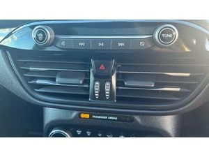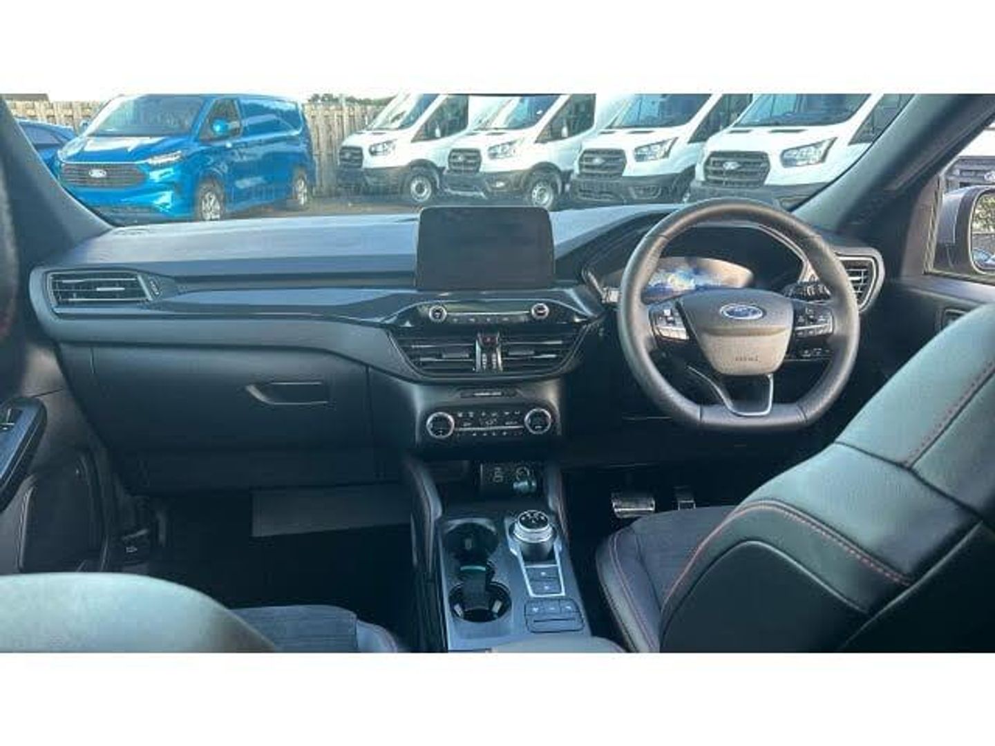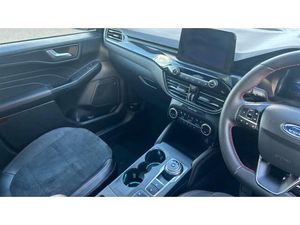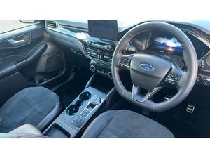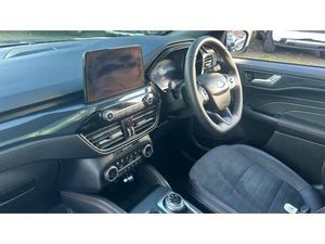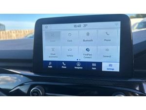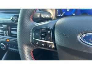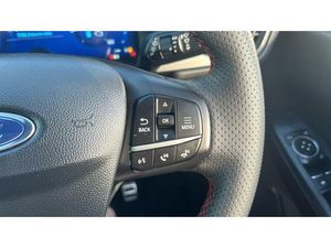 ST Line front and rear floor mats, Power front/rear windows with global close, Quickclear heated windscreen, Rear wiper, Rear privacy glass, Rain sensing wipers, Red brake calipers, Post collision braking, Electronic stability control (ESC) and ABS, Sports suspension, Twist beam rear suspension, Front and rear parking sensors, Power assist steering, Lane keeping aid with lane departure warning, Selectable drive modes, Pre collision assist with autonomous emergency braking, Rear view camera, Ford easy fuel, Geo awareness, Ford SYNC 3 with 8" TFT LCD touchscreen, App Link, andriod auto/apple carPlay, emergency assistance and navigation with Ford pass connect, 12.3" digital colour instrument cluster, Service interval indicator, Day/night rear view mirror, Power folding, electrically adjustable and heated door mirrors with puddle lights, 3-Pin Home charge cable (230V/16A Domestic socket), 3.7 kW monophase on board charger