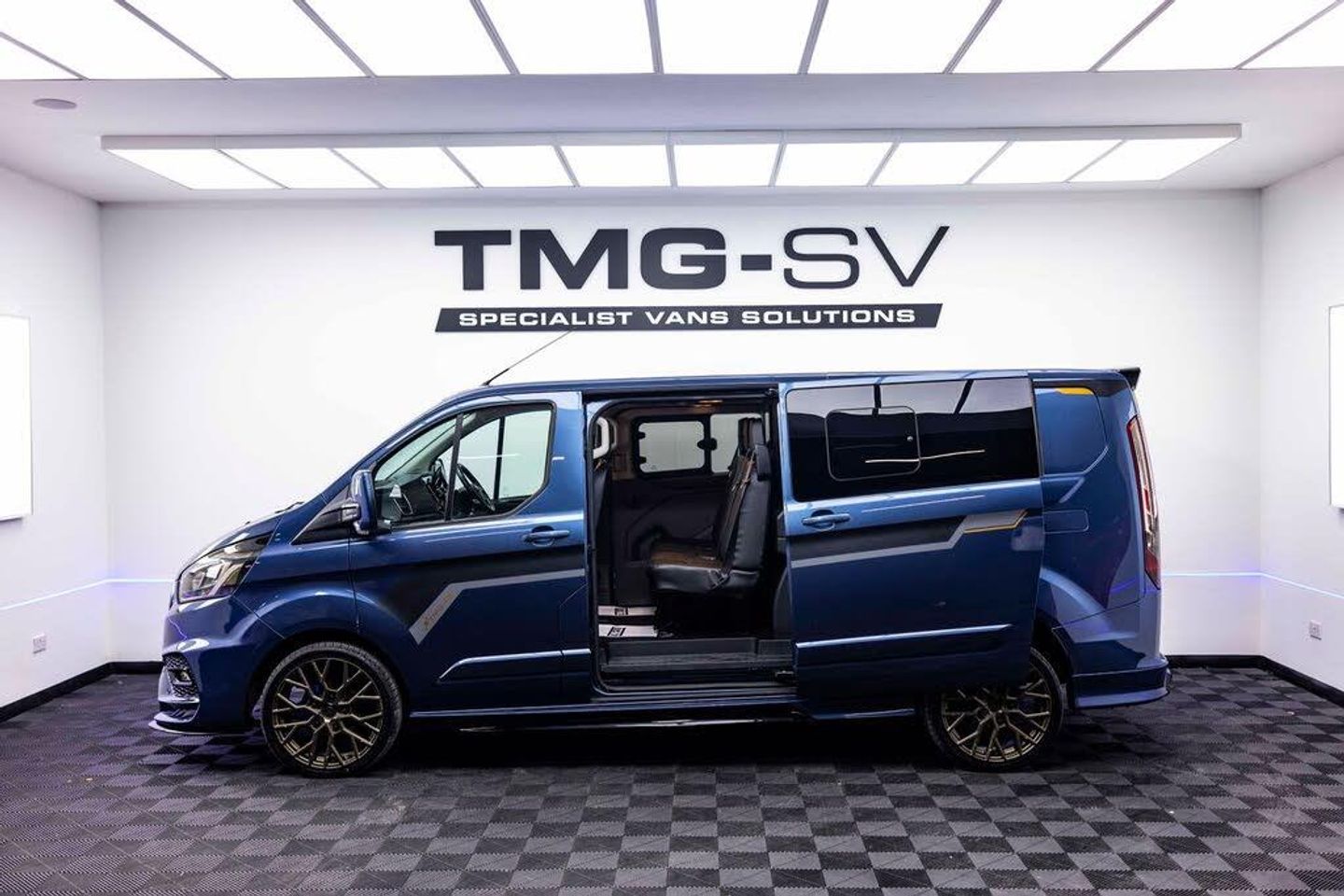 TMG THE CUSTOM FORD SPECIALISTS!! EURO 6! AIRCON! LIMITED SPEC! PLUS VAT!! PLEASE NOTE THE PRICE DISPLAYED IS PLUS VAT! THE ALL NEW TMG-RS WIDETRACK! BIG SPEC CUSTOM CAPTIN SEATS+TAILGATE+REV CAM+NAV+POWER INVERTOR! WET BELT TO BE CHANGED UPON SALE! STUNNING!! We are delighted to be offering our latest Custom FORD TRANSIT CUSTOM fitted with our TMG Style pack. Ford Transit Custom 2.0 300 EcoBlue Limited Crew Van Double Cab 5dr Diesel Manual L1 H1 DCIV TMG RS SPORT, finished in CHROME BLUE, with some fantastic extras. This van has covered 81800 miles with full service history. It is superb throughout. It has had 0 keeper former owner. This van was first registered 15/02/2022. Top spec van with it being the limited 3 seats, A/C, auto lights, heated seats, multifunction steering wheel, 6 speed box, front and rear reverse sensors, cruise control, Bluetooth phone prep, front fog lights, heated screen, electric folding mirrors, plus much more. This van includes our TMG pack which includes, TMG Shadow pack, TMG aero pack, Bespoke TMG front seat upholstery, forged wheel plus tyre package. All grills in high gloss, spoiler, front lip, front and rear tinted lights, TMG branding pack plus much more. We DO NOT buy vans that have been modified a number of years ago and brand them up as our own, all vans are newly built. For full specs please contact us. Please visit our website for over 40 HQ photos in our very well lit studio including close ups of the panels. Walk around videos on request. Please visit our instagram highlights for a more in depth look at what we do! Instagram @TMGSPECIALISTVANS Facebook @TMGSPECIALISTVANS Over 200 5 star reviews on trustpilot. For the fastest response please whats app us! 6 Month warranty included FOC including RAC 12M breakdown cover we know what we sell and how we prep our vehicles. 12 Month advisory free MOT and new major service from point of sale included. Finance subject to status all arranged in house. Every vehicle we sell undergoes a 3 day detail including machine polish seats out and shampooed etc *AT TMG WE BUILD ALL OUR OWN VANS ALL IN HOUSE FROM THE GROUND UP, FROM OUR PAINTBOOTH OVEN TO UPHOLSTERY TO MECHANICAL WORK ALL WORKS ARE DONE IN HOUSE UNDER ONE ROOF IN OUR 10,000 SQ FOOT PREMISES TO MAINTAIN THE PASSION THAT FLOWS THROUGHOUT OUR EXCELLENT TRUSTPILOT RATING!*