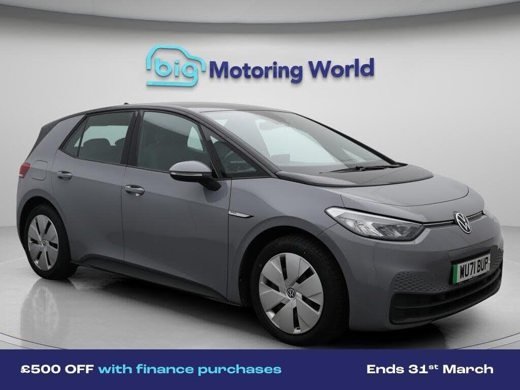 £500 towards your finance depo-Our Volkswagen ID.3 is finished in Grey. Specification includes a range of fantastic features including £500 towards your finance deposit, 18'' alloy wheels, Apple CarPlay, Adaptive Cruise Control, Lane Assist, Android Auto, Satellite Navigation, TV, Heated Seats, Heated Steering Wheel Specification information is supplied by CAPHPI and may vary to the actual car. This data does not form any part of a buying contact. Please check specification prior to purchase in-store. The MOT is valid until October 2026, visit bigmotoringworld.co.uk for more photos, a 360 tour, service history and a free HPI report.Were BIG on peace of mind and this Grey Volkswagen ID.3 has completed our comprehensive 200 point inspection and passed all checks. Its ready for you to drive away with immediate collection in-store. We include a 90-day warranty as standard plus an option to extend for up to 3 years.Reserve this car exclusively for you, safely and securely at bigmotoringworld.co.uk, with a fully refundable £99 deposit. Test drive before you buy, with no commitment, no hassle and a completely haggle free experience. Still searching and want to see thousands more cars? We are BIG on choice with over 8000 cars to choose from.Visit our award winning web site bigmotoringworld.co.uk.Were Big Motoring World and were BIG on what matters to you.