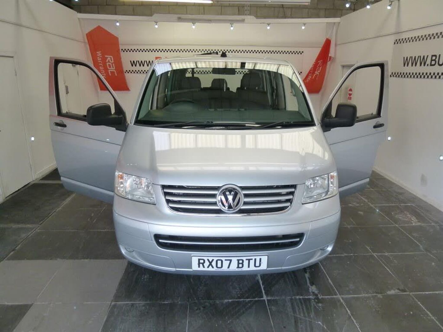 FINANCE ARRANGED - LOW MILEAGE LWB TRANSPORTER SHUTTLE OWNED BY THE MINISTRY OF DEFENCE FROM NEW - AUTOMATIC - 8 SEATS + REAR WHEELCHAIR RAMP ( CAN BE REMOVED ) - ALLOY WHEELS - NAVIGATION - CRUISE CONTROL - FRONT CAPTAIN SEATS - REAR BLINDS - REAR HEATER - VERY RARE VEHICLE WITH THIS MILEAGE - DRIVES SUPERBLY, Long wheel-base, 8 seats, Silver, 2 owners, Adjustable Steering Column/Wheel, Air Bag Driver, Air Bag Passenger, Air-Conditioning, Anti-Lock Brakes, Armrest, Body Coloured Bumpers, Central Door Locking, Child Locks, Cup Holder, Deadlocks, Doors - Sliding (Left & Right), Electric Windows (Front), Electronic Brake Force Distribution, Grab Handles, Head Restraints, Heated Rear Screen, Immobiliser, In Car Entertainment (Radio/CD), Mirrors External, Power Socket, Power-Assisted Steering, Seat - ISOFIX Anchorage Point, Seat Belt Pre-Tensioners, Seat Height Adjustment, Steel Wheels, Sun Visor, Tinted Glass, Towing Equipment (Preparation), Traction Control System, Upholstery Cloth, Windscreen Wiper,