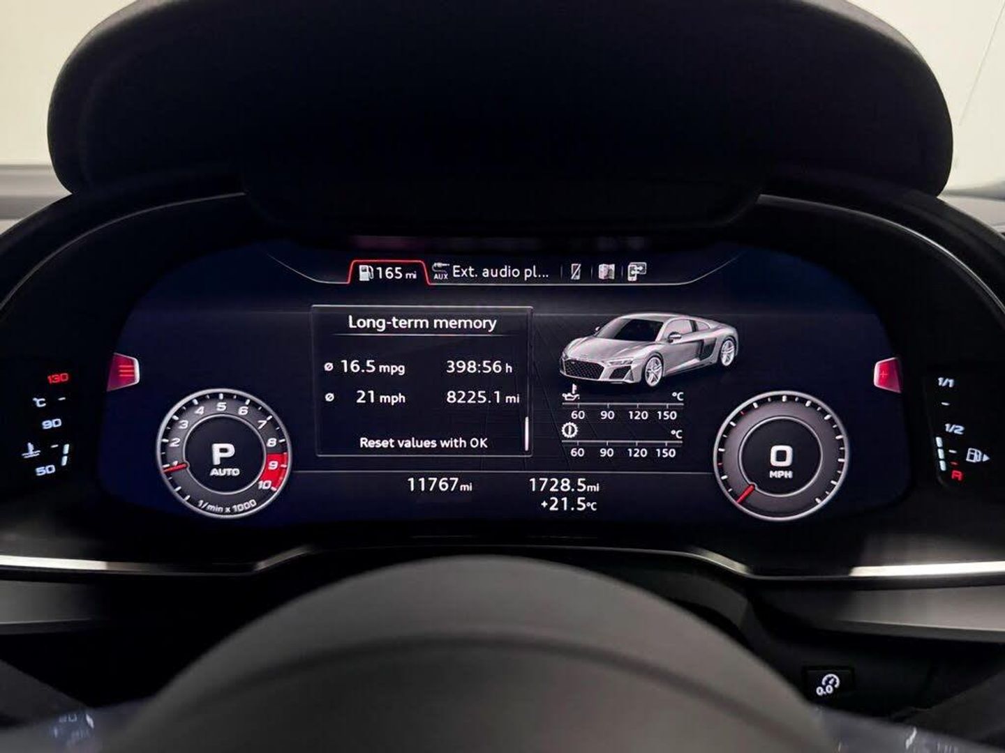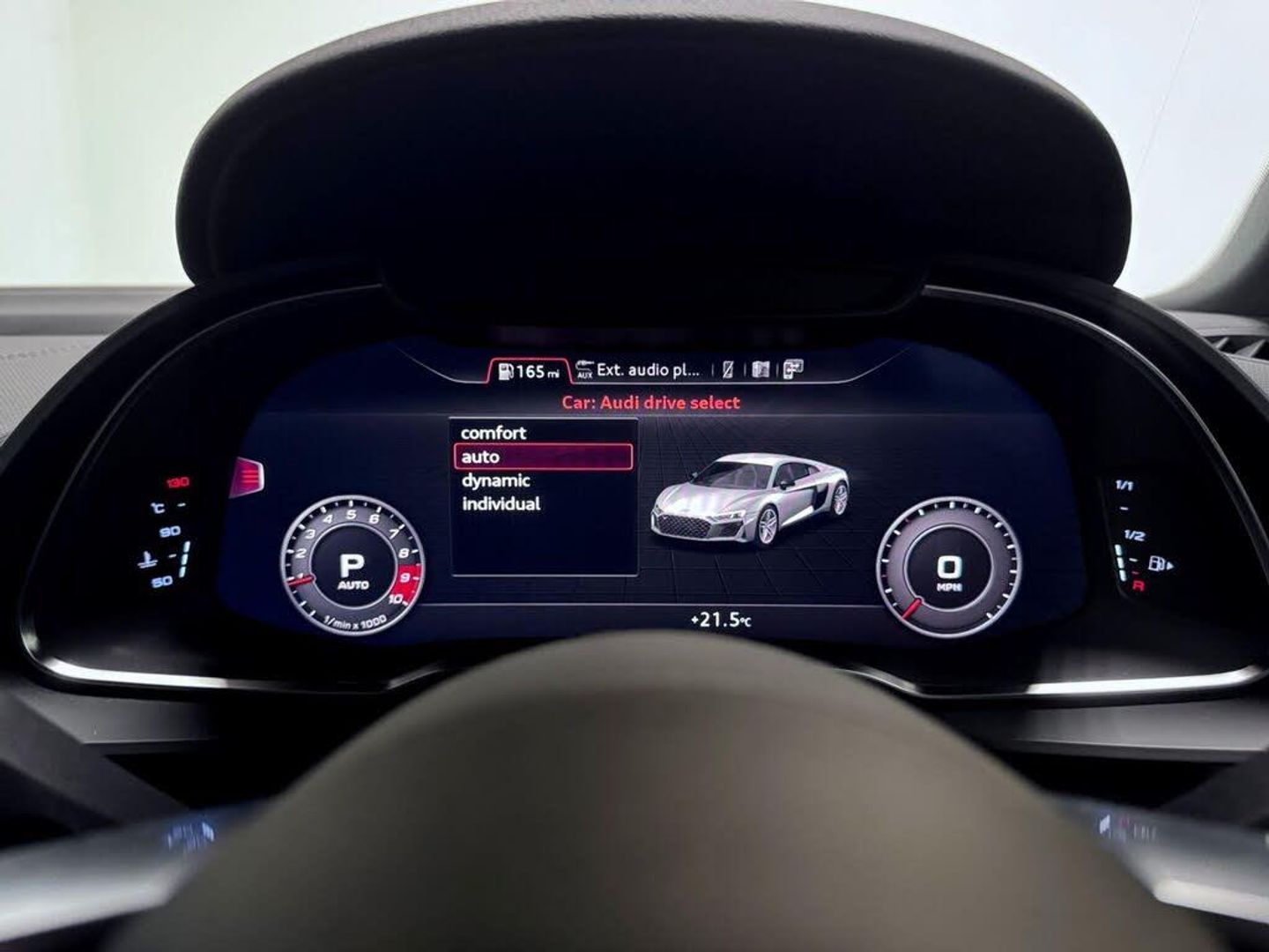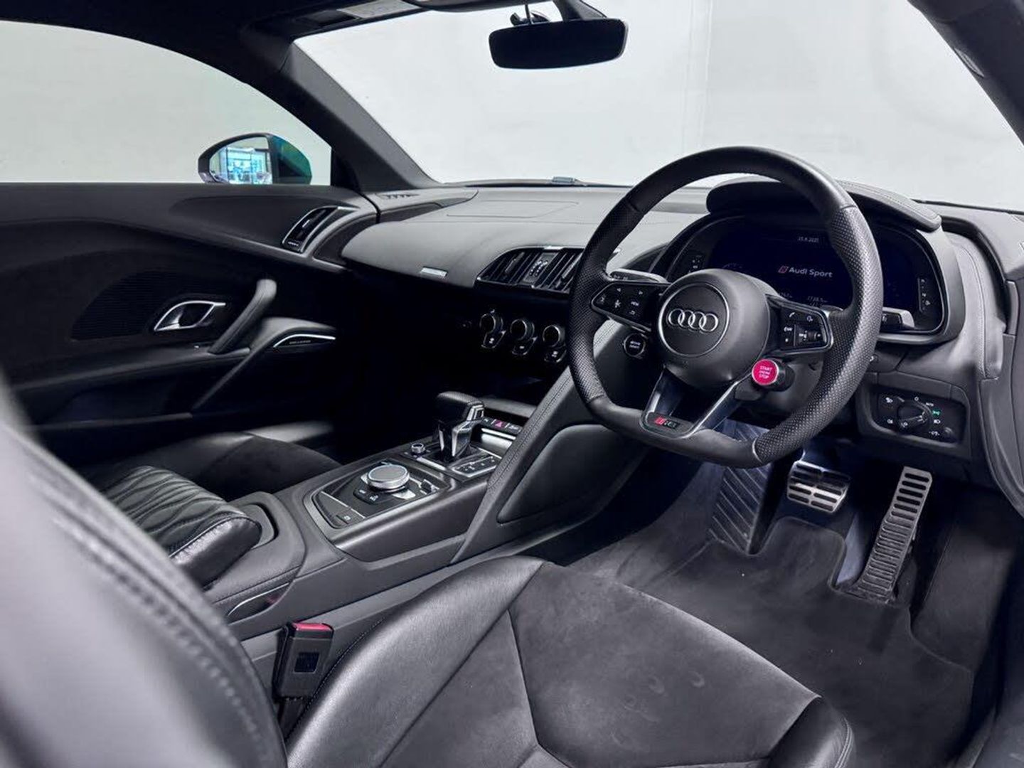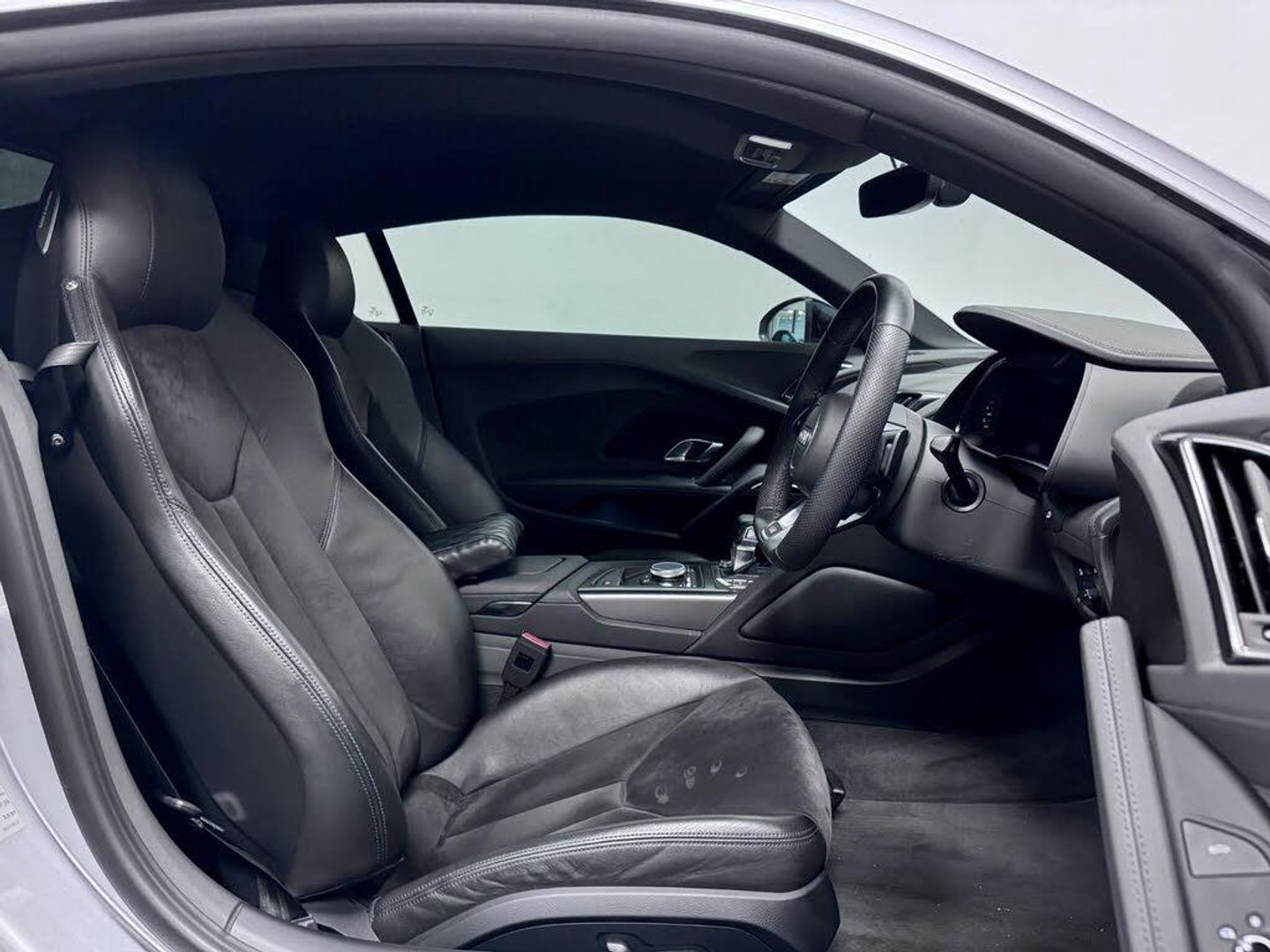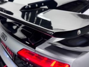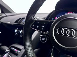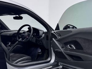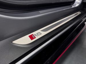 19in Alloy Wheels - 5-Spoke Design Cast Aluminium in Gloss Black Look, ABS - Anti-Lock Braking System, AMI - Audi Music Interface, ASF - Audi Space Frame, Advanced Key with SafeLock, Airbags - Driver, Airbags - Front Passenger, Airbags - Front Side with Curtain, Anti Theft Alarm and Immobiliser, Audi Beam, Audi Connect Infotainment Services (36 Month Subscription From New), Audi Drive Select, Audi Smartphone Interface, Audi Sound System, Audi Virtual Cockpit, Black Cloth Headlining, Brake Calipers - Gloss Black, Chrome-Plated Oval Tailpipe Trims, Cruise Control, DAB Digital Radio, Deluxe Automatic Air Conditioning, Door Sill Trims in Plastic with Aluminium Inlays and R8 Logo, Electric Windows - Front, Extendable Rear Spoiler, Extended Inlays in Titanium Finish - Glossy Anthracite - for Air Vent Surround, Exterior Mirror Housings in Body Colour, Exterior Mirrors Electrically Adjustable Heated Folding and Automatically Dimming with Integrated LED Indicator, First Aid Kit and Warning Triangle, Front Passenger Airbag Deactivation Switch, Gloss Black Radiator Grille with R8 Emblem, Gloss Black Styling Pack, Heated Front Seats, ISOFIX Child Seat Mounting for Front Passenger with Airbag Deactivation, Inlays - Anthracite Anodised Paint Finish, Interior Light Package, LED Headlights, LED Rear Lights and Dynamic Rear Indicators, Light and Rain Sensor, Locking Wheel Bolts, MMI Navigation Plus with MMI Touch, Parking System Plus, Pedals in Stainless Steel, Power Steering, R8 Flat Bottomed 3-Spoke Sport Leather Steering Wheel - Multifunctional Plus with 2 Operating Satellites, Rear View Mirror - Automatically Dimming - Frameless with Light-Rain Sensor, Reversing Camera, S Tronic Transmission with Hill Hold Assist, Seat Belt Monitoring, Sideblades - Body Colour, Sport Suspension, Start-Stop System with Recuperation, Tool Kit, Tracking System Preparation, Tyre Pressure Warning Light, Tyre Repair Kit, Bang and Olufsen Sound System, Alcantara-Leather - R8 Sport Seats - Black, Floret Silver