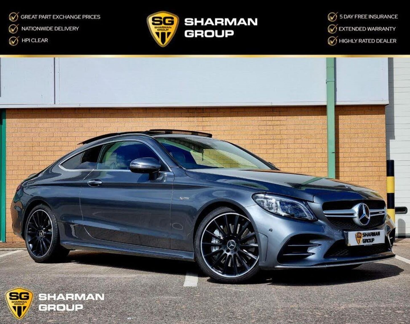 Stunning Mercedes-Benz C43 Premium Plus. Finished A Metallic Grey With Black Seats And Comes With 2 Original Keys And An Amazing Spec Inc: Panoramic Glass Roof, AMG Performance Exhaust, Virtual Cockpit, 360 Camera, Burmester Sound System, 19in Alloy Wheels AMG Multi-Spoke Design in Black, Ambient Lighting, Privacy Glass, Artico Leather-Dinamica Microfibre Black with Red Contrast Stitching, Reverse Camera, AMG Ride Control Sports Suspension, Interior Lighting Package, Mercedes Connect Me, Mirror Package, Red Brake Callipers With Mercedes Benz Lettering, ATTENTION Assist, Active Parking Assist Including PARKTRONIC, Anti-Theft Protection Package, Audio 20 CD, Bluetooth, Central Locking, Automatic Locking And Crash Sensor, Collision Prevention Assist Plus, DAB Digital Radio Tuner, Electronic Stability Programme, Electric Parking Brake, Sport Exhaust System, Front Seats Electrical Height And Back Adjustment, Full LED Tail Lights, LED High Performance, LED Daytime Running Lights, Heated Front Seats, Heated Windscreen Washer System, Rain Sensing Windscreen Wipers, Remote Boot Release, SPEEDTRONIC Cruise Control, Red Seat Belts, Seat Comfort Package, AMG Sport Seats, Multifunction Sports In Black Nappa Leather With Flattened Bottom Section, Stowage Package, Automatic Climate Control, Tinted Glass All Round, Top Surround Side Windows In Polished Aluminium, Gloss Black With Aluminium Door Trims, Two USB Ports And SD Card Slot In Centre Console, Tyre Pressure Monitoring System. Every Effort Has Been Made To Ensure The Accuracy Of The Above Information, But Errors May Occur, Please Check With The Sales Executive Upon Enquiry. Part Exchanges Considered. All Major Credit & Debit Cards Accepted. We Offer Various Dealer Facilities Including Servicing, MOTS, Valeting, Detailing, Protective Coatings, Comprehensive Warranties, 5 Days FREE Insurance, HPI Clear And A Full After-Sales Service. Open 7 Days A Week.-PANROOF+360 CAM+AMG EXHAUST++-Call us now on 0161 319 1253 / 07760 668 236 for more information. www.sharmangroup.co.uk
