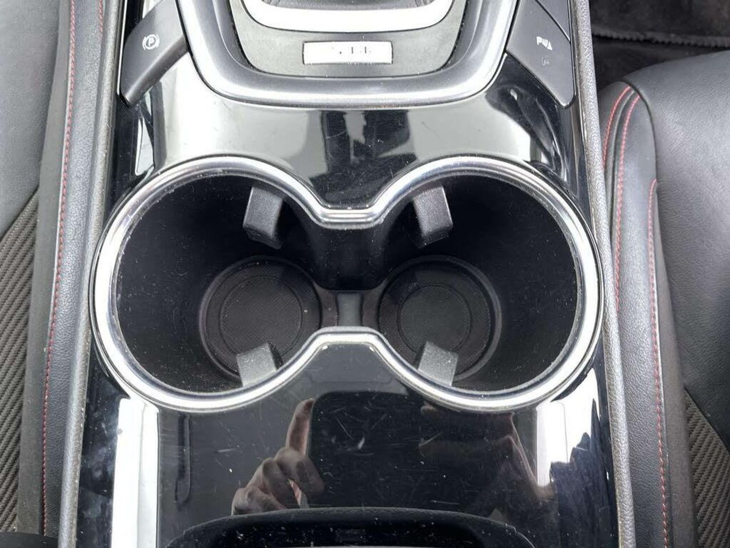 - PARTIAL LEATHER IN EBONY WITH RED STITCHING