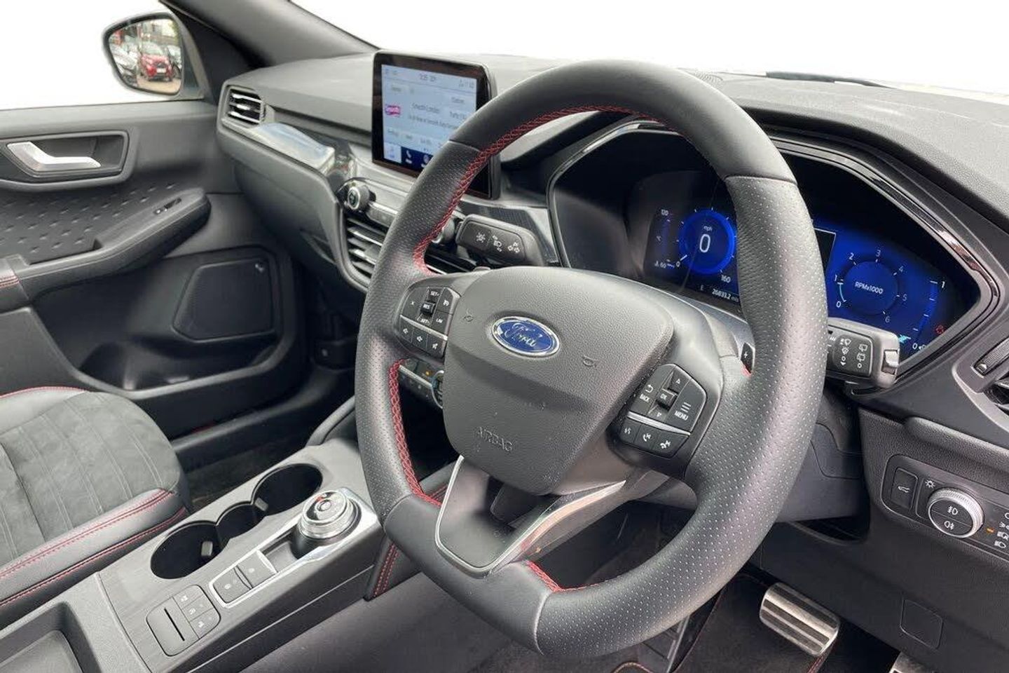 10-Way Power Adjustable Drivers Seat, 12V Power Point in Floor Console, 12v Power Point in Cargo Area, 12v Socket - Voltage Regulator, 19in Alloy Wheels - 5x2 Spoke - High Gloss - Machined, 2nd Row Sliding Seats with 60-40 Split, 8-Way Manual Passenger Seat including Lumbar Support and Height Adjust, Airbag - Driver and Front Passenger Side, Airbag - Front Passenger Deactivation Switch, Airbags - Driver and Front Passenger, Airbags - Front and Rear Side Curtain, Alloy Pedals, Aluminium - Finish Front Scuff Plates with ST-Line Script, Ambient Lighting, Auto Dimming Rear View Mirror, Auto Wipers, Automatic Door Relocking, Automatic Headlights with Auto High-Low Beam, B and O Premium Audio System with Large Instrument Cluster, Black Roof Rails, Centre Console with Electronic Parking Brake, Cruise Control with Adjustable Speed Limiter, Dark Headliner and Pillars, Driver and Passengers Sun Visor with Illumination, Dual Exhaust Tailpipes with Unique Brushed Stainless Steel Finish, Dual Zone Electronic Automatic Temperature Control - DEATC, EPAS - Electric Power Assisted Steering, ESC - Electronic Stability Programme and ABS - Anti Lock Braking System, Engine Immobiliser - SecuriLock, Exterior Door Handles - Body Coloured, Flat Bottom Steering Wheel in Sensico with Red Stitching, Floor Mats - Front and Rear - ST-Line, Ford Easy Fuel System, Ford Key Free System with Ford Power Start Button - Keyless Start, FordPass Connect, Front LED Fog Lights with Cornering Function, Front Seats - 2-Way Manual Height Adjust Passive Head Restraints, Front Seats - Drivers and Passengers Seatback Map Pockets, Front Windows - Laminated Glass, Front and Rear Bumper - Sporty Body Colour with Rear Ebony High-Gloss Insert, Front and Rear Parking Sensors, Full Digital 12.3in Instrument Cluster, Full LED Headlamps, Gearshift - Automatic - Electronic Rotary Gearshift Dial, Glovebox Lights, Handsfree Power Tailgate, Headlights - Automatic Follow Me Home Lighting, Headlights - Unique Bending, Heated Driver and Passenger Seats, Heated Rear Seats, Heated and Power Folding Door Mirrors with Puddle Lights, High-Mounted Brake Light, Intelligent Speed Assist, Kuga Badge, LED Daytime Running Lights, Lane Keeping Aid with Lane Departure Warning, Large Rear Spoiler, Load Compartment - Lights, Load Compartment - Tie Down Hooks, Load Compartment Carpet, Locking Wheel Nuts, Lower Bodyside Moulding - Body Colour, Lower Door Frame Beltline - Black, Manual Childproof Locks on Rear Doors, Mini Overhead Console with Sunglasses Holder Bin, Mobile Phone Wireless Charging Pad, MyKey Gen II, Post Collision Braking, Power Door Deadlocks - Double Locking, Power Door Locks, Power Front and Rear Windows with Shot up and Down - One Global Closing, Power Opening Panoramic Roof, Pre-Collision Assist with Autonomous Emergency Braking - Camera Detection, Privacy Glass, Quickclear Heated Windscreen, Rear Lights - LED, Rear Seat Centre Head Restraint, Rear Seats - 2-Way Head Restraint Up-Down, Rear Seats - Folding Centre Armrest with Integrated Cup Holder, Rear Seats - Sliding Seat Adjust Tracks - Fore-Aft, Rear View Camera, Red Brake Calipers, Remote Power Central Double Locking Doors, Remote Tailgate Release, Removable Package Tray, Rocker Panel Mouldings - Body Colour - ST-Line Design, ST-Line Badge on Left and Right Side Wings, ST-Line Bodystyling Kit, ST-Line Front and Rear Bumper Moulding - Body Colour, Satellite Navigation - Navigation Center, Seat Belt - Drivers - Front Passenger and Rear Seat Belt Reminder Alert, Seat Belts - Front 3-Point Seatbelts with Load Limiter, Seat Belts - Front Height Adjustable, Seat Belts - Rear Retractable Rear Belt - 3-Point All Positions, Seats - ISOFIX Mounting Provision for Child Seats - Outer Seats Only, Selectable Drive Modes, Sports Seats, Standard Duty Suspension, Steering Column - Locking Electric, Steering Column - Rake and Reach Adjustment, Steering Wheel Mounted Paddle Shift, Tailgate Badge - AWD, Tailgate Handle - Body Colour, Tether Anchorage - Two Rear Seat Top Tether Anchorage Restraints, Thatcham Category 1 Perimeter and Volume Sensing Alarm, Tow Hooks - Front and Rear, Trip Computer, Twin Exhausts, Tyre Inflation Kit, Tyre Pressure Monitoring System, Upper Door Frame Beltline - Black, Wiper - Intermittent Rear Window Wiper, Wrong Way Alert