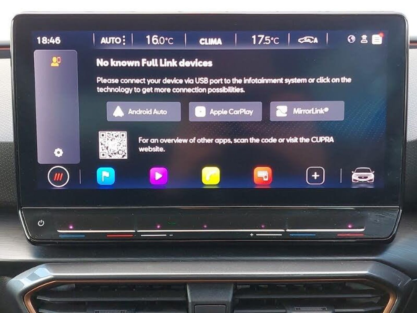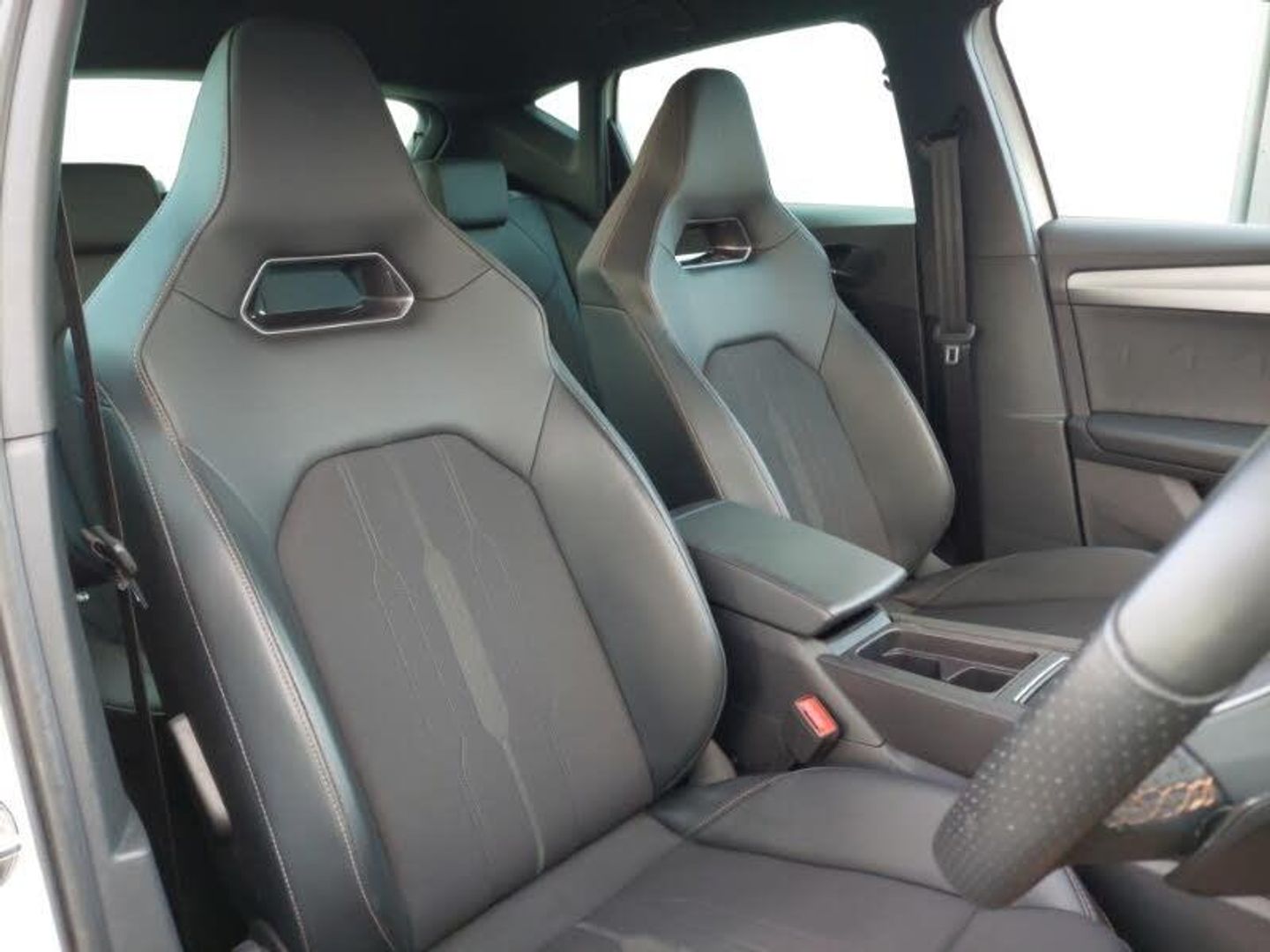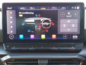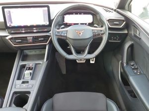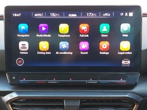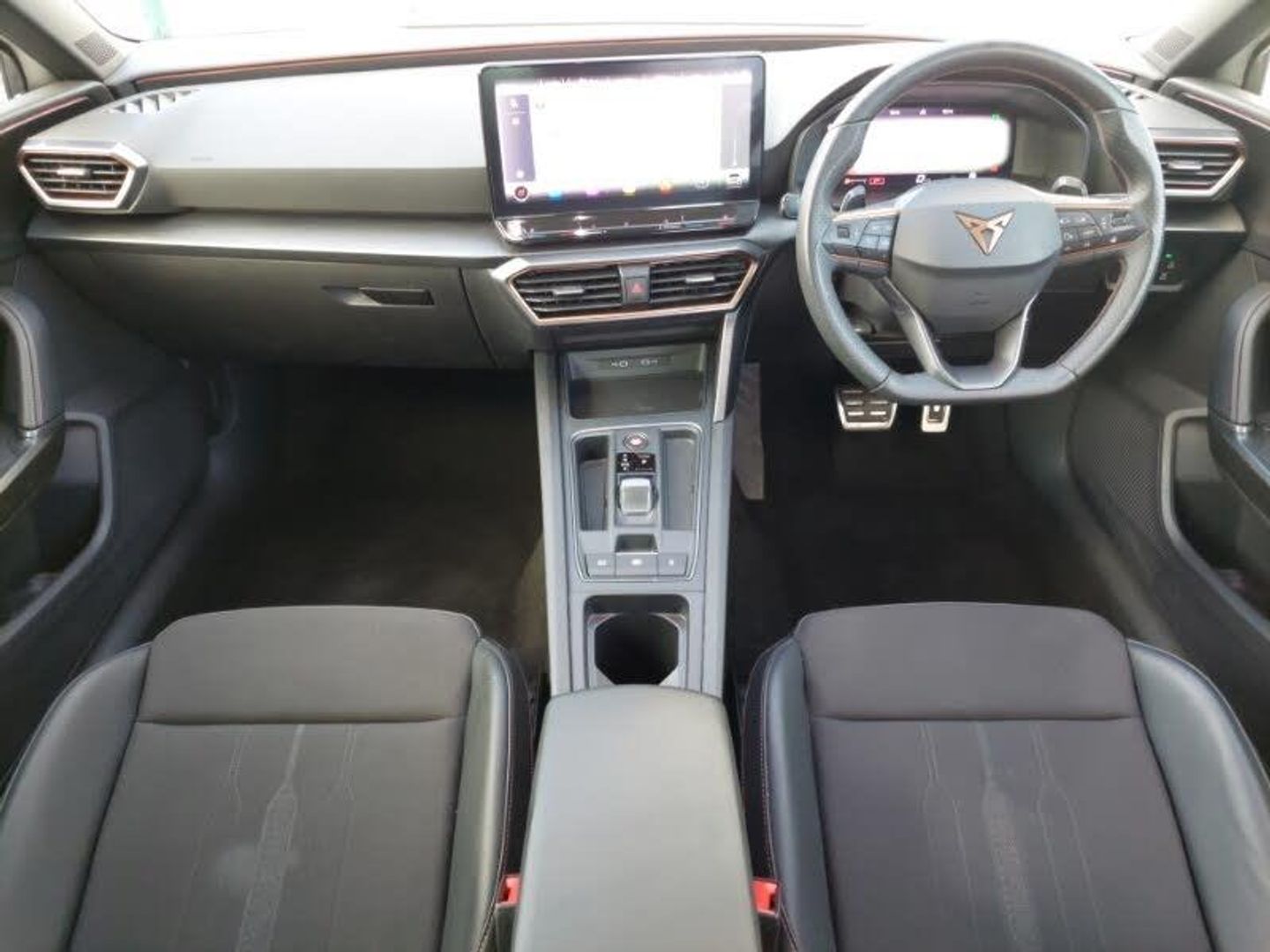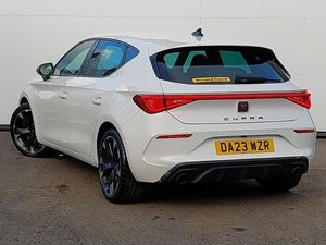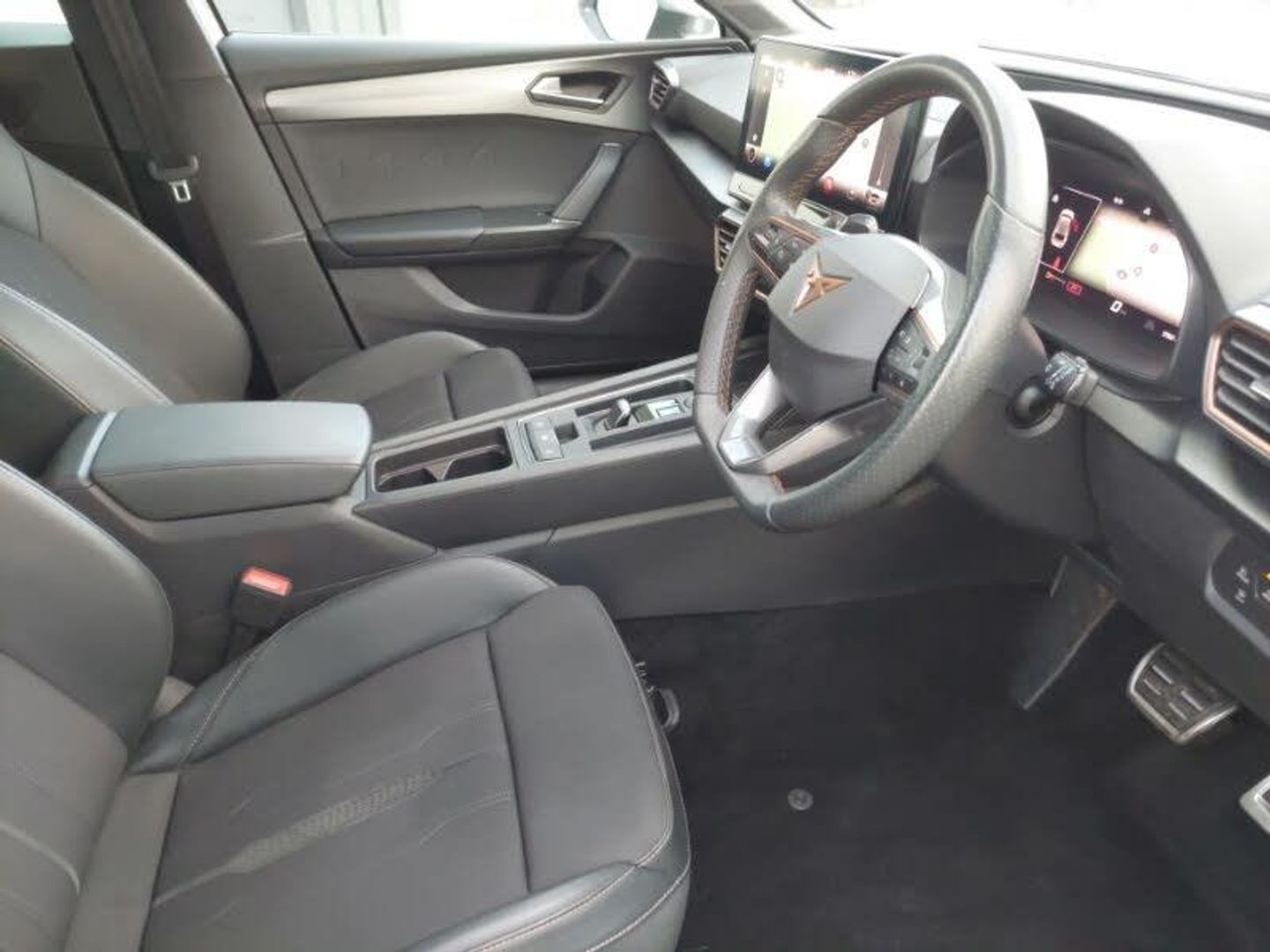 Full link smartphone integration with Mirror Link, wireless Apple CarPlay and wired Google Android Auto, Media system plus with navigation pack - Leon Cupra, Park assist (inc front/rear parking sensors), Rear view camera, 18" Machined sport black and silver alloy wheels with 92Y tyres, Lane assist, Start/stop system with regenerative braking, Service interval indicator, RPM, trip computer, outside temp gauge, instrument light brightness, low fuel warning light, lights on reminder, gearshift indicator, Lockable tailgate, Digital cockpit, CUPRA drive profile selection with 4 modes (Comfort/Cupra/Sport/Individual), throttle response and gearshift mode, Front assist with forward collision warning braking reaction to vehicles, pedestrians and cyclists, Four x USB Type C ports, Electro mechanical speed sensitive power steering, E-call, XDS electronic differential lock and dynamic traction support, Sports suspension, Auxiliary input socket, 7 speakers, Cupra sports bumpers, Body coloured bumpers, Body colour door handles, Auto dimming rear view mirror, Third brake light, Separate daytime running light with automatic headlight control and coming home feature, Rear wash/wipe, Rear side wing doors, Rear diffuser with twin exhaust pipe on each side, Rain sensing wipers, LED headlights with dynamic turn signals, tail lights, rear fog lights with rear coast to coast lighting, LED front fog lamps with cornering function, Electrically adjustable, heated and folding door mirrors, Electric front/rear windows, Dark tinted rear windows, PVC/Cloth upholstery with copper stitching + Cupra embossed logo on headrest, Luggage tie-down hooks, Jack and tool kit, ISOFIX points in outer rear seats with top tether anchorage points, Interior wraparound lighting, Illuminated interior front door sills, Height/reach adjust steering wheel, Front seats manual lumbar adjustment, Front centre armrest, Front and rear reading lights X 4, Folding boot cover, Dust/pollen filter, 12v power supply in centre console, 3 seat bench in 2nd row, 5 headrests, 60/40 split rear bench seat with armrest, Ambient lighting (glovebox, footwell, ambient lighting multicoloured), Black headlining, CUPRA Leather flat bottomed, heated, perforated steering and gearshift paddles, Cupra sports pedals, Driver/passenger manual seat height adjustment, Extended safety system - seat belt tensioner, window closure and hazard lights, Electronic parking brake, Driver and front passenger airbags with front passenger airbag de-activation, front side and curtain airbags, Cupra black brake calipers, Child proof door locks, Brake control system - ESC and brake booster, ABS, 3 point seatbelts on all rear seats, Tiredness recognition system, Seat belt reminder for front and rear seats, Rear disc brakes, Hill hold control, Locking wheel bolts, KESSY Advanced - Keyless start, keyless entry, Anti theft alarm system with interior monitoring in cab, backup horn and towing protection, Chrome and copper interior detailing, Space saver spare wheel