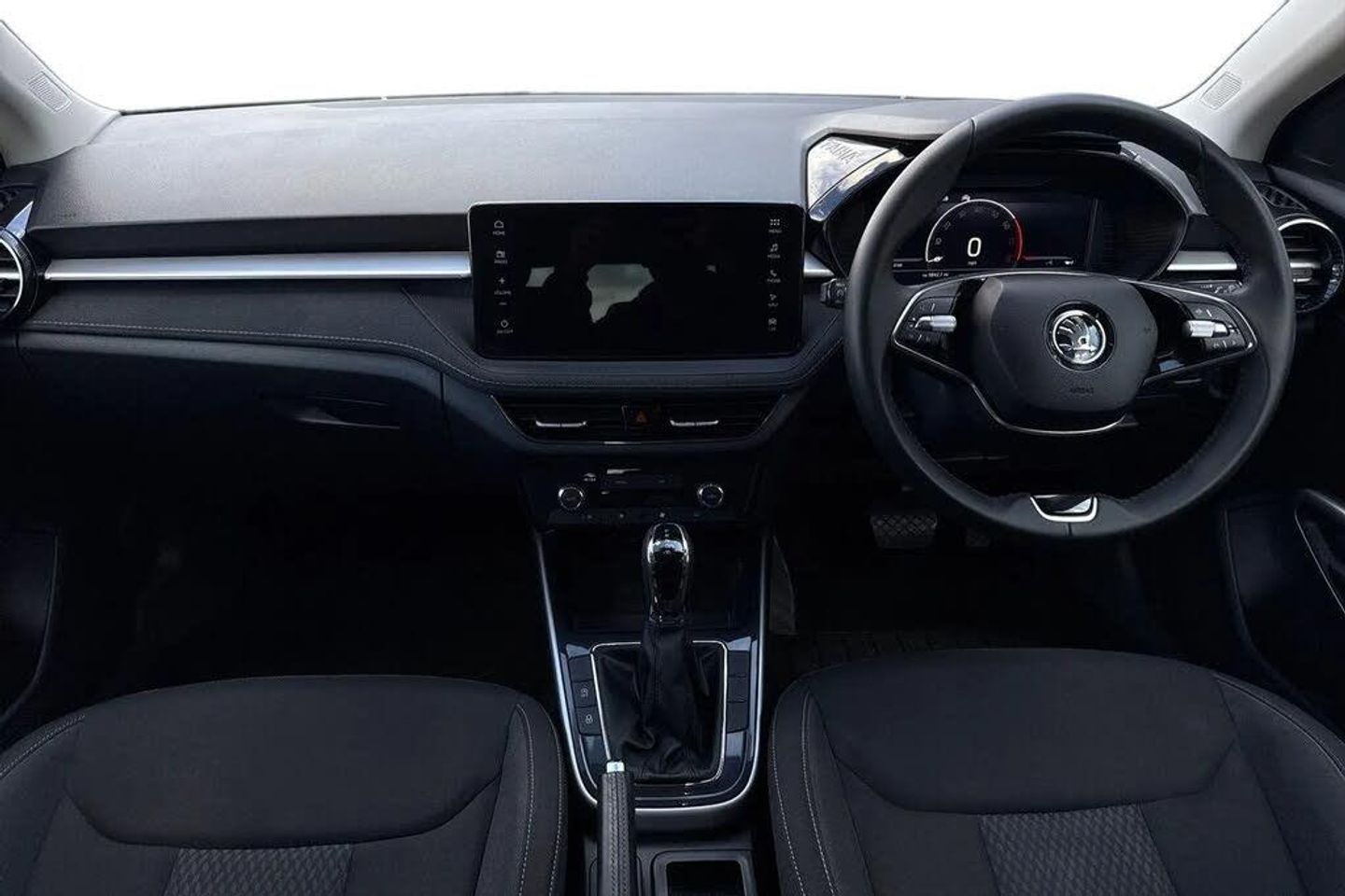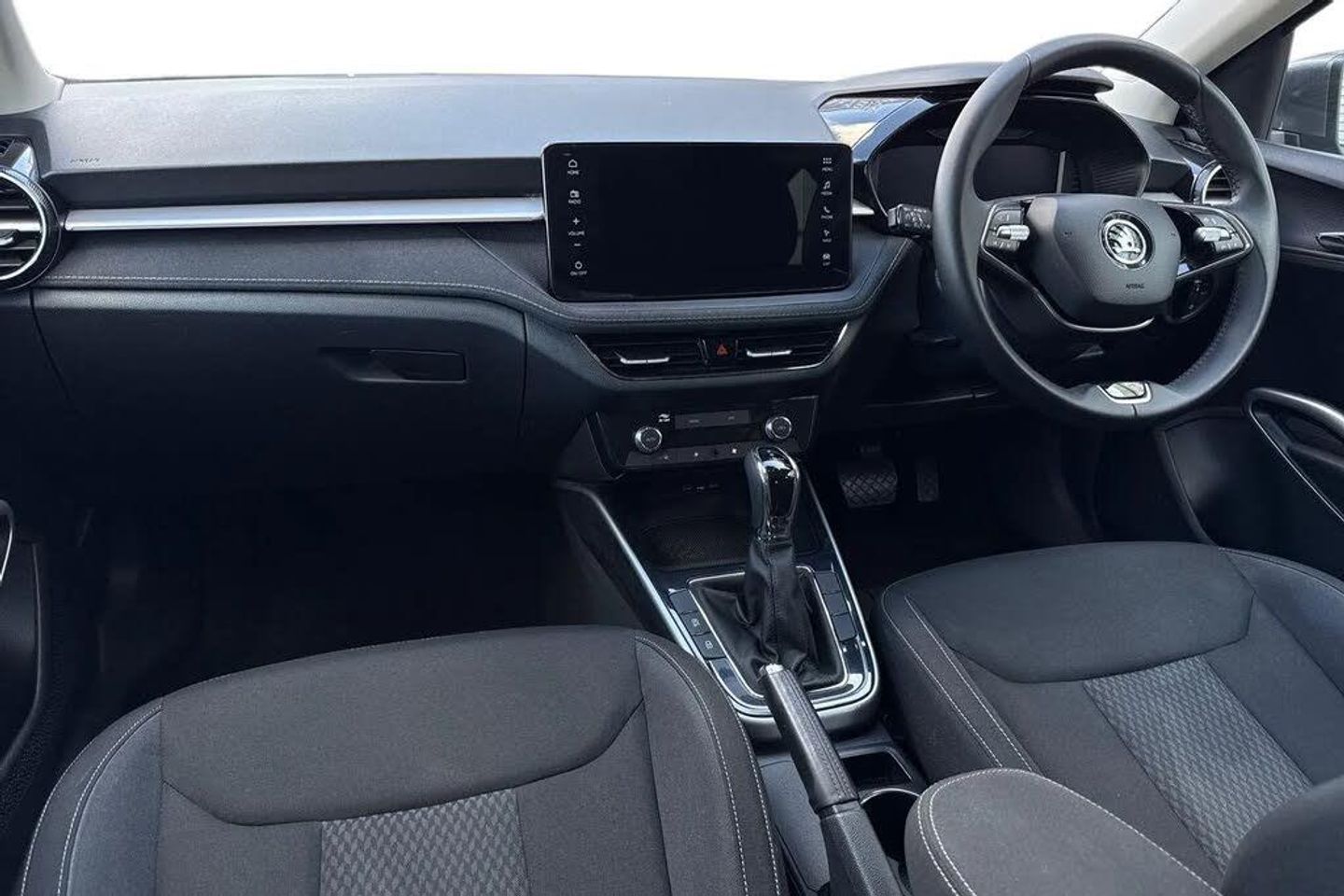 Front and rear electric windows,Front window wiper intermittent control,Privacy glass,Rear window wiper with washing nozzles,Body coloured bumpers,Chrome window surround,Ice scraper in fuel cap,Rear side wing doors,Roof mounted spoiler,SKODA tailgate lettering in chrome,Headlight range control - Automatic,LED daytime running lights with coming and leaving home feature,LED rear lights,Rear LED fog light,Third brake light,ESC including ABS,MSR,ASR,EDS,HBA and XDS,FRONT ASSIST (AEB City and AEB Inter Urban),Hill hold control,Advanced driver attention and drowsiness monitor,Electromechanical power steering,Traffic sign recognition,Auto dimming rear view mirror,Body colour door mirrors,Door mirror integrated indicators,3-point height adjustable front seats belts with pretensioner and force limiter,Automatic warning lights in case of crash,Driver and passengers airbag with switch off function,e-Call+,Front and rear seat belt warning,Front side airbags,Head airbags,One tone horn,Pedestrian protection,Three rear 3-points safety seat belts with pretensioner and force limiter including stop function for outer rear seat belts,Tyre pressure monitoring system,Textile floor mats,Dual zone air conditioning with climatronic electronic control,Pollen filter,Central console with removable cup holder and storage box,Chrome handbrake release button,Door sills with fabia badging,Fabric upholstery,Front centre armrest,Gearshift knob/handle in leather,Hand brake lever handle in leather,Height adjustable steering wheel,Metallic grey interior door handles,Storm grey headlining,Ticket holder,Umbrella in drivers door,2 reading lights in front and 2 reading lights in rear,Luggage compartment lighting,Sun visors with mirror and airbag label on passenger side,Bluetooth connection,6 Speakers (4 in front and 2 in rear),9.2" colour display skoda navigation system with voice control and web radio,Auxiliary socket for external MP3 player,DAB digital radio reception,Exterior temperature gauge,Service interval indicator,Virtual cockpit with 10.25" colour display,Wireless SmartLink for Apple CarPlay and Android Auto,Chrome edged air vents,Metallic grey central console cover,Metallic grey upper decorative trim,Satin black door and side trim panel in front,Textile microsuede grey lower decorative trim with art grey stitching,3 rear headrests,Backrest split and folding,Comfort seats,Height adjustable front headrests,Height adjustable front seats,ISOFIX and TopTether anchorage points to the outer rear seats,ISOFIX and TopTether on the front passenger seat,Manually adjustable lumbar support in front seats,Rear seat bench unsplit,Single front passenger seat,Anti-theft alarm system including immobiliser,interior monitoring,backup horn,and towing protection,Central locking with radio remote control,interior controls,SAFE function and 2 foldable keys,Anti-theft wheel bolts protection,Super-low rolling resistance tyres