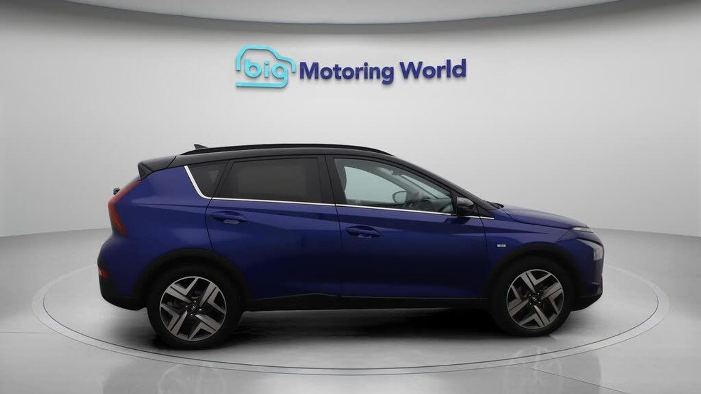 17'' Alloy Wheels,Apple CarPlay-Our Hyundai BAYON comes with optional extras worth £565. Specification includes a range of fantastic features including 17'' Alloy Wheels, Apple CarPlay, Premium Sound System, Lane Assist, Android Auto, Privacy Glass, Heated Seats, Rear View Camera, Heated Steering Wheel, Bluetooth Specification information is supplied by CAPHPI and may vary to the actual car. This data does not form any part of a buying contact. Please check specification prior to purchase in-store. The MOT is valid until July 2026, visit bigmotoringworld.co.uk for more photos, a 360 tour, service history and a free HPI report.Were BIG on peace of mind and this Blue Hyundai BAYON has completed our comprehensive 200 point inspection and passed all checks. Its ready for you to drive away with immediate collection in-store. We include a 90-day warranty as standard plus an option to extend for up to 3 years.Reserve this car exclusively for you, safely and securely at bigmotoringworld.co.uk, with a fully refundable £99 deposit. Test drive before you buy, with no commitment, no hassle and a completely haggle free experience. Still searching and want to see thousands more cars? We are BIG on choice with over 8000 cars to choose from.Visit our award winning web site bigmotoringworld.co.uk.Were Big Motoring World and were BIG on what matters to you.