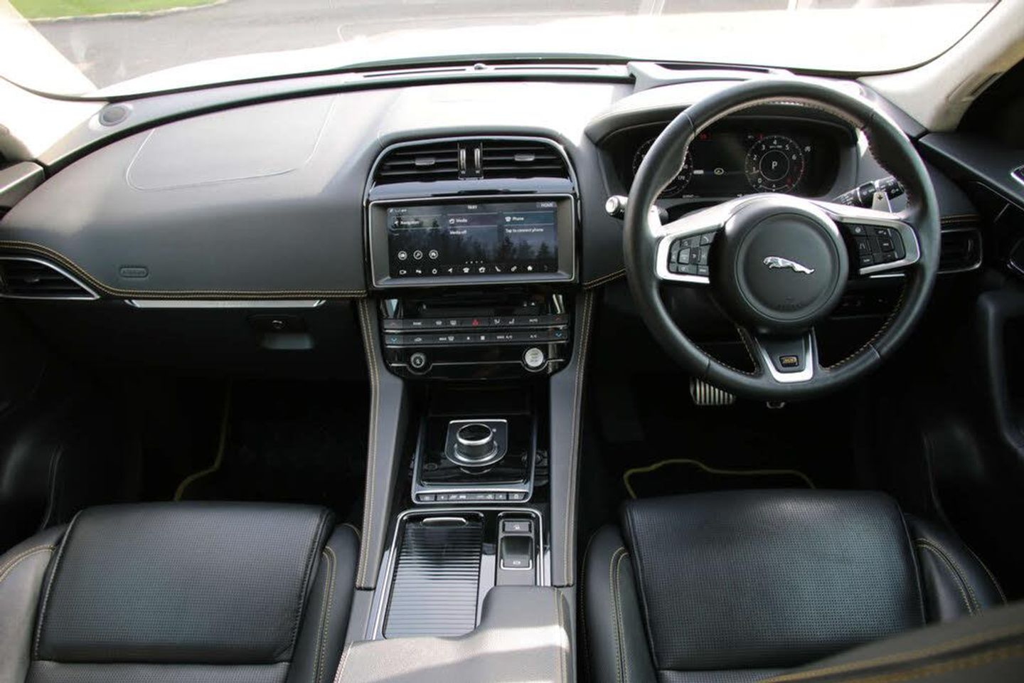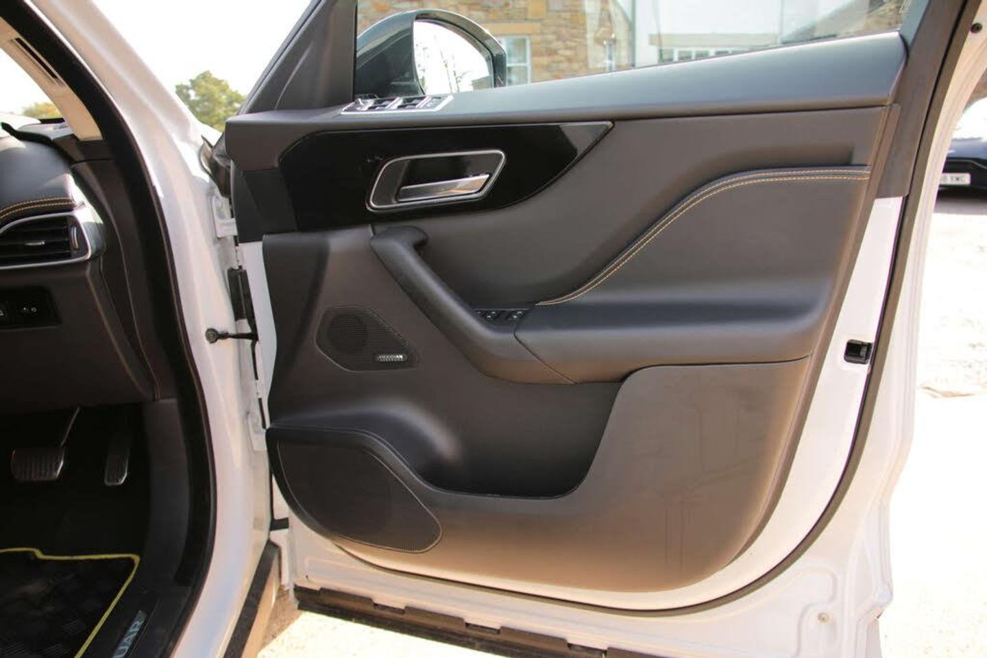 Privacy Glass, Reduced Section Steel Spare Wheel, Sliding Panoramic Roof, Configurable Dynamics, Head-Up Display Pack, Meridian Surround Sound System, Light Oyster Suedecloth Headlining, Solar Attenuating Windscreen, 18-Way Electric Front Sport Seats with Driver Memory, Cabin Air Ionisation, Gloss Figured Ebony Veneer, Heated Front and Rear Seats, Illuminated Metal Treadplates with Brand-Name Script, Illuminated Metal Loadspace Scuff Plate, Yulong White, Adaptive Dynamics Pack, Perforated Grained Leather - Ebony with Yellow Stitching