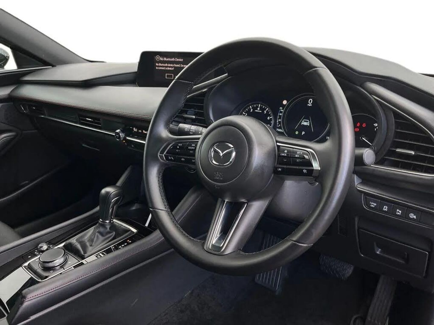 10.25" display with Mazda Connect infotainment,7" colour TFT display,Adjustable speed limiter,Advanced E-call with GPS,Alexa in-car voice assistant,Audio transfer from bluetooth devices,Blind spot monitoring with rear cross traffic alert,Car finder,Colour active driving display inc Windscreen projected,Traffic Sign Recognition, turn-by- turn navigation and Mazda Radar Cruise Control information,Digital instrument cluster,Driver attention alert system,Emergency stop signalling system,Engine start/stop button,Front and rear parking sensor with audible and visual warning,Head up Display,Integrated bluetooth with steering wheel mounted controls,Intelligent speed assist,Lane keep assist system (LAS) with Lane departure warning system (LDWS),Mazda connected services,Mazda Navigation System with european mapping,Mazda Radar Cruise Control,Mobile App interface,Multimedia Commander,PAS,Qi wireless charging,Reversing camera,Service indicator,Tailgate,Traffic sign recognition (TSR),Trip computer,Wireless Apple CarPlay/Android Auto,Cylinder Deactivation,i-stop,2 USB-C ports in the front,Mazda Multimedia System with AM / FM / DAB radio with 8 speakers,Auto dimming rear view mirror,B-pillar garnish in piano black,Black door mirrors,Coming/leaving home lighting function,Dark metallic finish signature wing,Dual chrome tailpipes tip,Dusk sensing headlights,Electric front/rear windows with one touch/auto up/down,Electrically adjustable, heated auto power folding door mirrors,Front body coloured bumper with black lower bezel,Front kodo turn signal,Gloss black finish front grille,Gloss black rear roof spoiler,High beam control,LED daytime running lights,LED front fog lights,LED headlamps with auto levelling,LED indicator lights,LED rear combination lights,LED third brake light,Rain sensing front wipers with adjustable sensitivity and speed,Rear colour coded bumper with gloss black lower moulding,Rear fog lights,Rear side wing doors,Speed adjustable rear wash wiper with intermittent wipe,12v electrical power outlet,3 seat bench in 2nd row,60/40 split fold down rear seats,Black with red stiching steering wheel, gearshift gaitor, dashboard panel, armrest,Cloth upholstery,Dark cloth door panel inserts,Dark roof headlining, ceiling and pillars,Driver seat manual slide, recline, height and seat tilt adjust,Driver, front passenger and two rear door pockets,Driver, Front passenger and two rear grab handles with coathooks,Driver/passenger sunvisors + vanity mirrors (drivers side with ticket holder),Dual zone climate control air conditioning,Folding rear centre armrest with two cup holders,Front and rear courtesy lamps,Front armrest,Front centre storage with two cupholders,Front head restraints,Front passenger seatback pocket,Front passengers seat manual slide, recline and height adjustment,Gear shift drive selection switch sport mode,Heated front seats with 3 stage setting,Illuminated glovebox,Interior colouration dashboard and doorcards in black with dark stitching,ISOFIX child seat anchorage points attached on outer rear seats,Leather wrapped gear shift knob,Leather wrapped steering wheel,LED interior light,LED light in luggage compartment,Power outlet in luggage compartment,Roof mounted sunglasses holder,Single front passenger seat,Three height adjustable rear head restraints,Tilt/height adjustable steering wheel,3 point ELR front seatbelts with pretensioners,3 rear 3 point seatbelts with ELR,Anti-lock braking system (ABS),Drivers knee airbag,DSC - Dynamic Stability Control,Dual stage driver and single stage passenger airbags,EBD - Electronic brakeforce distribution,Electronic parking brake with auto disengage function and auto hold function,Front and rear curtain airbags,Front passenger airbag cut-off switch,Front side airbags,Front smart city brake support,G-Vectoring control plus,Hill launch assist,Intelligent Traction Control system,Manual child lock in rear doors,Mild Hybrid system with regenerative braking,Seatbelt reminder audible warning for driver, passenger and rear seats,Tyre pressure monitoring system (TPMS),Auto door lock when driving,Remote central locking + deadlocks,Smart keyless entry,Thatcham accredited alarm and immobiliser,18" Black alloy wheels,Emergency tyre repair kit