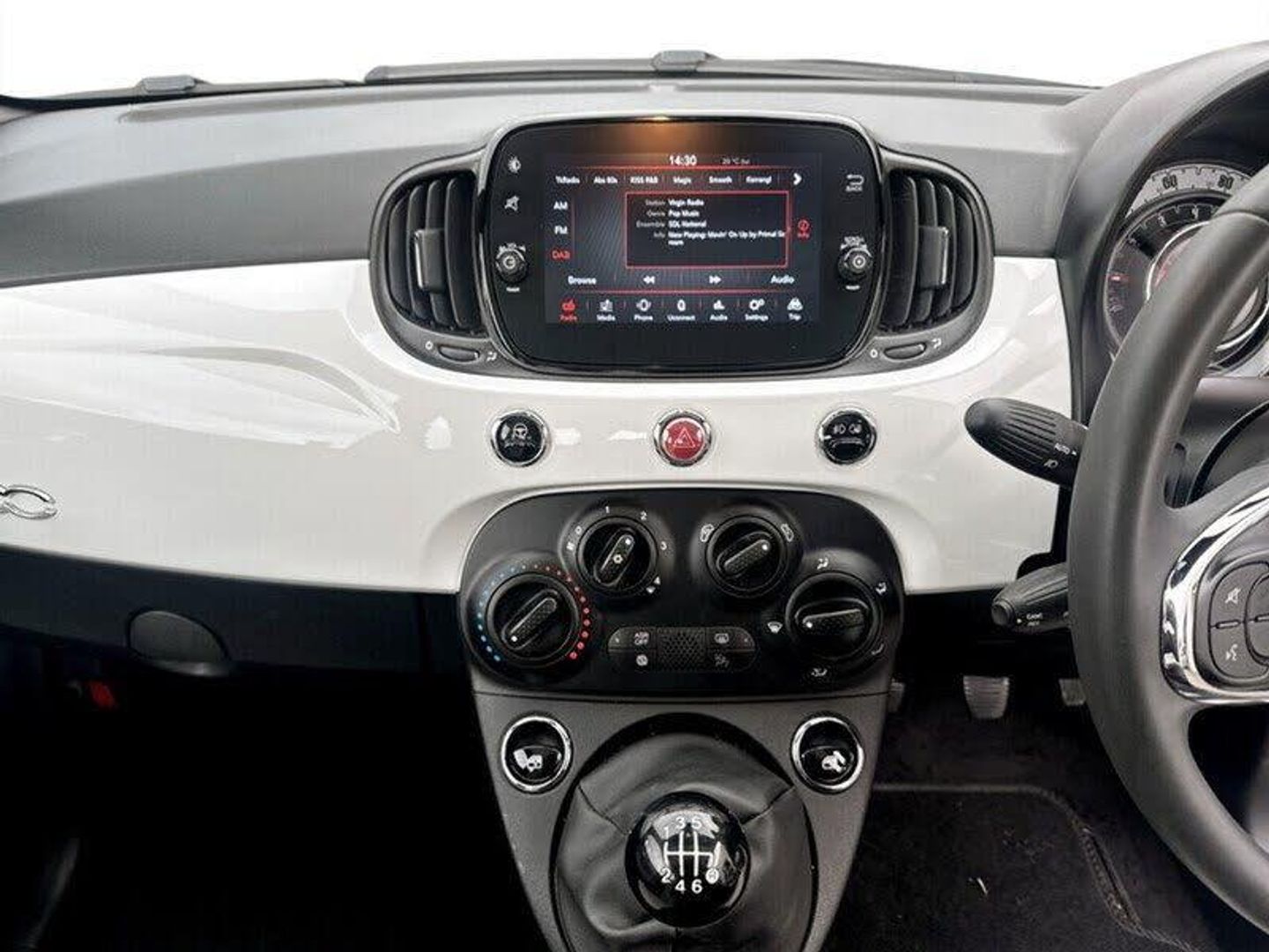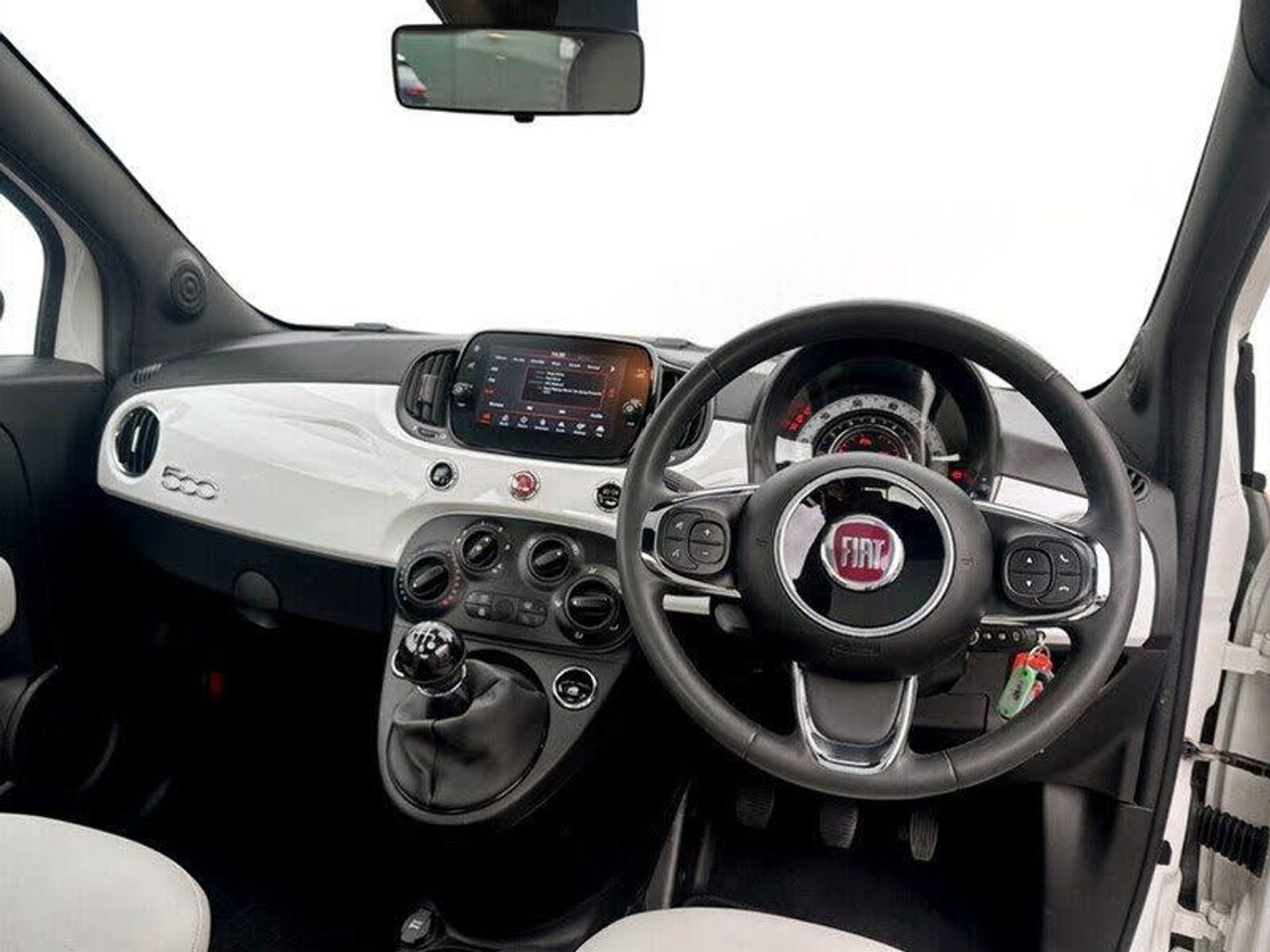 Bossa Nova White,Fabric - White-Black with Black Ambience, 7in HD Touchscreen Radio with Bluetooth - USB and DAB, Apple CarPlay - Android Auto Connectivity, Cruise Control, Rear Parking Sensors, TPMS - Tyre Pressure Monitoring System, 15in Alloy Wheels, Body Coloured Bumpers, Chrome Kit, Chrome Plated Exterior Door Handles, Dolcevita Badge, Electric Front Windows, Electrically Adjustable and Heated Body Coloured Door Mirrors, Fix and Go Puncture Repair Kit, Fixed Sunroof, Fog Lights, LED Daytime Running Lights, 50-50 Split Folding Rear Seat with Height Adjustable Head Restraints, Air Conditioning, Body Coloured Dashboard, Height Adjustable Drivers Seat, Rain and Dusk Sensors, Steering Wheel - Height Adjustment, Technoleather Steering Wheel with Audio Controls, Rack and Pinion with Electric Power Steering, Speed Limiter, 7 Airbags, ABS with EBD, Automatic Door Locking, ESC - Electronic Stability Control, Remote Central Locking