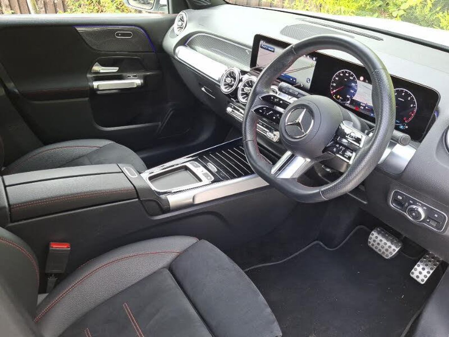 Manufacturer Approved Used, Balance of warranty, Blind spot assist, Exit warning function, Hey Mercedes Voice activation, MBUX navigation premium, LED daytime running lights, LED Headlights, Rear parking sensor, 10.25 inch touchscreen central media display, 10.25" Digital instrument cluster display screen, 12 ultrasonic sensors in front and rear bumpers, 180 degree reversing camera with parking guidelines, Hard disk navigation, Artico man-made leather/Microcut microfibre - Black with red stitching, 19" AMG 5 twin spoke light alloy wheels aerodynamically optimised painted in tantalite grey with a high sheen finish, Easy pack tailgate, Seat comfort package - GLB