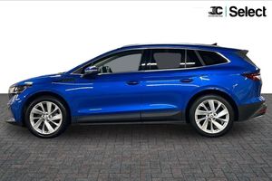 This 2023 Skoda Enyaq 80 is an exceptional example, boasting incredibly low mileage for its age at just 9506 miles. As a fully electric vehicle, it offers a substantial battery total capacity of 82 kWh, providing a maximum range of 339 miles when new. This Enyaq 80 comes equipped with the desirable Plus Package, which includes Blind Spot Assistance, dual zone climate control, adaptive cruise control, LED headlights, keyless entry, heated front seats, memory seats, a heated steering wheel, and wireless phone charging. Further enhancing its appeal are the stylish 20 inch Vega Silver Metallic alloy wheels and Skoda Connect iV Remote Services, allowing for remote climate control activation. For seamless connectivity, it also features Wireless Smartlink, compatible with Android Auto. The impressive 339 mile maximum range highlights how this Enyaq 80 is better equipped for longer journeys than many other electric vehicles. Furthermore, the generous boot space ensures practicality for all your needs, whether it's for daily errands or family adventures. Charging is convenient, with a full charge at home on a 7kW charger taking approximately 13 hours, and rapid public charging can replenish the battery from empty to 80% in as little as 30 minutes, demonstrating its versatility for both home and on the go charging.
