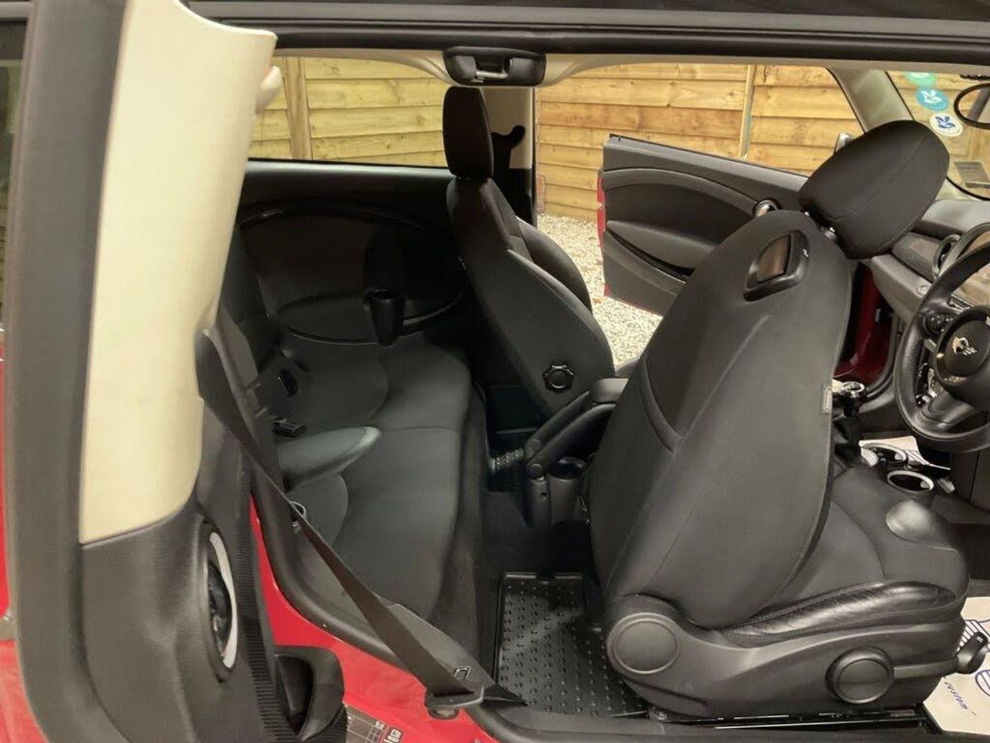 16in Alloy Wheels - Light Rib Spoke, 17in Alloy Wheels - Light Conical Spoke, 3-Spoke Sport Leather Steering Wheel, 3rd Brake Light, Additional Decor Rings, Air Conditioning - Automatic, Air Conditioning - Manual, Airbags - Driver, Airbags - Front Passenger, Airbags - Front Passenger with Deactivation Switch, Airbags - Front Side, Airbags - Head, Alarm - Thatcham CAT1, Anti-Lock Braking System - ABS, ASC+T - Automatic Stability Control and Traction, Aux-In Connection, Basic Bluetooth Function with USB Audio, Brake Force Display, Brake Pad Wear Indicator, Car Jack, CBC - Cornering Brake Control, Central Locking - Remote, Child Seat ISOFIX Attachment, CHILI Pack, Chili Red, Cloth-Leather Ray - Carbon Black, Colour Line - Carbon Black, Crash Sensor - Fuel Cut-Off, Crash Sensor - Hazard Warning Flashers and Interior Light, Crash Sensor - Unlocking Doors, Cupholders - Front x2 - Rear x3, DAB Tuner, Door Handles - Chrome Plated, Door Handles - Interior - Chrome Plated, Door Mirrors - Electrically Adjustable and Heated, Dynamic Stability Control - DSC, EBD - Electronic Brake-Force Distribution, Electric Windows - Front - One Touch Up and Down, Electronic Power Steering - Speed Related, Flat Load Floor, Foldable Rear Backrest and 50:50 Split, Front Centre Armrest, Front Fog Lights, Halogen Lights for Low Beam and High Beam Headlights, Headlight - Beam-Throw Control Electrical with Manual Adjustment, Headlights - Bi-Xenon, Headlights - Follow Me Home, Headrests For All Seats - Manually Adjustable, Heated Front Windscreen Washer Jets, Hill Assist, Interior Light Pack, Interior World - Carbon Black, Lashing Eyes in Luggage Compartment, Microfilter, MINI Mobility System, Mirror Caps in Body Colour, Multifunction Controls for Steering Wheel, Non Smoker Package, Passenger Seat Height Adjustable, PDC - Park Distance Control - Rear, Radio BOOST CD, Rain Sensor and Automatic Headlight Activation, Roof and Mirror Caps - Black, Roof in Body Colour, Roof Rails, Run-Flat Tyres, Seat Heating for Driver and Front Passenger, Seats - Easy Entry Access, Seats - Height Adjustable Drivers, Seats - Sports Front, Second Radio Remote Key, Security Locking Wheel Bolts, Sport Button, Steering Column Height and Length Adjustment, Storage Options in the Trim Panels of Each Front Panel as well as Centre Console, Sun Visors with Integrated Vanity Mirrors on Drivers and Passengers Sides, Tool Kit in Luggage Compartment, TPWS - Tyre Pressure Warning System, White Direction Indicators Lights