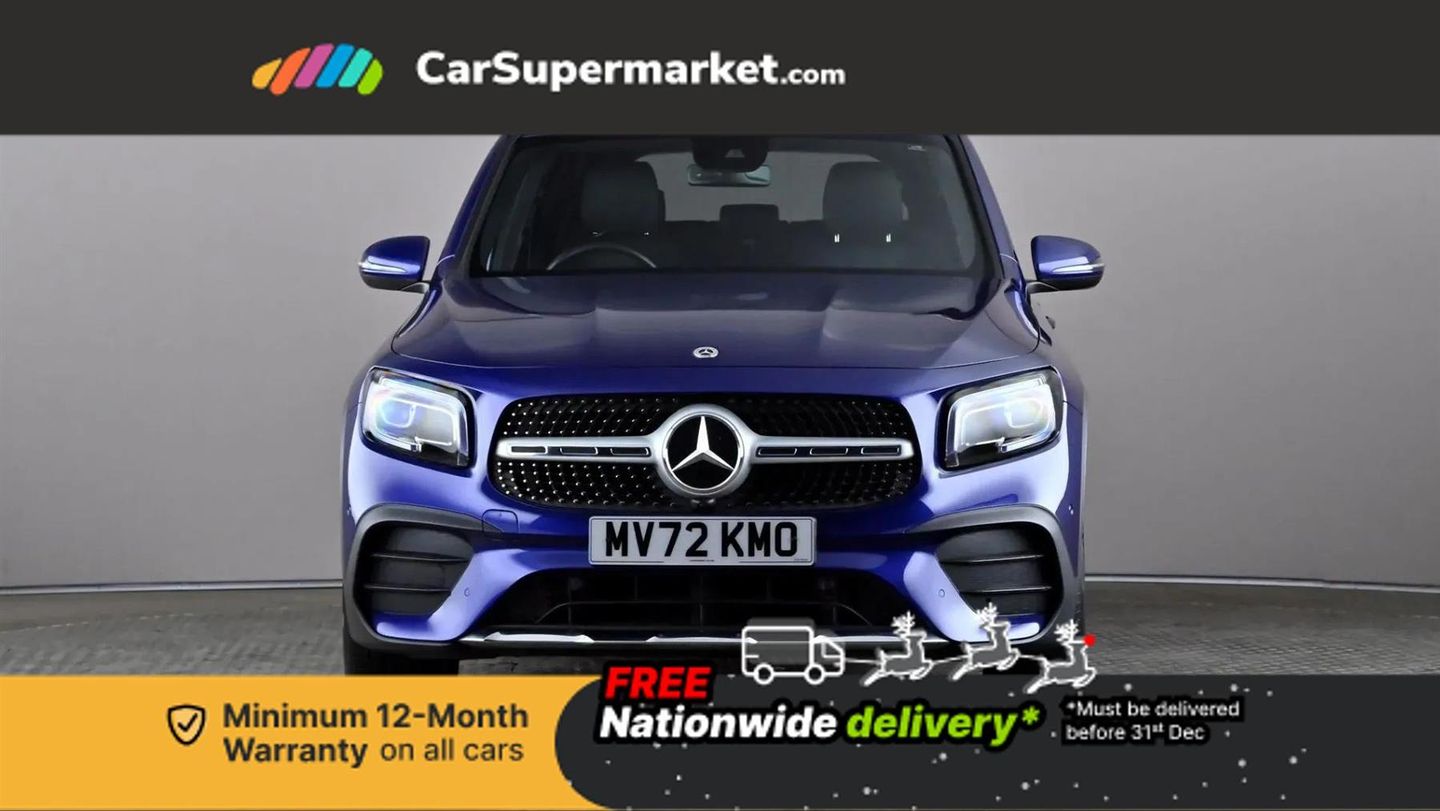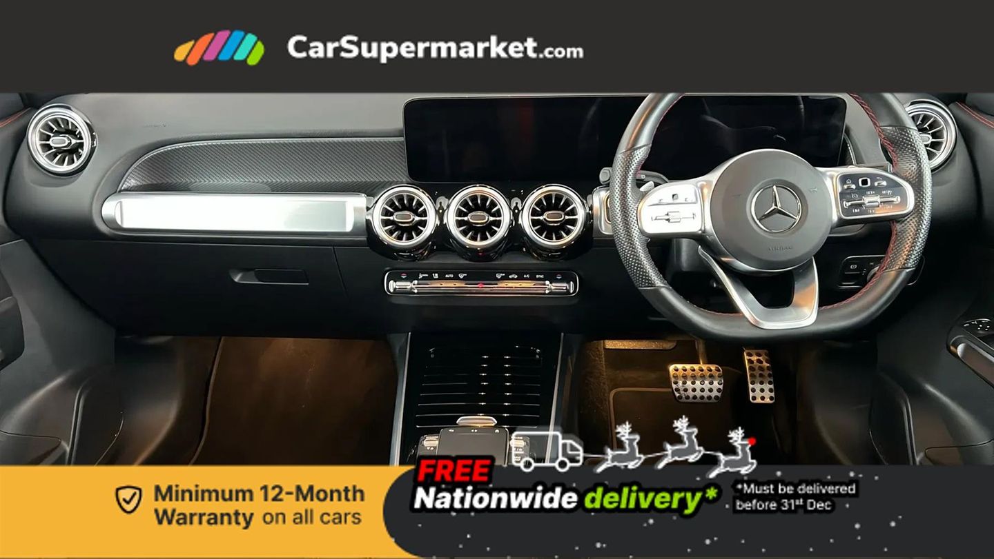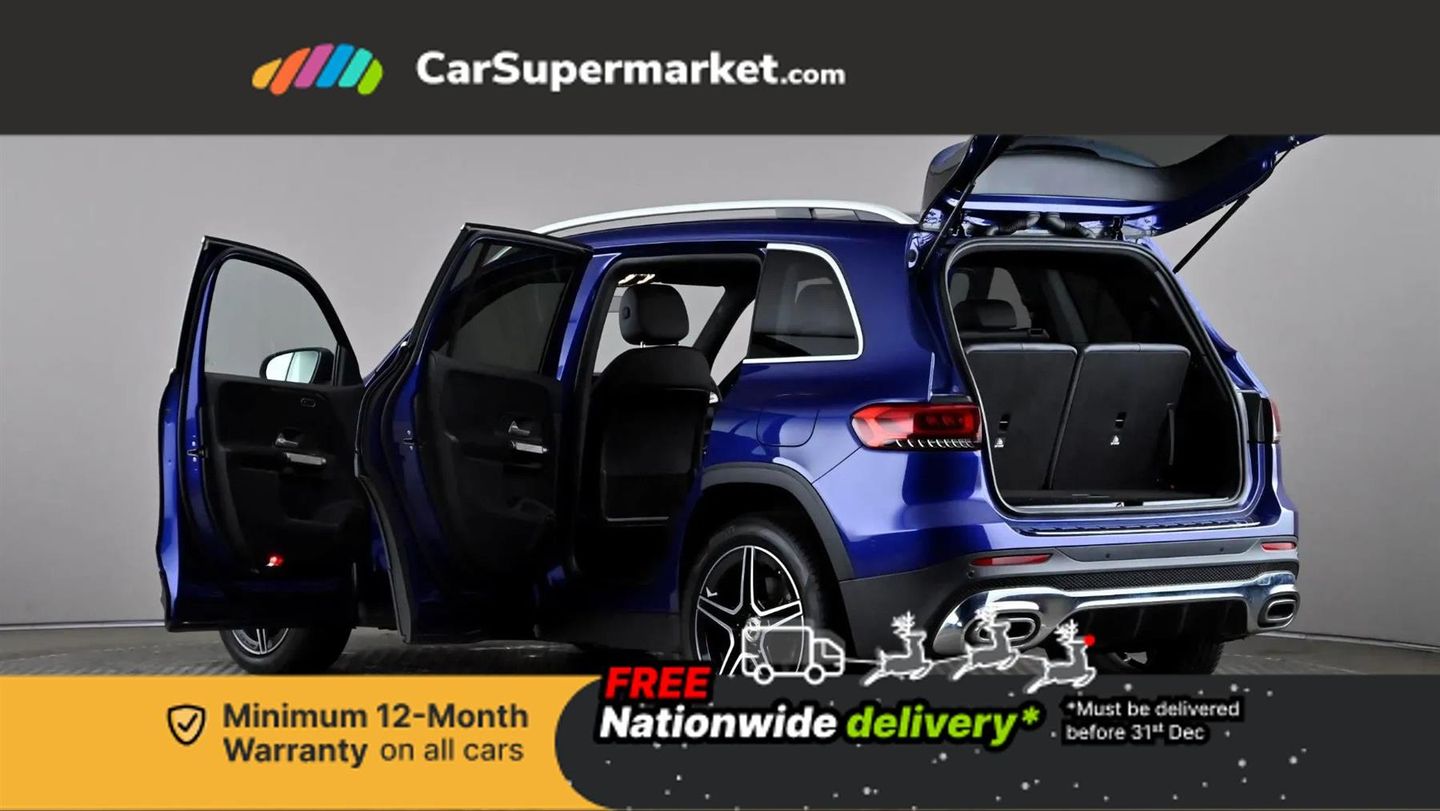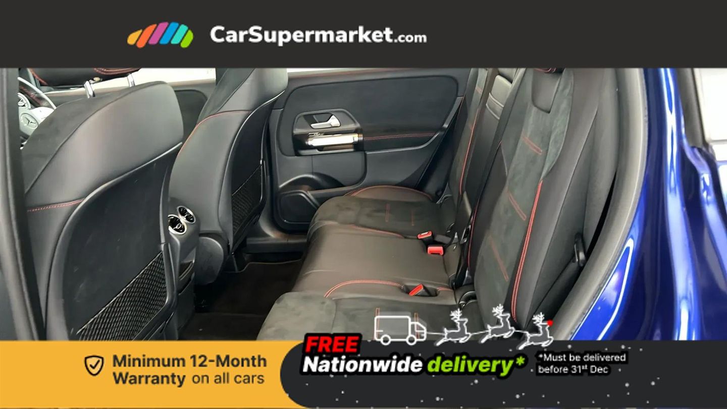 10.25" Digital instrument cluster display screen,10.25" Digital media screen display,Active lane keeping assist,Attention assist - Monitors steering behaviour and long journey fatigue,Brake pad wear indicator warning light,Car wash mode,Cruise control with limiter,DYNAMIC SELECT with a choice of driving modes (ECO, Comfort, Sport and Individual),ECO start/stop function,Fluid level warning indicator for fuel, oil, coolant and washer fluid,Hard disk navigation,Hey Mercedes Voice activation,Lamp failure indicator,Mercedes me connect including emergency call system, accident recovery, breakdown and maintenance management,Mercedes me remote services,Outside temperature gauge,Owners manual and service booklet in English,Parameter steering system,Pre-installation of private car share,Preinstallation for parking damage notification,Radio aerial integrated into front and rear windshields,Service indicator (ASSYST),Speed limit assist,Trip computer in multifunction display with current consumption indicator,Comfort suspension,Rear axle multi-link,DAB digital radio tuner,MBUX multimedia system with DAB digital radio and touchpad including satellite navigation,Mercedes Benz sound system (100 W) with 6 speakers,Pre installation for Mercedes Benz Link,USB (type C) port in front stowage compartment,USB (type C) ports (2) in stowage compartment,Adaptive brake lights,Aerial for GPS,AMG bodystyling door panels black grained with chrome plated inserts,AMG bodystyling front apron with chrome splitter,AMG bodystyling rear apron with diffuser optics and chrome trim element,AMG specific front and rear bumper including underride guard in high gloss chrome,Beltline strips and weather strip in chrome,Body coloured bumpers,Body coloured door handles,Body coloured door mirror caps,Electric adjustable and heated door mirrors with integrated LED side indicators,Exhaust system with dual flow exhaust pipes (non-functional),Front and rear electric windows,Headlamp assist automatic headlamp activation,Heated glass rear windscreen + timer control,High level LED third brake light,Interior mirror with black reading lamps and frameless,LED high performance headlamps with integrated LED daytime running lights,LED tail lamp,Polished aluminium roof rails,Privacy glass with dark tinting on rear side windows and rear window,Radiator grille with pins in chrome and single louvre with chrome insert,Rain sensor windscreen wipers,Rear fog lamp,Rear side wing doors,Rear wiper,Two visible tailpipe trim elements exhaust,3 seat bench in 2nd row,3 spoke multifunction sport steering wheel in nappa leather,Air conditioning - Two zone thermotronic luxury automatic climate control with display,AMG sports pedals with brushed stainless steel surfaces and black rubber studs,Artico man-made leather/Microcut microfibre upholstery with red contrast stitching,Automatic child seat recognition sensor,Black roof lining,Fore/aft adjustment rear seats,Freight packaging with tie-down hooks,Front centre armrest with stowage,Front door sills with illuminated changeable cover,Front passenger grab handle with brushed side silver chrome,Galvanished gear shift paddles on steering wheel,Heated front seats,Height/reach adjustable steering column,Interior lighting - 64 colour Ambient lighting,Luggage net on driver/front passenger seat backrest,Net in front passenger footwell,Rear armrest with two integral cup holders for drinks,Rear seat easy entry,Single front passenger seat,Sports seats with adjustable head restraints,Stowage compartment in centre console,Stowage compartment with retractable cover,Third row of seats for two people on rear seat,Touchpad on center console,Twin front cup holders,Two outer rear seat isofix and top tether child seat fixing points,Interior lighting with light and sight pack - GLB,Mirror pack - GLB,Parking pack - GLB,Seat comfort package - GLB,3 rear 3 point seatbelts,Active bonnet pedestrain safety measure which detects an impact and raises bonnet by 65mm,Active brake assist includes forward collision warning system with autonomous braking,Adaptive brake assist with hold function and hill start assist,Airbags - kneebag for driver,Anti-lock braking system (ABS) with brake assist,Childproof locks manually operated for rear doors and electrically operated for rear power windows,Crash responsive emergency lighting,Curve dynamic assist,Driver and front passenger head and sidebags,Driver and front passenger windowbags,Dual stage driver and front passenger airbags,Electronic parking brake,Electronic stability programme with acceleration skid control,Front and rear seatbelt reminder,Front brake callipers with Mercedes Benz lettering,Front passenger seat occupancy sensor,Tyre pressure monitoring system,Warning triangle and first aid kit,Guard 360 degree vehicle protection - Anti theft alarm system, tow away protection with visual, acoustic warning and alarm,Interior monitoring system,KEYLESS-GO starting function