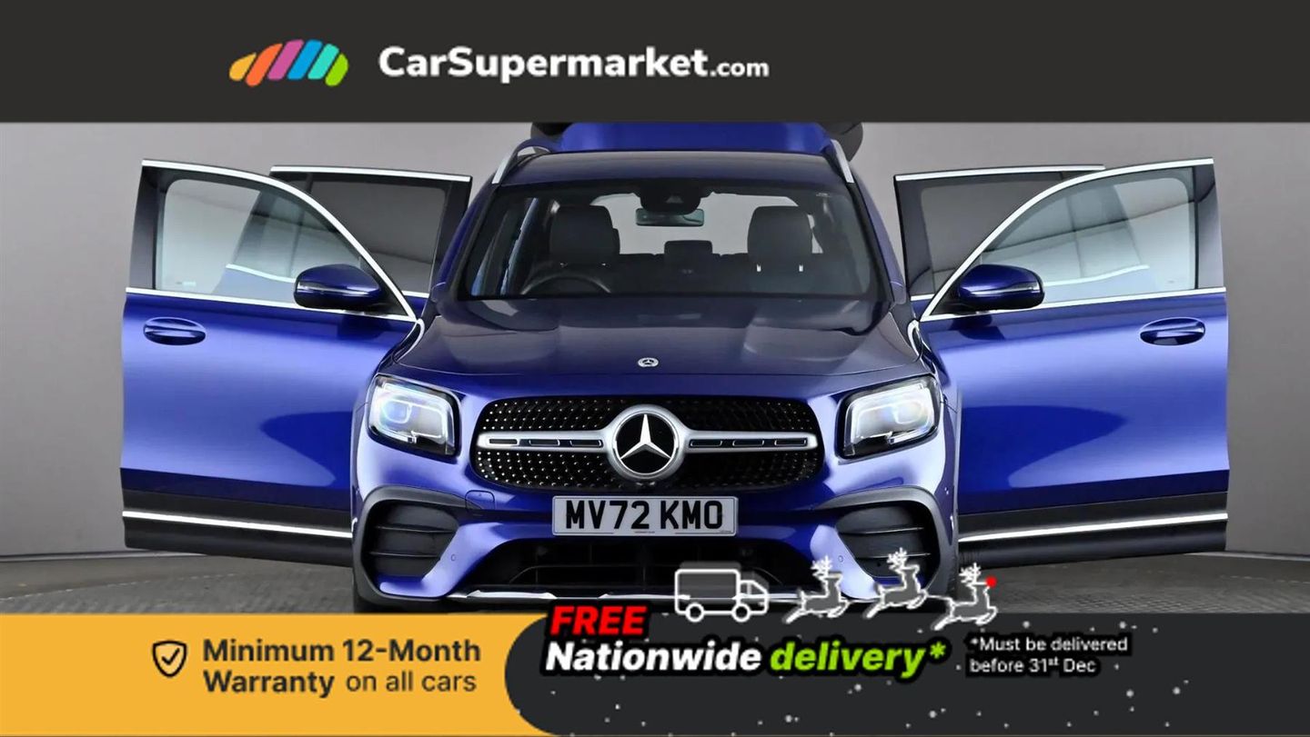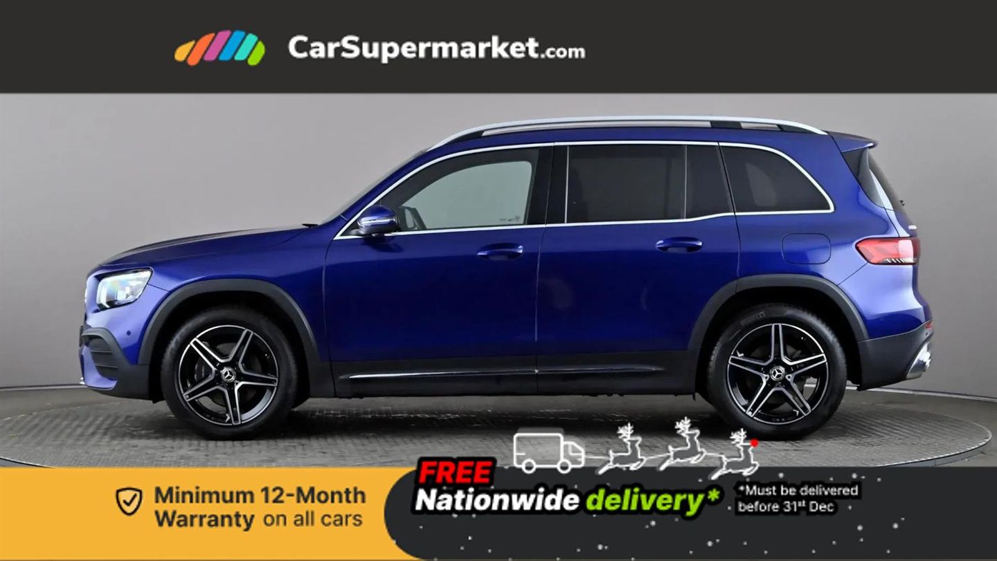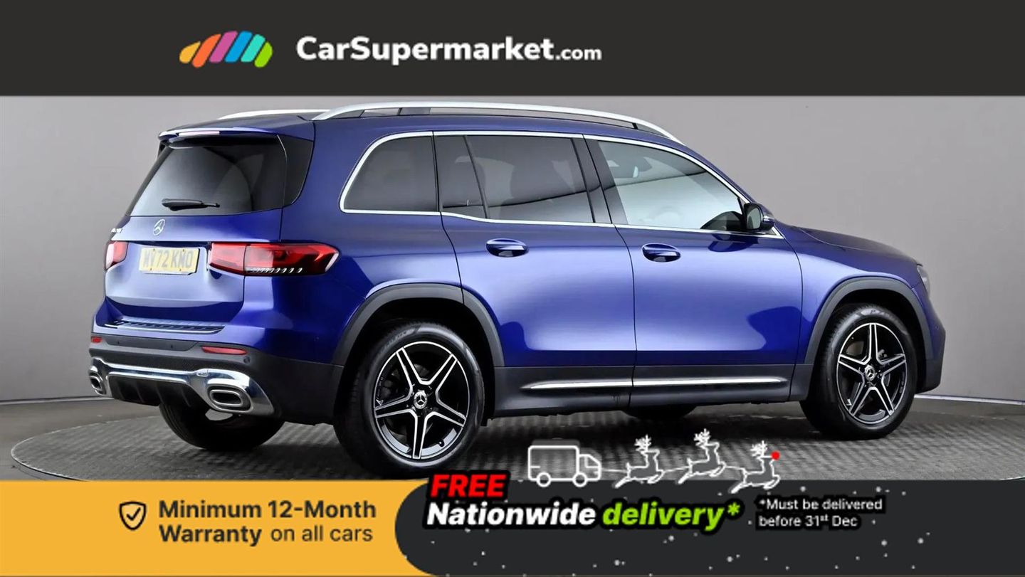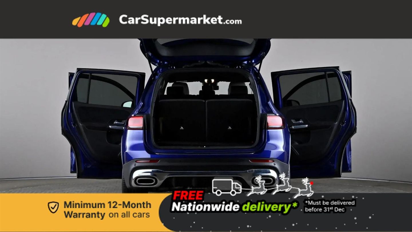 10.25" Digital instrument cluster display screen,10.25" Digital media screen display,Active lane keeping assist,Attention assist - Monitors steering behaviour and long journey fatigue,Brake pad wear indicator warning light,Car wash mode,Cruise control with limiter,DYNAMIC SELECT with a choice of driving modes (ECO, Comfort, Sport and Individual),ECO start/stop function,Fluid level warning indicator for fuel, oil, coolant and washer fluid,Hard disk navigation,Hey Mercedes Voice activation,Lamp failure indicator,Mercedes me connect including emergency call system, accident recovery, breakdown and maintenance management,Mercedes me remote services,Outside temperature gauge,Owners manual and service booklet in English,Parameter steering system,Pre-installation of private car share,Preinstallation for parking damage notification,Radio aerial integrated into front and rear windshields,Service indicator (ASSYST),Speed limit assist,Trip computer in multifunction display with current consumption indicator,Comfort suspension,Rear axle multi-link,DAB digital radio tuner,MBUX multimedia system with DAB digital radio and touchpad including satellite navigation,Mercedes Benz sound system (100 W) with 6 speakers,Pre installation for Mercedes Benz Link,USB (type C) port in front stowage compartment,USB (type C) ports (2) in stowage compartment,Adaptive brake lights,Aerial for GPS,AMG bodystyling door panels black grained with chrome plated inserts,AMG bodystyling front apron with chrome splitter,AMG bodystyling rear apron with diffuser optics and chrome trim element,AMG specific front and rear bumper including underride guard in high gloss chrome,Beltline strips and weather strip in chrome,Body coloured bumpers,Body coloured door handles,Body coloured door mirror caps,Electric adjustable and heated door mirrors with integrated LED side indicators,Exhaust system with dual flow exhaust pipes (non-functional),Front and rear electric windows,Headlamp assist automatic headlamp activation,Heated glass rear windscreen + timer control,High level LED third brake light,Interior mirror with black reading lamps and frameless,LED high performance headlamps with integrated LED daytime running lights,LED tail lamp,Polished aluminium roof rails,Privacy glass with dark tinting on rear side windows and rear window,Radiator grille with pins in chrome and single louvre with chrome insert,Rain sensor windscreen wipers,Rear fog lamp,Rear side wing doors,Rear wiper,Two visible tailpipe trim elements exhaust,3 seat bench in 2nd row,3 spoke multifunction sport steering wheel in nappa leather,Air conditioning - Two zone thermotronic luxury automatic climate control with display,AMG sports pedals with brushed stainless steel surfaces and black rubber studs,Artico man-made leather/Microcut microfibre upholstery with red contrast stitching,Automatic child seat recognition sensor,Black roof lining,Fore/aft adjustment rear seats,Freight packaging with tie-down hooks,Front centre armrest with stowage,Front door sills with illuminated changeable cover,Front passenger grab handle with brushed side silver chrome,Galvanished gear shift paddles on steering wheel,Heated front seats,Height/reach adjustable steering column,Interior lighting - 64 colour Ambient lighting,Luggage net on driver/front passenger seat backrest,Net in front passenger footwell,Rear armrest with two integral cup holders for drinks,Rear seat easy entry,Single front passenger seat,Sports seats with adjustable head restraints,Stowage compartment in centre console,Stowage compartment with retractable cover,Third row of seats for two people on rear seat,Touchpad on center console,Twin front cup holders,Two outer rear seat isofix and top tether child seat fixing points,Interior lighting with light and sight pack - GLB,Mirror pack - GLB,Parking pack - GLB,Seat comfort package - GLB,3 rear 3 point seatbelts,Active bonnet pedestrain safety measure which detects an impact and raises bonnet by 65mm,Active brake assist includes forward collision warning system with autonomous braking,Adaptive brake assist with hold function and hill start assist,Airbags - kneebag for driver,Anti-lock braking system (ABS) with brake assist,Childproof locks manually operated for rear doors and electrically operated for rear power windows,Crash responsive emergency lighting,Curve dynamic assist,Driver and front passenger head and sidebags,Driver and front passenger windowbags,Dual stage driver and front passenger airbags,Electronic parking brake,Electronic stability programme with acceleration skid control,Front and rear seatbelt reminder,Front brake callipers with Mercedes Benz lettering,Front passenger seat occupancy sensor,Tyre pressure monitoring system,Warning triangle and first aid kit,Guard 360 degree vehicle protection - Anti theft alarm system, tow away protection with visual, acoustic warning and alarm,Interior monitoring system,KEYLESS-GO starting function