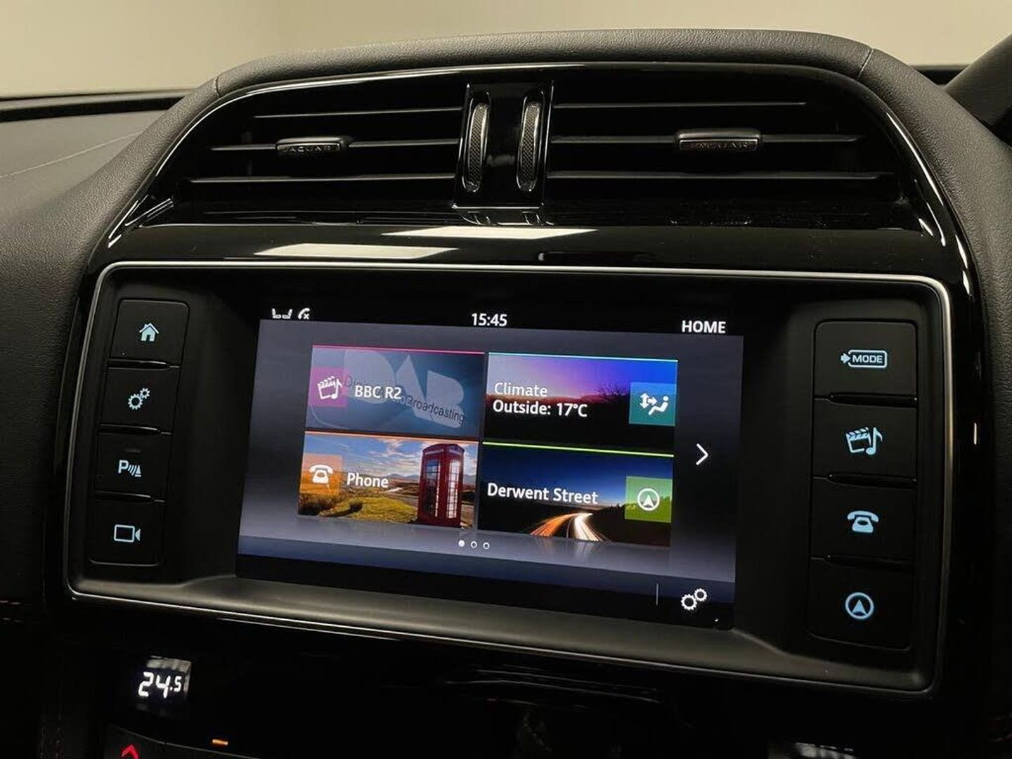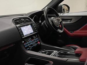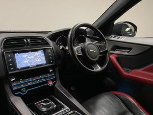 5in Display with Instrument Panel, Bluetooth Audio Streaming, Bluetooth Telephone Connectivity, Digital Audio Broadcast - DAB - Radio, Dynamic Volume Control, InControl Apps, Meridian Sound System - 380W, Navigation System, Power Sockets, Remote Premium for Warranty Period, Single View 8in Touchscreen for Touch, Wi-Fi Hotspot, Brake Pad Wear Indicator, Configurable Dynamics, Cruise Control with Speed Limiter, ECO Driving Style Assistant, Front Parking Aid, JaguarDrive Control, Lane Departure Warning, Outside Temperature Gauge, Rear Parking Aid, Rear View Camera, Start Up Sequence with Movement - Dials and Lighting, Traffic Sign Recognition with Intelligent Speed Limiter, Trip Computer, Tyre Pressure Monitoring System, 20in Alloy Wheels - 5 Spoke Style 5035 with Grey Diamond Turned Finish, Auto-Dimming - Power Fold - Heated Door Mirrors with Approach Lights, Door Mirrors - Body Coloured, Dual Tailpipes with 84mm Finishers, Electric Windows - Front and Rear with One-Touch Open-Close and Anti-Trap, Gloss Black Roof Rails, Gloss Black Side Window Surround, Grained Black Radiator Grille with Satin Chrome Surround, Green Tinted Glass, Heated Front Windscreen, Heated Rear Window, Jaguar Script and Leaper, Jaguar Tyre Repair System, Rear Fog Lights, Rear F-Pace Badge, Red Brake Calipers, S Badge Front and S AWD Badge Rear, S Body Kit, Satin Chrome Side Power Vents, Approach Illumination, Front Fog Lights, LED Tail Lights, Xenon Headlights with LED Signature, 10-Way Electric Front Seats, 2-Zone Climate Control, 3-Flash Lane Change Indicators, 40-20-40 Split Fold Rear Seat, Ambient Interior Lighting, Auto-Dimming Interior Rear View Mirror, Bright Metal Pedals, Centre Console - Side Stowage, Centre Console - Storage Surround Finishers - Satin Chrome, Centre Console with Armrest, Door Trim - Luxtec, Ebony Morzine Headlining, Front Headrests - S Branded Embossing, Heated Front Seats, Hook in Loadspace, Interior Front Door Handles with Separate Locking Switches, Loadbay - Luggage Tie Downs, Lockable Glovebox with Jaguar Script Finisher, Luxtec Wrapped Instrument Panel Topper, Manually Adjustable Steering Column, Meshed Aluminium Trim Finisher, Metal Treadplates with S Branding, Overhead Lighting Console, Passive Front Head Restraints, Power Boot Lid, Power Tailgate, Premium Carpet Mats, Protect for Warranty Period, Push Button Start, Rain Sensing Windscreen Wipers, Rear Air Vents, Rear Armrest with Twin Cupholders, Reversible Boot Floor - Carpet-Rubber, S Branded Soft Grain Leather Steering Wheel, Satin Chrome Touchscreen Surround, Seats - Sports, Second Row Centre Headrest, Steering Wheel - Multi-Function, Steering Wheel - Satin Chrome Paddles, Twin Front Cupholders with Cover, Valet Mode, Variable Intermittent Wipers, Adaptive Dynamics, EPAS - Electric Power Assisted Steering, Speed Proportional Steering, Torque Vectoring, 350mm Front Brakes, ABS - Anti-locking Braking System, AEB - Autonomous Emergency Braking, Airbags - Front Side, Airbags - Full Length Side Window Curtain, ASPC - All Surface Progress Control, Dynamic Stability Control and Traction Control, EBA - Emergency Brake Assist, EPB - Electronic Parking Brake - Drive Away Release, Front Airbags with Passenger Seat Occupant Detector, Hazard Lights Under Heavy Braking, Hill Launch Assist, ISOFIX Rear, Keyless Entry, Perimeter Alarm, Power Operated Child Locks, Seat Belt Reminder, Trailer Stability Assist, Vehicle Immobiliser, 22in Alloy Wheels - 9 Spoke Style 9006 with Grey Diamond Turned Finish, Heated Front and Rear Seats, Heated Steering Wheel, Perforated Grained Leather - Ebony-Pimento Duotone, Privacy Glass, Santorini Black, Sliding Panoramic Roof