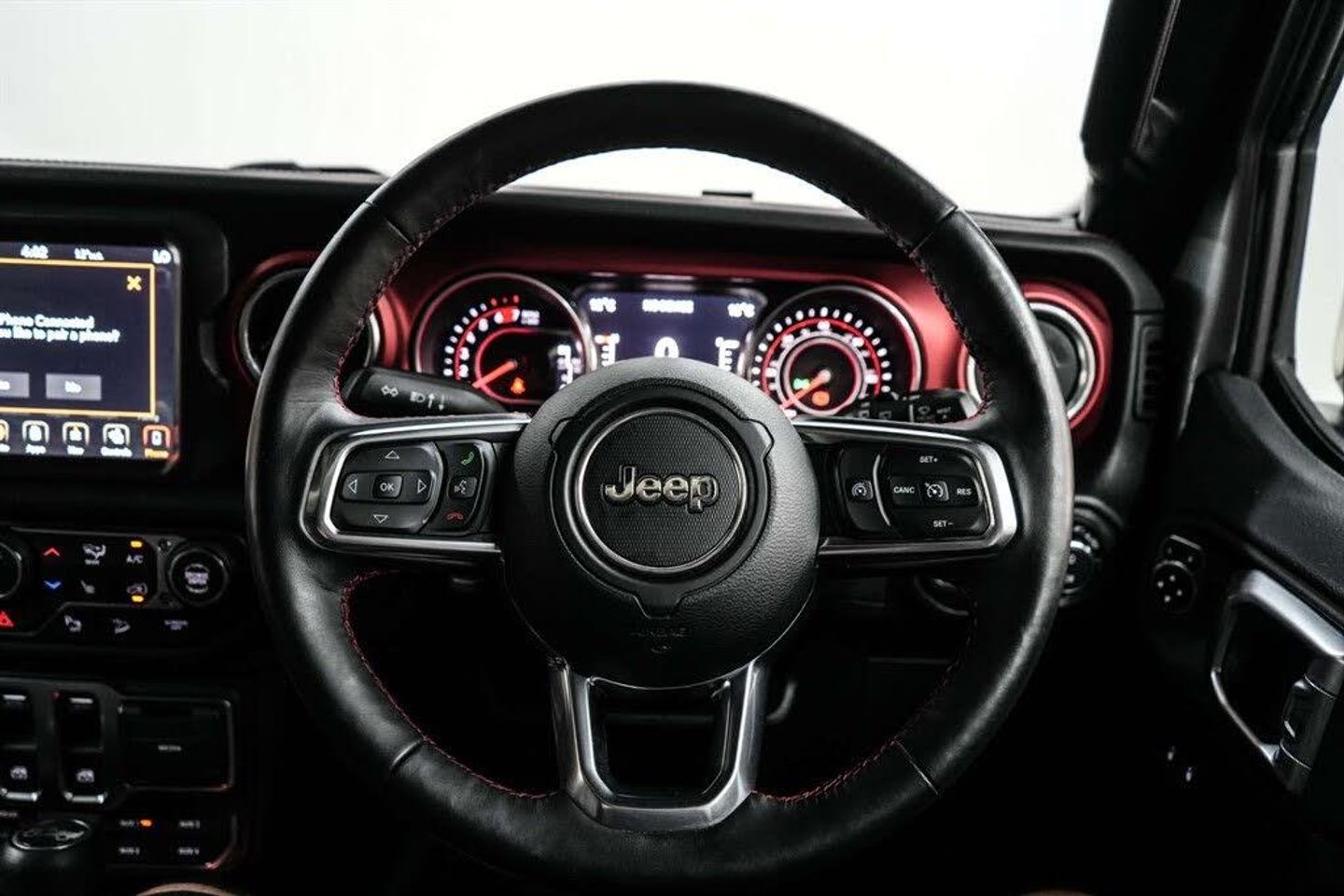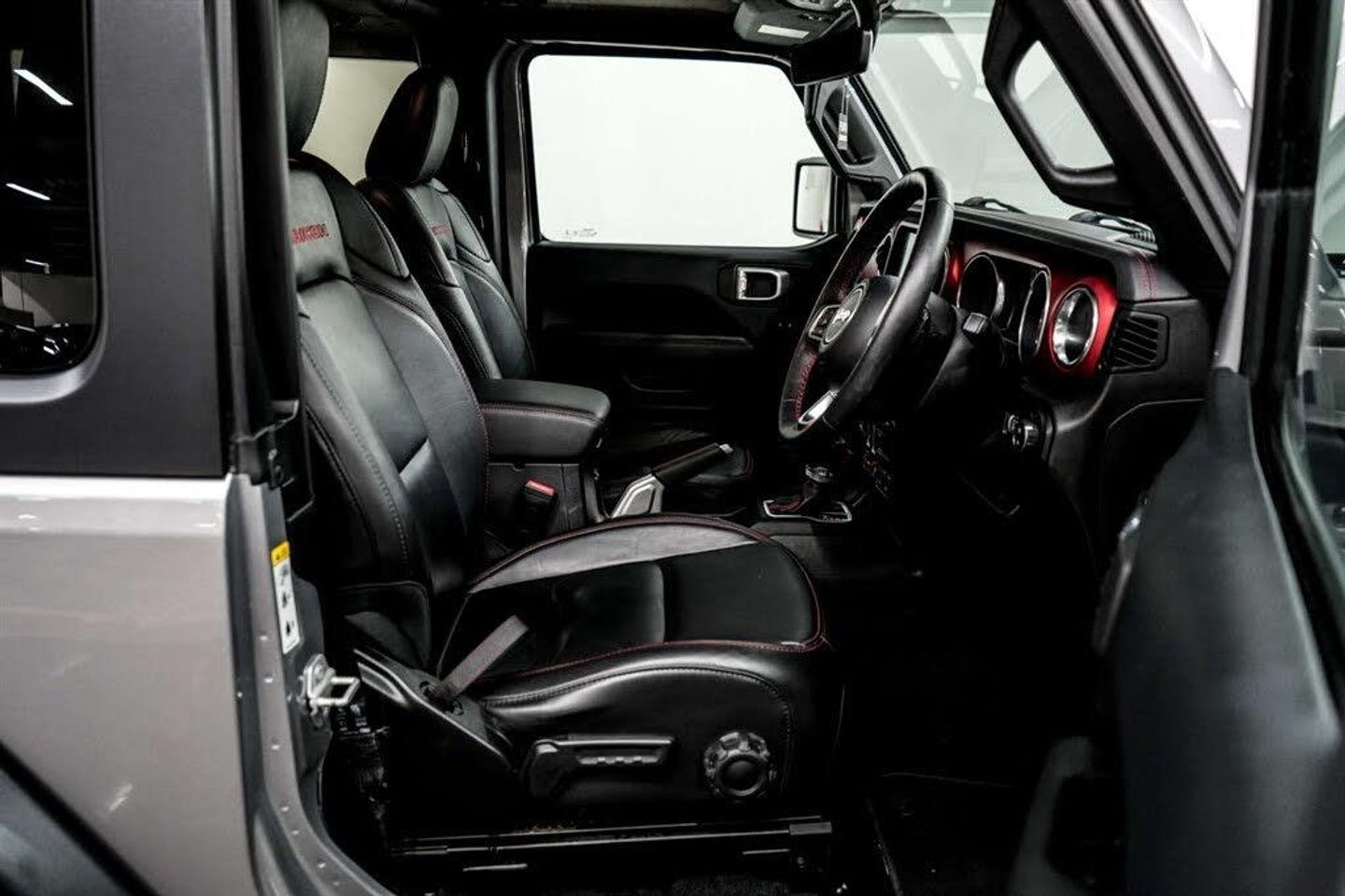 12V Auxiliary Power Outlet - Rear,12V Auxiliary Power Outlet Centre Console,17in Alloy Wheels - Polished Aluminium with Black Pockets,ABS - Anti-Lock Brakes,Active Speed Limiting Device,Airbags - Drivers,Airbags - Front Side,Airbags - Passenger,Alarm - Premium,Ambient LED Interior Lighting,Apple CarPlay,Auto Dimming Rear View Mirror,Black Freedom Top 3-Piece Modular Hard Top,Climate Control,Cruise Control,Daytime Running Lights - LED,Deep Tint Sunscreen Glass,Door Mirrors - Black,Door Mirrors - Power Adjustable and Heated,EARS - Emergency Accident Response System,ESC - Electronic Stability Control,Electric Windows - Front One Touch,Fender Flares - Black,Floor Mats - Front,Front Fog Lamps - Round LED,Front Grille - Body Colour with Accent Colour Grille and Headlamp Throats,Front Sway Bar - Disconnectable,Front Windscreen Wipers - Variable and Intermittent,Google Android Auto,Headlamp Off Time Delay,Headlights - Automatic On,Headlights - LED with Round Signature,Headlights - Levelling System,Heated Front Seats,Heavy Duty Electrical Pack,Illuminated Front Cupholders,Instrument Cluster - 7in TFT Colour Display,Keyless Entry,Keyless Go with Push to Start Button,LED Tail Lamps,Leather Wrapped Steering Wheel and Shift Knob,Manual 2-Way Adjustable Driver Lumbar Support,Manual 6-Way Adjustable Driver Seat,ParkSense Rear Park Assist System,ParkView Rear Back Up Camera,Parking Sensors - Front,Power Steering - Electro-Hydraulic,Premium Alpine Audio System with Subwoofer,Rear Fog Lamps,Rock Rails,Rubicon Hood Decal,Seats - Passenger 4-Way Adjustment,Seats - Rear Folding,Spare Wheel Cover,Speakers x8,Steering Wheel - Mounted Audio Controls,Storage Tray,Sun Visors with Illuminated Vanity Mirrors,Tru-Lock Differentials,Tyre Pressure Monitoring - Warning Display,Uconnect 8.4in with Navigation,Uconnect Live - Europe,Vehicle Information Centre,Billet Silver,Hardtop Headliner,Leather - Black with Rubicon Logo and I-P Mid Panel in Hard Painted Silver Platinum