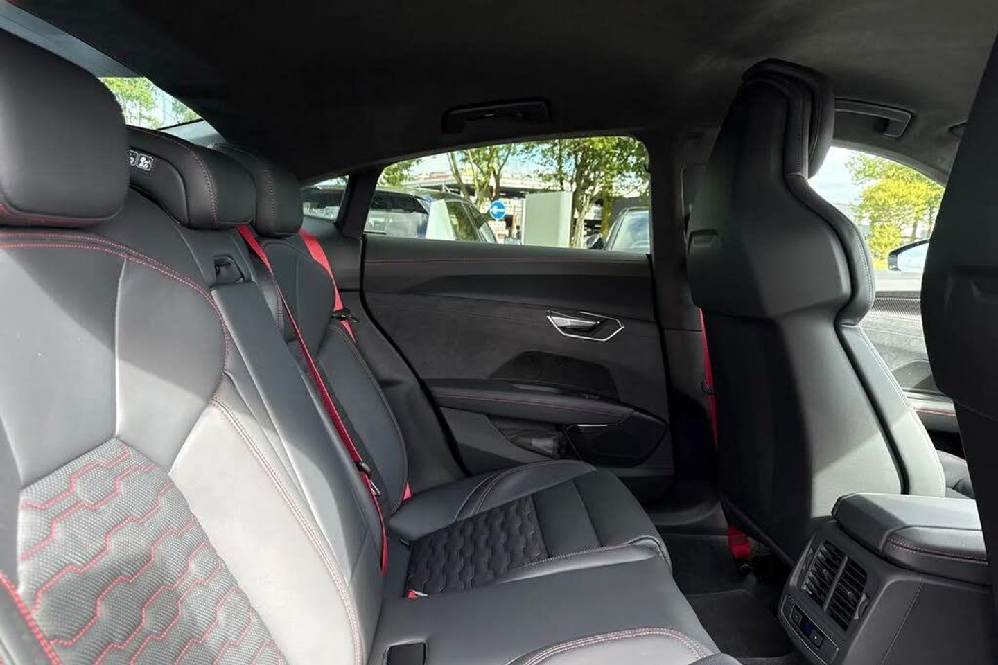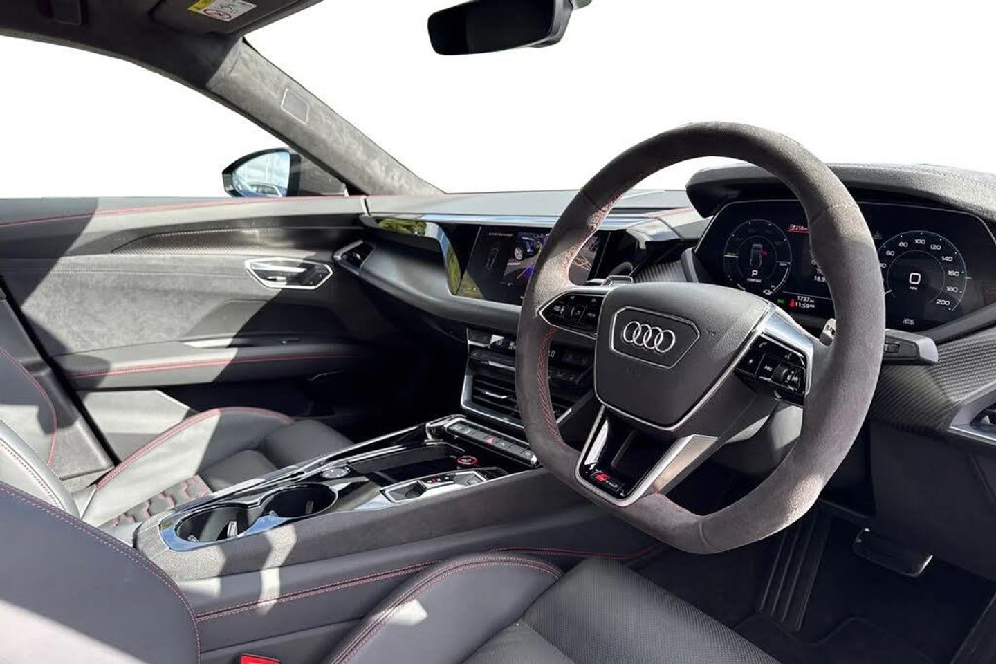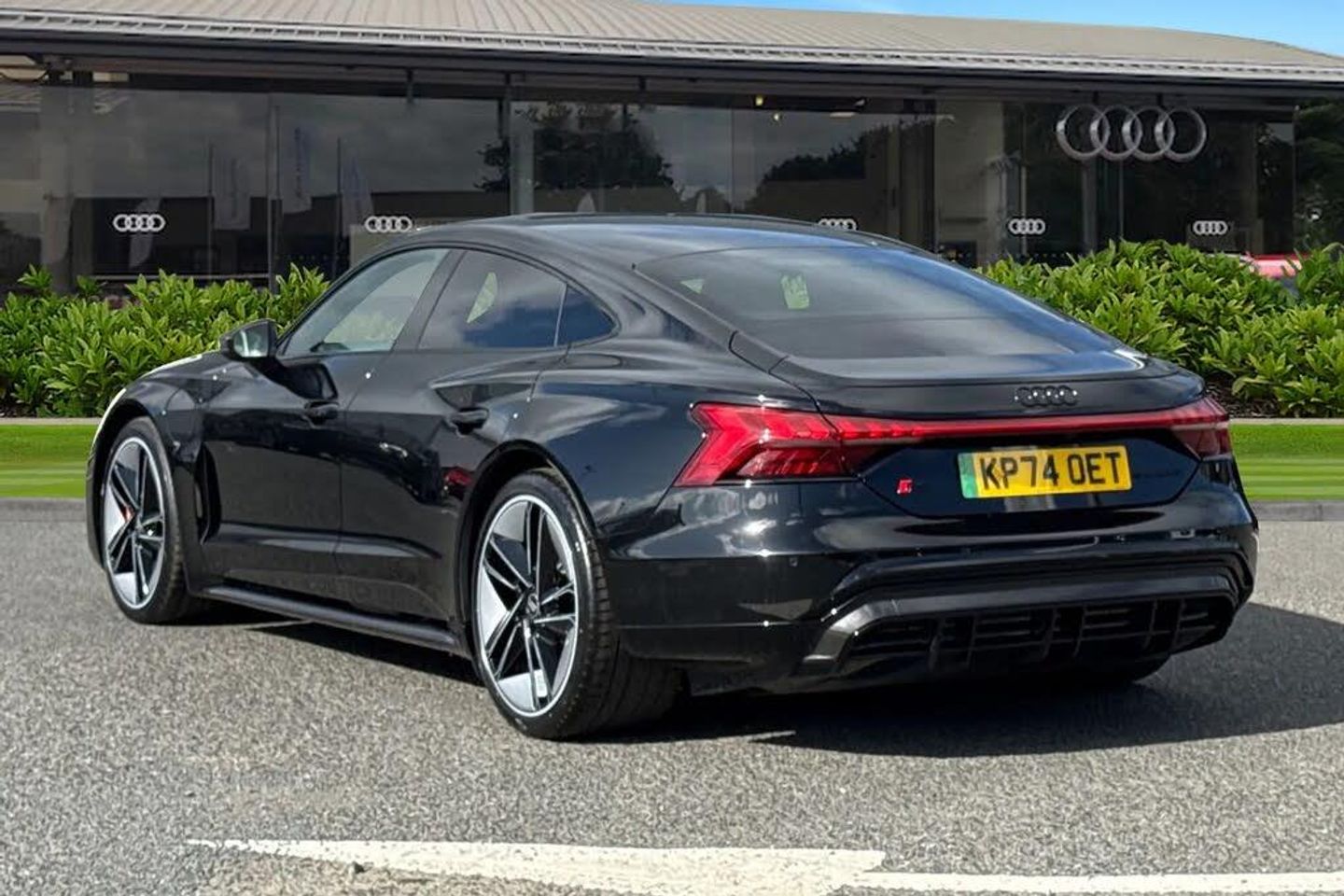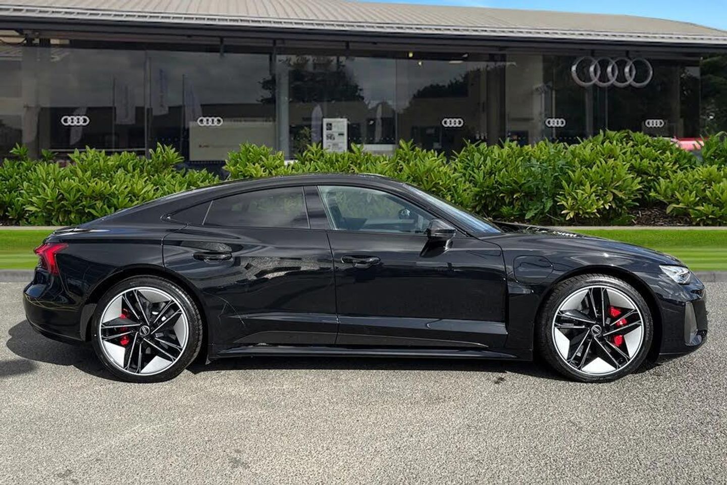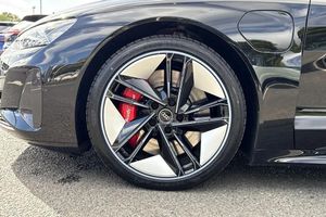 Alloys;The ultimate electric performance vehicle, the Audi RS e-tron GT Carbon Black. Finished in Mythos Black, this etron can travel a maximum range of 294 miles when new. The 590bhp is not for the faint of heart, allowing you to go from 0-62 in just 3.6 seconds. Charging this vehicle is easy, for home charging, a full charge from empty takes approximately 14 hours using a 7kW charger, while the fastest public charging time can replenish the battery from empty to 80% in around 23 minutes, keeping you on the move no matter the distance. This RS GT sits on a set of 21" alloy wheels with Carbide Steel Brake Calipers in Red, adding to the sporty look. You'll also find the exterior of this vehicle fitted with carbon wingmirrors and roof that add the the aggressive look. Inside you'll find the RS Design Pack in Red, this includes red seat belts and contrast stitching on the seats that add to the sporty touches of the interior. The Bang & Olufsen sound system is perfect for music lovers, providing sublime sound quality no matter the driving conditions. This performance vehicle is designed for comfort, with 3-zone climate control and heated and ventilated front seats, no matter the weather outside you'll find tranquility inside.