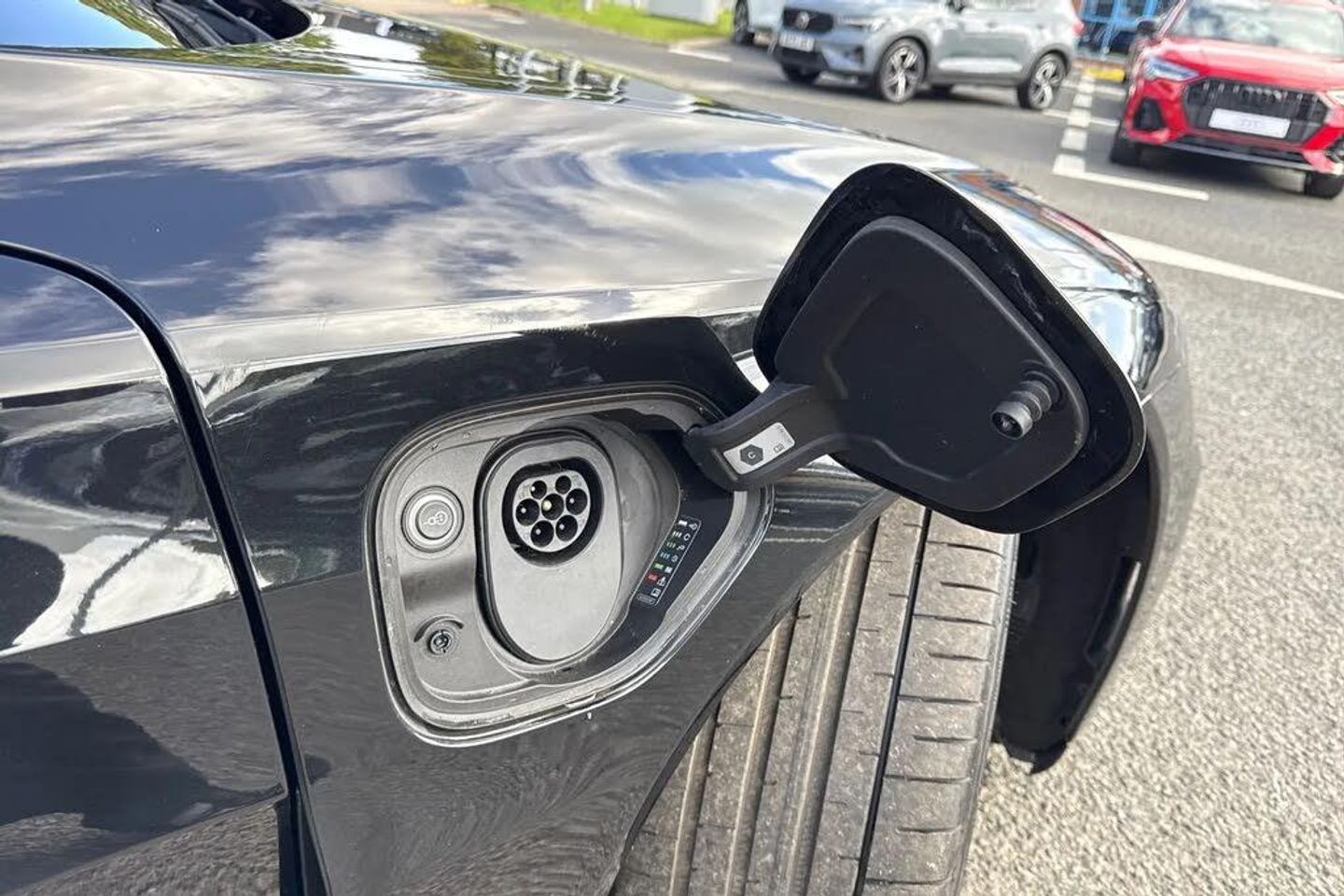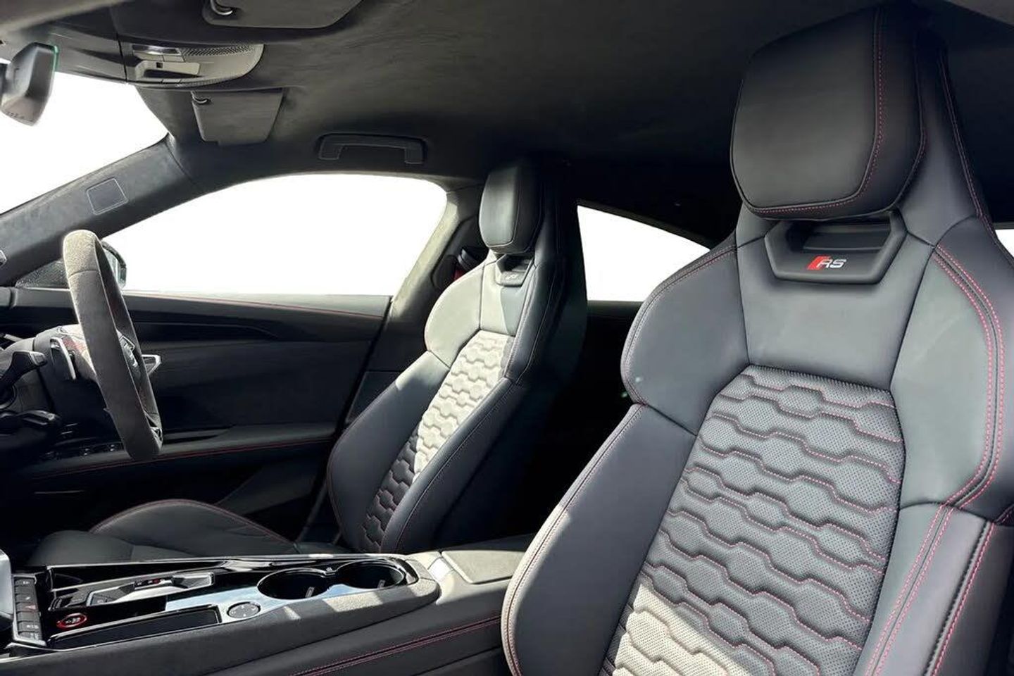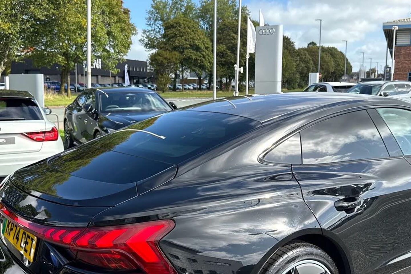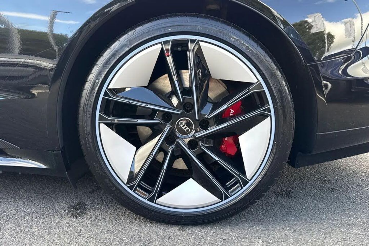 Alloys;The ultimate electric performance vehicle, the Audi RS e-tron GT Carbon Black. Finished in Mythos Black, this etron can travel a maximum range of 294 miles when new. The 590bhp is not for the faint of heart, allowing you to go from 0-62 in just 3.6 seconds. Charging this vehicle is easy, for home charging, a full charge from empty takes approximately 14 hours using a 7kW charger, while the fastest public charging time can replenish the battery from empty to 80% in around 23 minutes, keeping you on the move no matter the distance. This RS GT sits on a set of 21" alloy wheels with Carbide Steel Brake Calipers in Red, adding to the sporty look. You'll also find the exterior of this vehicle fitted with carbon wingmirrors and roof that add the the aggressive look. Inside you'll find the RS Design Pack in Red, this includes red seat belts and contrast stitching on the seats that add to the sporty touches of the interior. The Bang & Olufsen sound system is perfect for music lovers, providing sublime sound quality no matter the driving conditions. This performance vehicle is designed for comfort, with 3-zone climate control and heated and ventilated front seats, no matter the weather outside you'll find tranquility inside.