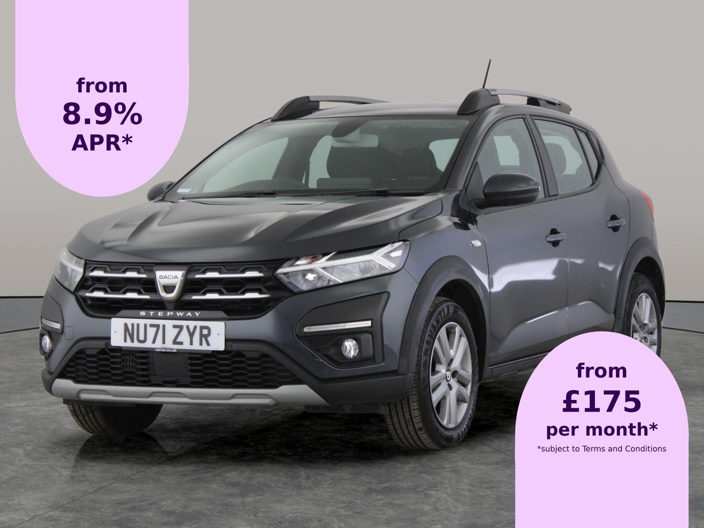 Discover the Dacia Sandero Stepway, a stylish grey hatchback with the effortless drive of an automatic gearbox. Step inside to Titanium Black cloth seats, enjoy the convenience of keyless entry and start, and breeze through journeys with built-in sat nav and cruise control. Air conditioning keeps every trip comfortable, making this Sandero Stepway the perfect partner for everyday adventures. MOT to 10/10/2026. Visit our website for service history, online valuation, full vehicle specification plus multiple images. Any feature/option specified here is from 3rd party data. We cannot guarantee the accuracy of any specification supplied by a 3rd party. We recommend that you physically check the specification of the vehicle on site prior to purchase. This information does not form part of the buying contract. Terms & Conditions apply. We have over 2,000 cars available from our 10 national branches, check our website to see all our stock. Our Trustpilot rating is 4.4/5 with over 9,000 reviews.