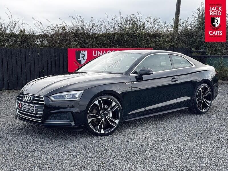Check out what's all included in this 2018 Audi A5 2.0 TDI S Line 2dr:. Electric folding door mirrors.. Comfort and Sound pack.. Audi parking system plus with front and rear sensors.. Audi smartphone interface.. Colour driver's information system display.. SD card based satellite navigation system.. Voice control system.. S Line body styling.. Electric/Heated sports seats.If you like the look of this car and would like to come for a look or an unaccompanied test drive feel free to call down anytime or get in touch to make an appointment. We are open 7 days a week for your convenience!We have one of the largest numbers of cars for sale in our area with up to 200 cars in stock ready to view! We stock a variety of makes and models such as Audi, BMW, Seat, Range Rover, Mercedes, Jaguar and many more!All our cars come warranted by Jack Reid Cars meaning that we make all our decisions in house unlike unreliable warranty companies with too many terms and conditions.We look forward to hearing from you!This car is shown with an optional new alloy wheel and tyre upgrade or it can be returned to the standard wheels, whichever suits you best. Please contact sales for pricing.