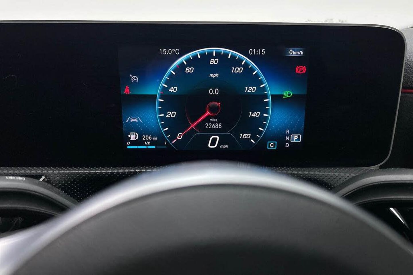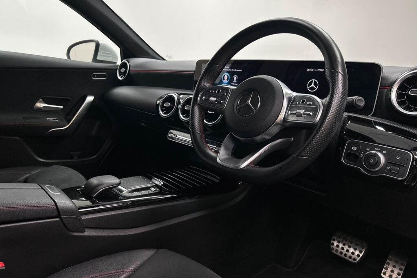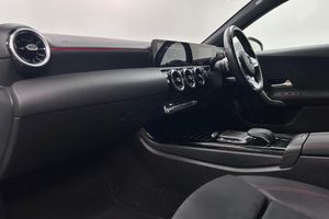 10.25" media display, 180 degree rear view camera with parking guidelines, 7" colour screen in instrument panel, Active lane keep assist, Active park assist with parktronic system including front and rear parking sensors, Attention assist, Brake pad wear indicator warning light, Cruise control + speed limiter, Direct steering, Dual bluetooth interfaces, DYNAMIC SELECT with a choice of driving modes (ECO, Comfort, Sport and Individual), ECO start/stop function, Fluid level warning indicator for fuel, oil, coolant and washer fluid, Hard-disk navigation, Hey Mercedes Voice activation, Lamp failure indicator, Mercedes me connect including emergency call system, accident recovery, breakdown and maintenance management, Outside temperature gauge, Owners manual in English, Pre-installation for private car sharing, Pre-installation for Vehicle Monitoring, Pre-installation for Vehicle Setup, Preinstallation for Mercedes Benz link, Service indicator (ASSYST), Smartphone integration with Apple CarPlay and Android auto, Speed sensitive power steering, Trip computer, Wireless charging, Lowered comfort suspension, Rear axle multi-link, 2 USB ports (type C) in rear stowage compartment and one in front of center console, 6 speakers, DAB Digital radio, MBUX multimedia system with DAB digital radio and touchpad including satellite navigation, Mercedes-Benz sound system - 100W, 4 Electric Front and Rear windows, Adaptive brake lights, AMG bodystyling - Front apron with splitter in chrome, rear apron with chrome trim and chrome visible trim elements in tailpipe, Black weather strip, Body colour bumpers, Body colour door handles, Body colour side skirt, Body coloured door mirrors, Chrome beltline trim, Diamond radiator grille with chrome pins and silver louvre + chrome insert, Electric adjustable and heated door mirrors with integrated LED side indicators, Exhaust system - Twin visible tailpipes in polished stainless steel, Headlamp assist automatic headlamp activation, Heated glass rear windscreen + timer control, LED high performance headlamps with integrated LED daytime running lights, LED tail lamp, LED third brake light, Privacy glass, Radio aerial, Rain sensing windscreen wipers with two sensitivity settings, Rear fog lights, Rear wiper, Window line trim strip in chrome, 3 Spoke flat bottom leather multi function steering wheel with perforated leather in grip area, 40:20:40 split folding rear seats, Artico man-made leather/Microfibre Dinamica upholstery with red contrast stitching, Auto Mercedes-Benz child seat recognition sensor, Black air vents with surround in silver chrome, Black roof lining, Brushed stainless steel sports pedals with rubber studs, Controller on centre console with chrome surround, Floor mats with stitched edging and AMG lettering, Front centre armrest with storage compartment, Front door sills with Mercedes Benz lettering, Front seat backs luggage nets, Front seat cushion length adjustment, Galvanished gear shift paddles on steering wheel, Heated front seats, Height/reach adjustable steering column, Manual height adjustable front seats, Rear head restraints, Seat occupancy sensor for front passenger seat, Spectacles compartment for driver, Sports seats with integrated headrests, Stowage compartment in centre console with retractable cover, Sunvisors with illuminated vanity mirrors, Touchpad on center console, Twin front cupholders, Two zone thermotronic luxury automatic climate control, Light and sight pack - A Class, Mirror package - A Class, Seat comfort pack - A Class, 3 rear 3 point seatbelts, ABS with Brake Assist, Active bonnet, Active brake assist includes forward collision warning system with autonomous braking, Adaptive brake assist with hold function and hill start assist, Black seatbelts, Childproof locks manually operated for rear doors and electrically operated for rear power windows, Crash responsive emergency lighting, Driver and passenger head and side airbags, Drivers knee airbag, Dual stage driver/passenger airbags, Electronic parking brake, ESP curve dynamic assist, ESP with ASR, Front and rear seatbelt reminder, Front brake callipers with Mercedes Benz lettering, ISOFIX and top tether child seat fixing points in two outer rear seats, Tyre pressure monitoring system, Warning triangle and first aid kit, Window airbags, Alarm system/interior protection/immobiliser, Keyless Go, Remote central locking and crash sensor with emergency opening function, Dinamica microfibre trim in black, 18" AMG 5 twin spoke light alloy wheels in titanium grey with highsheen finish, Summer tyres, Tirefit sealant kit